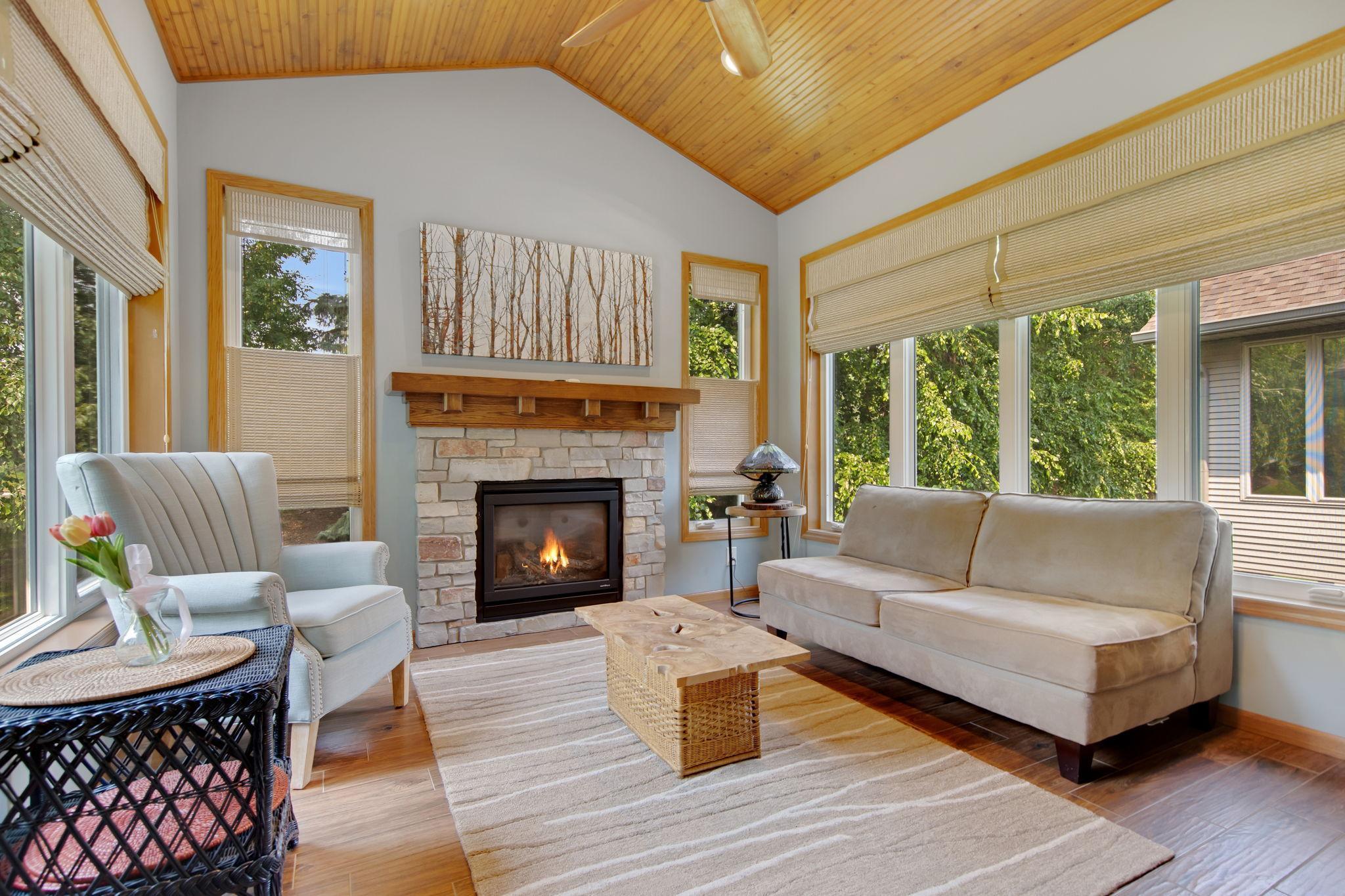 Welcome to this beautifully maintained twin home offering main level living and an abundance of space throughout! Nestled on a quiet cul-de-sac, this home features 4 generous bedrooms, including a serene primary suite with a beautiful bathroom and walk-in closet. This unique floor plan to the development is perfect for hosting while the sunroom provides bright, inviting spaces to relax and entertain. Enjoy tons of storage and space throughout the home, especially in the very large lower-level family room, ideal for gatherings and relaxation. Two gas fireplaces add warmth and character to the living spaces. The back patio, also a rare feature in this neighborhood, offers a charming outdoor space to enjoy. This home truly has it all: comfort, space, and a spacious layout perfect for everyday living. Don't miss this amazing opportunity!