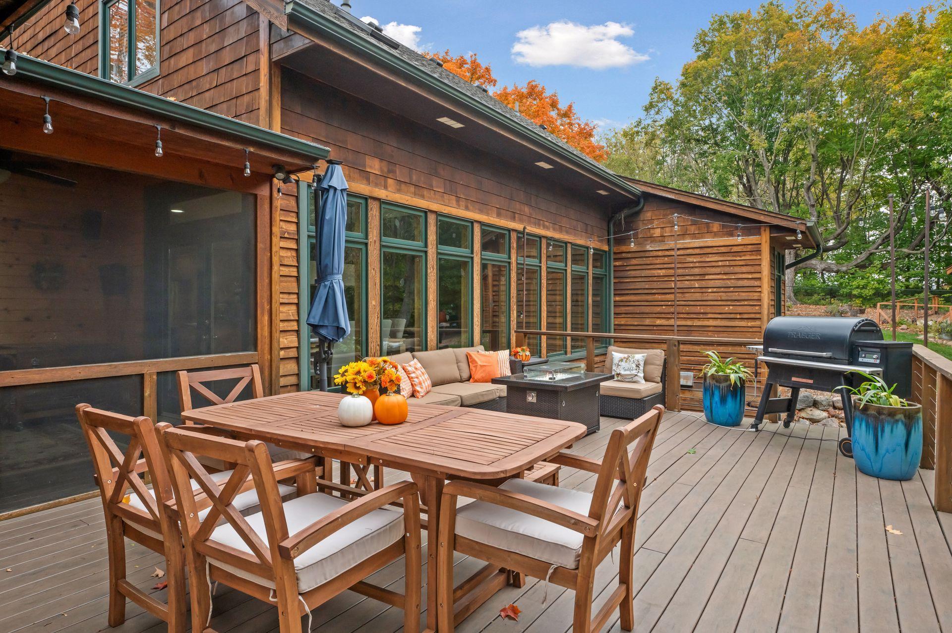 You won't want to miss this stunning combination of 5+ acres of trees, nature, and gorgeous home with main-level living! No need to leave home with manicured garden beds, chicken coop, maple trees for tapping and enormous 1200 sq ft outbuilding with room for your RV or all your toys! Step inside to soaring ceilings, tasteful updates and practical layout and you will see yourself enjoying this home for years to come! Main level Primary Bedroom offers easy living, beautiful wooded views, spacious private bathroom and huge walk in closet with all the storage you can dream of! Prepare yourself to be the destination for gatherings in the open plan between the Great Room, Dining and Kitchen featuring gorgeous range. Upper level with 4 bedrooms provides flexibility for any living situation! The lower level provides for fun in all corners, with expansive Family and Rec rooms including Wine Cellar, Wet Bar, Theater Room and gaming, along with incredible storage. Sip your coffee out on the front porch, in the screen porch, or step out back onto the large deck. A perfect blend of peaceful living with quick access to highways, schools, parks and so much more!