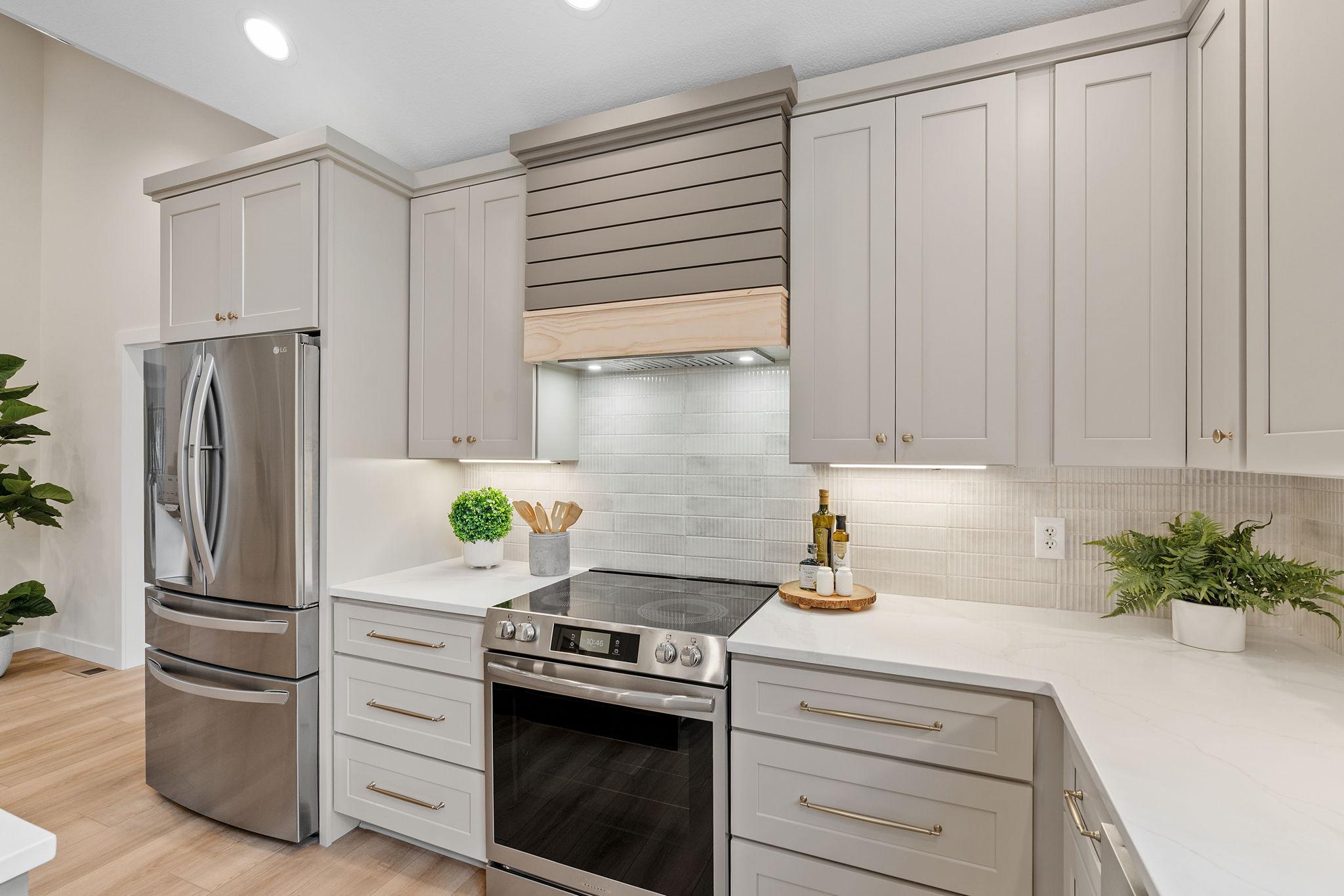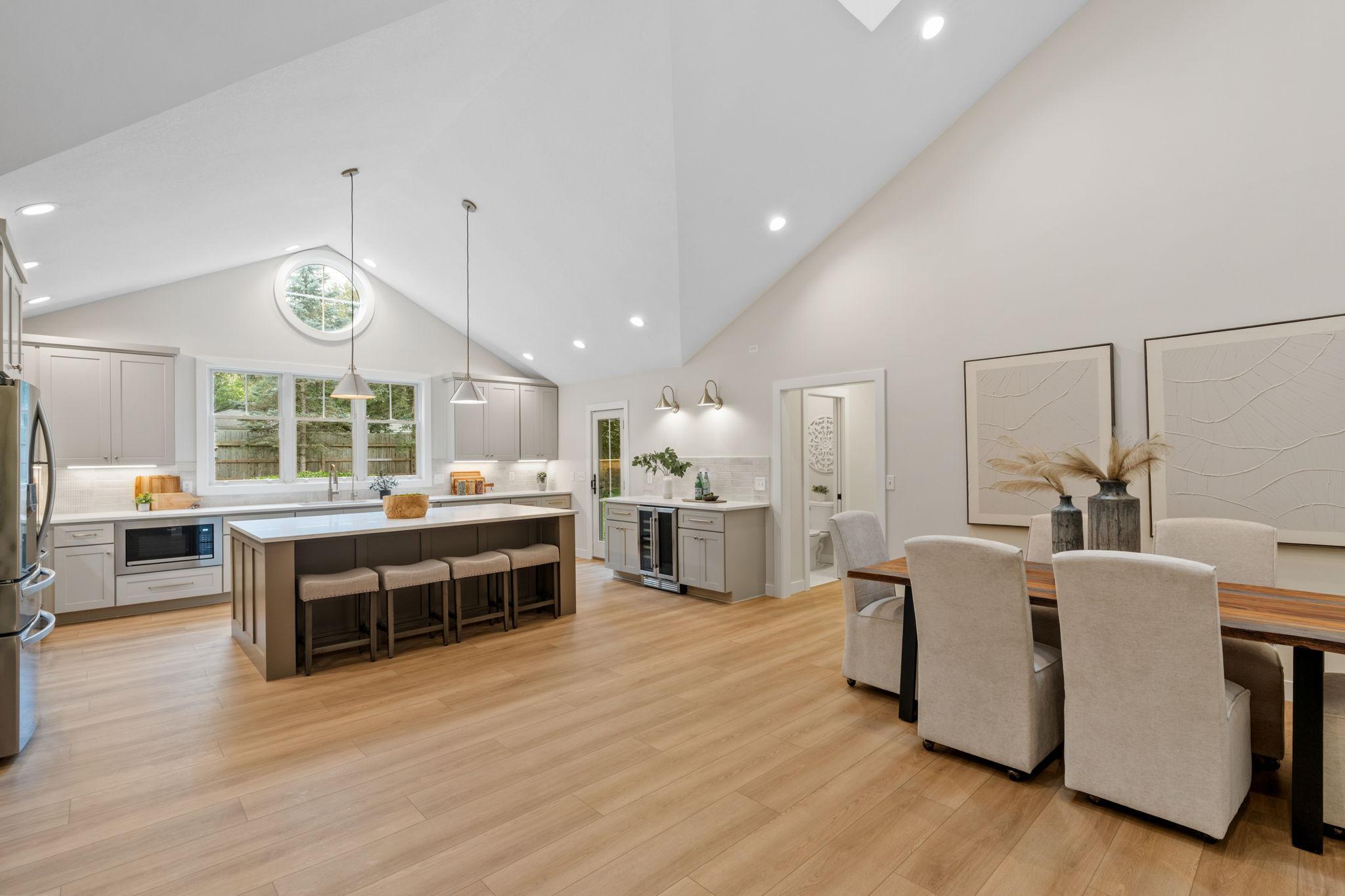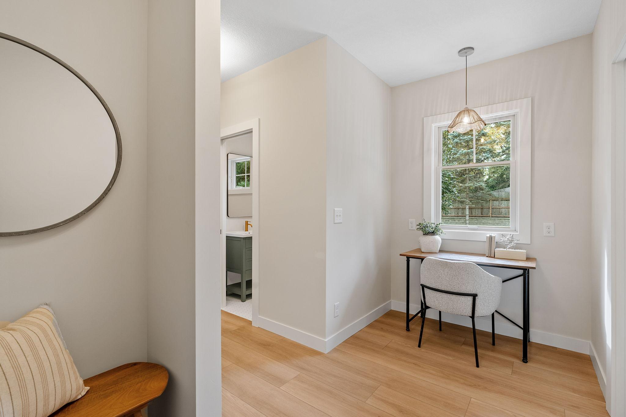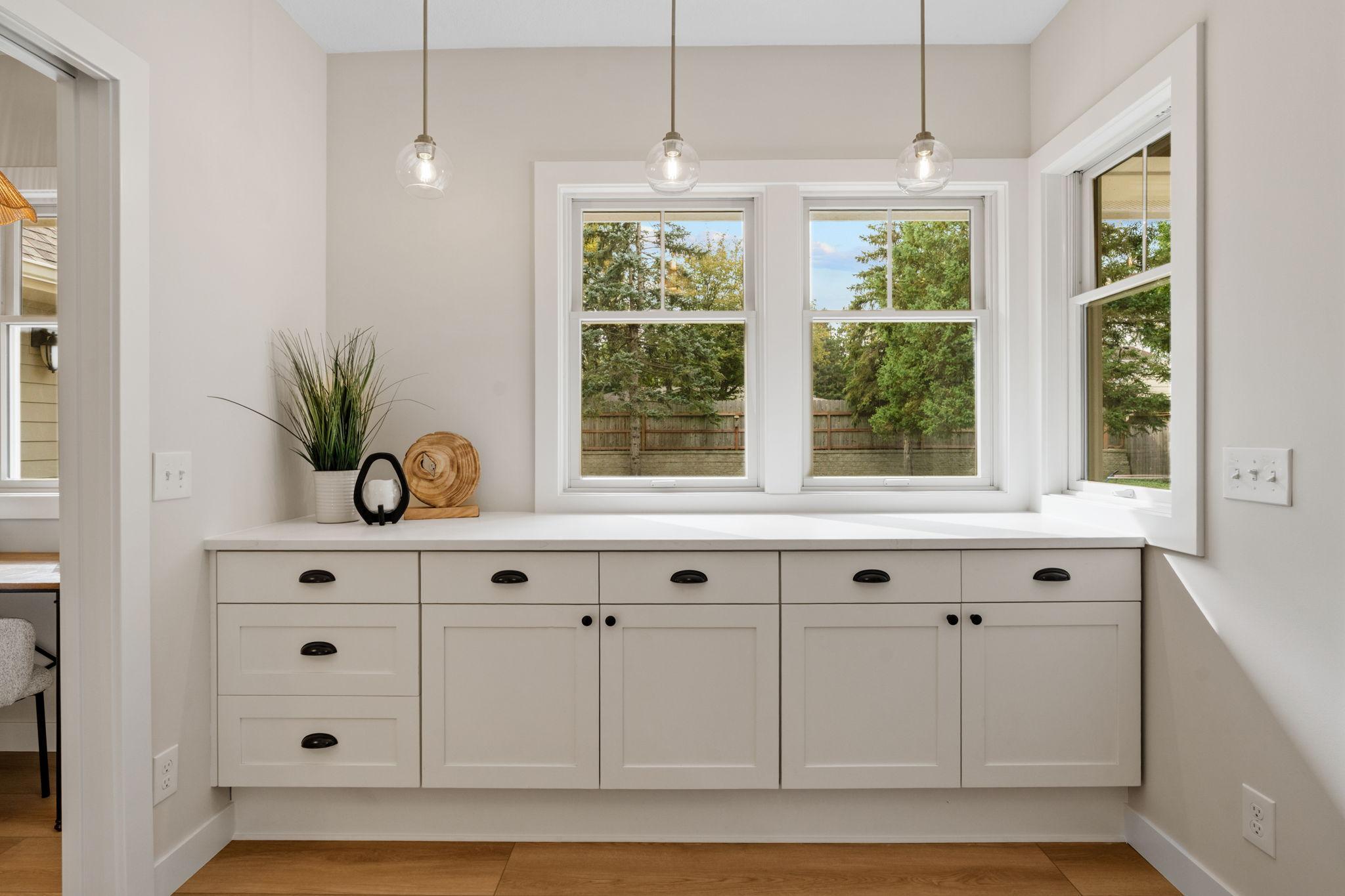 Welcome to this beautifully renovated 4-bedroom, 5-bathroom home that perfectly blends luxury, functionality, and modern design. From the moment you step through the front door, you'll be impressed by the soaring vaulted ceilings, in-floor heat and the high-end finishes throughout. The heart of the home is the gourmet kitchen, featuring custom cabinetry, brand-new stainless steel appliances, and ample space for cooking and entertaining. Enjoy the warmth and flow of the open-concept layout, highlighted by new flooring, trim, doors, and fresh paint throughout. This home offers exceptional flexibility with two spacious primary suites—one conveniently located on the main floor, and another upstairs, accompanied by two additional bedrooms and a loft space ideal for a home office or playroom. Located in a desirable neighborhood, this home offers both tranquility and easy access to nearby amenities, schools, and commuter routes. The garage is oversized, heated and insulated! Other improvements include Anderson windows, roof and siding that are 4 years old, secondary washer/dryer hookup upstairs. This home has the option for all living facilities to be on one level, come and see this move-in ready and meticulously updated home!