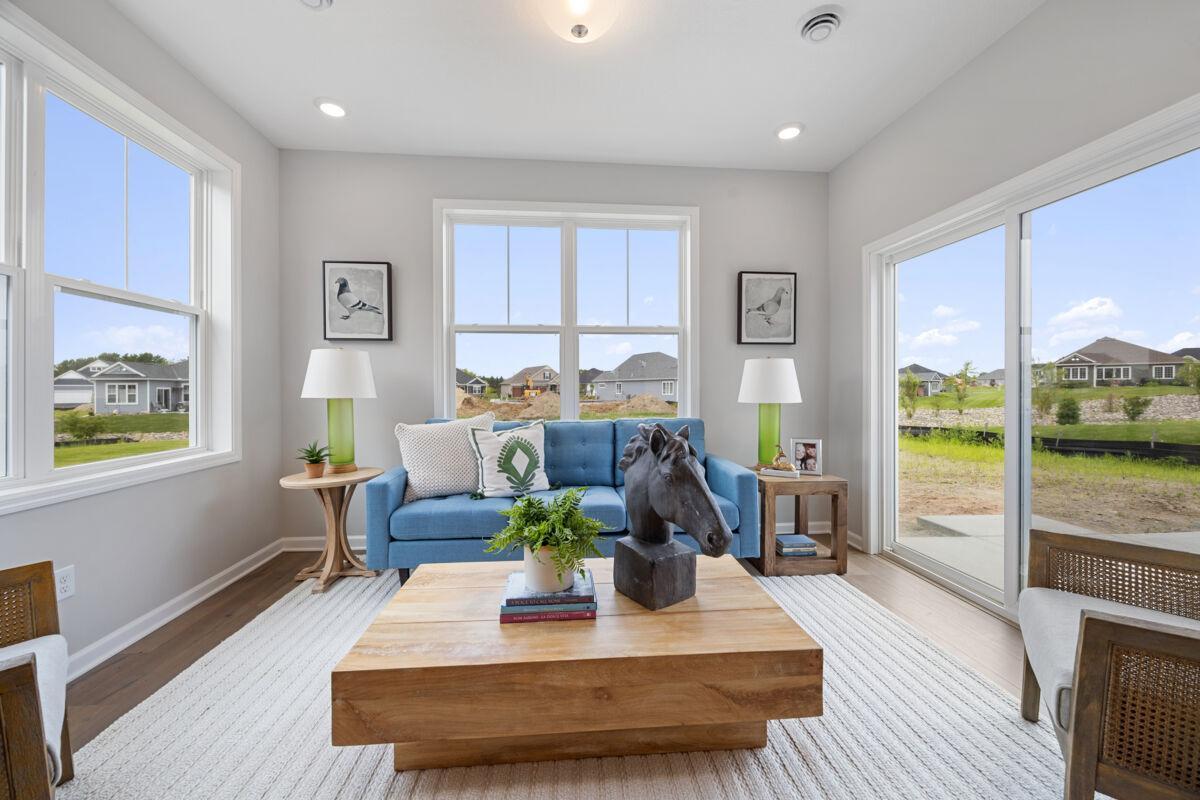 This new construction home at 8009 Xyloid Lane in Corcoran offers 2 bedrooms, 2 full bathrooms, an attached 2-car garage, and 1,451 square feet of thoughtfully designed living space. The single-story layout provides accessibility and convenience, and the open-concept design creates a seamless flow between the kitchen, dining, and living spaces, which curates an inviting atmosphere for both daily living and entertaining. The kitchen comes complete with new appliances, a corner pantry, and a stunning island, while the family room has an electric fireplace for warmth and ambiance. The patio gives you a space to enjoy the outdoors, as does the beautiful morning room addition. Your owner's suite is sure to impress with its en-suite bathroom featuring a dual-sink vanity and a walk-in closet. An additional bedroom and a den provide more space for family, guests, or a home office. This home represents an excellent opportunity to own a brand-new home in the desirable Corcoran area, combining modern construction with thoughtful design in a location that offers both tranquility and convenience. Contact our team to learn more about 8009 Xyloid Lane!