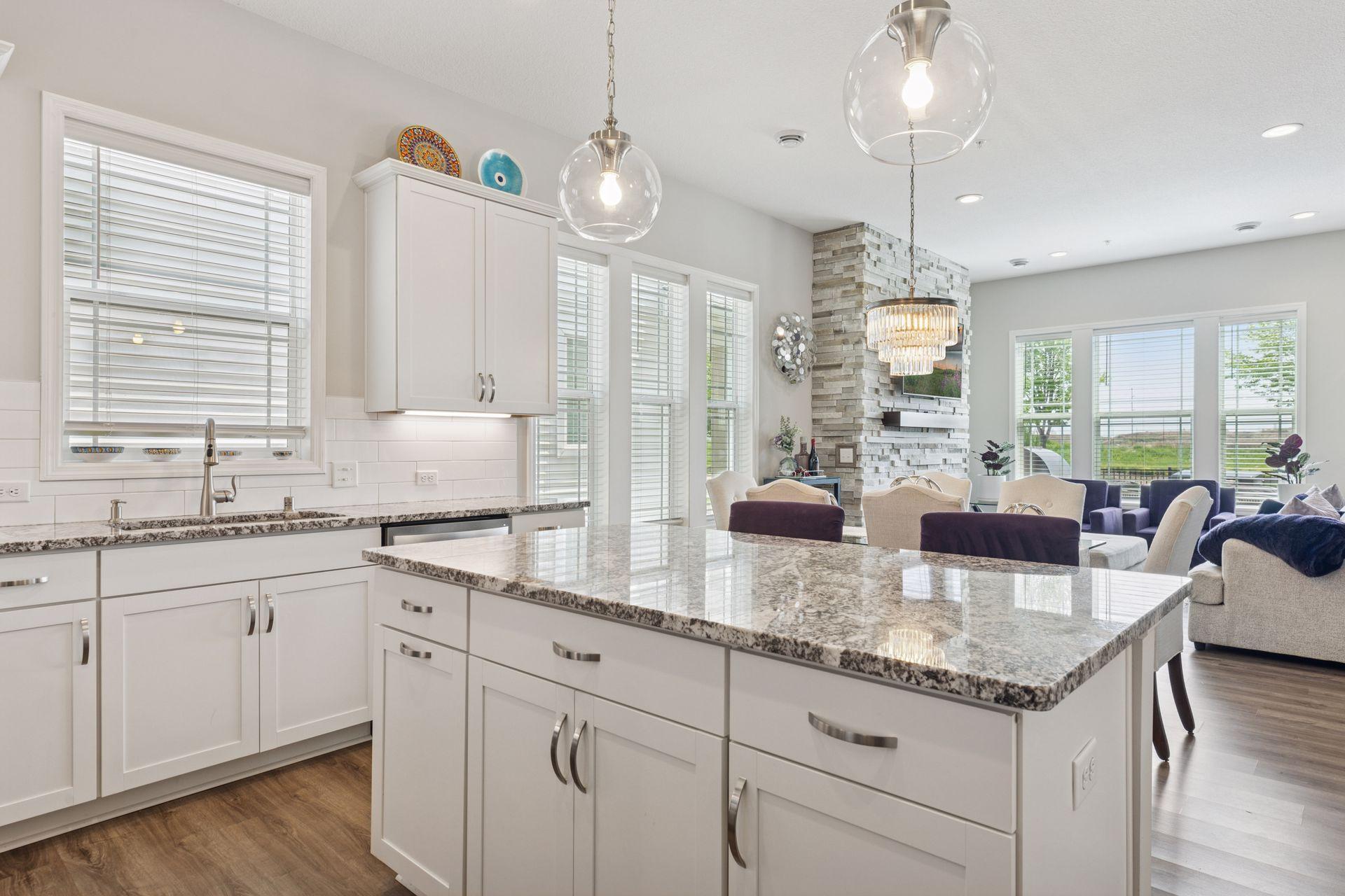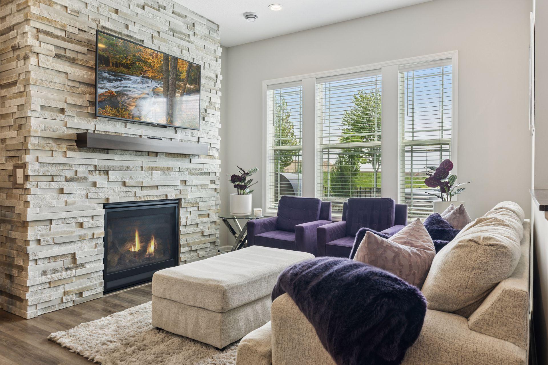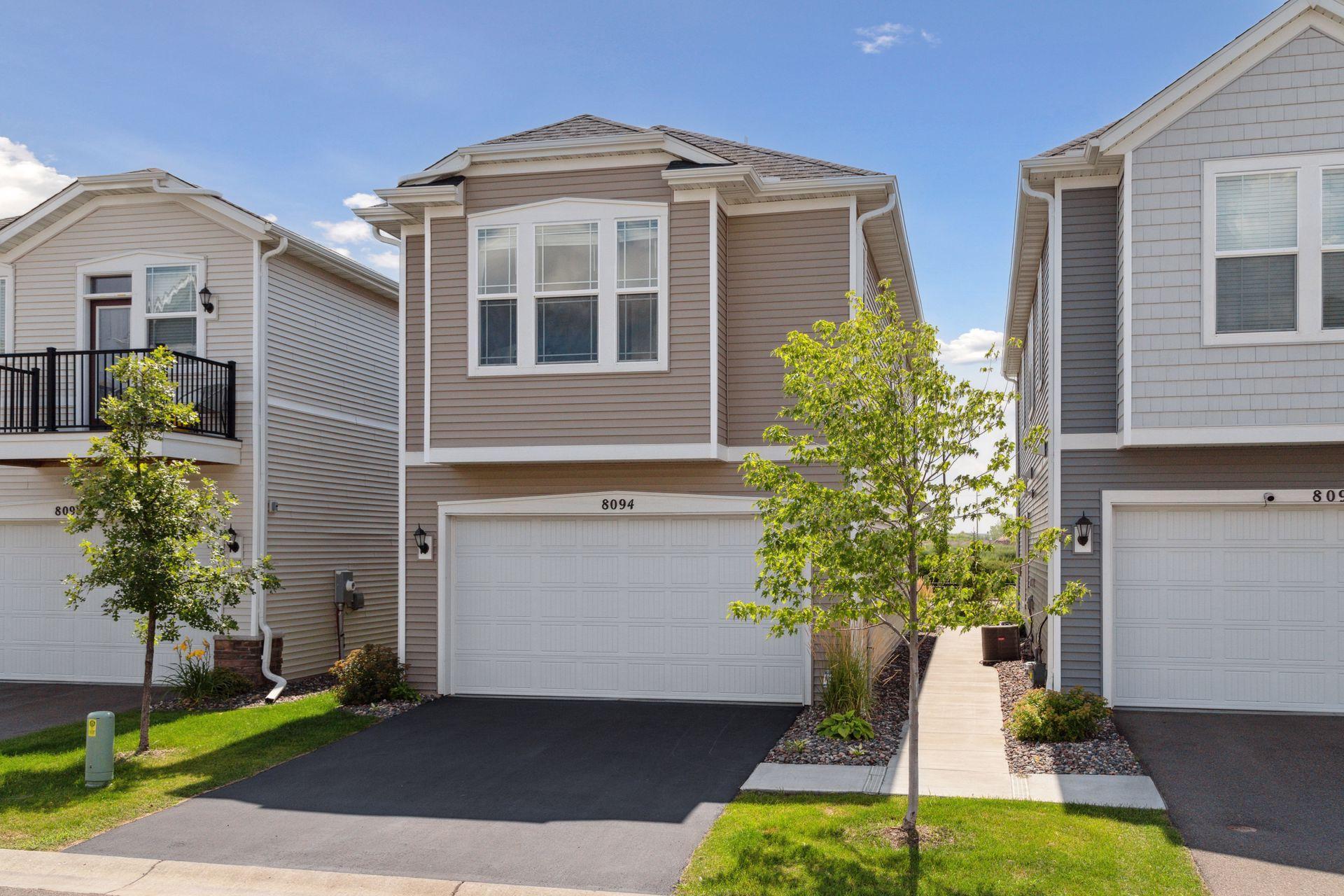 Welcome to 8094 Arrowwood Ln N, a meticulously crafted two-story home that blends modern elegance, comfort, and thoughtful design. Nestled in a prime location near The Shoppes at Arbor Lakes, Central Park, and scenic walking paths, this home offers unparalleled convenience. Step into an inviting open-living space, where a floor-to-ceiling stacked stone gas fireplace anchors the room, complemented by high knockdown ceilings and a wall of windows that flood the home with natural light. The kitchen shines with granite countertops, under-cabinet lighting, stainless steel appliances, a large pantry, and a center island with ample seating—perfect for entertaining. Adjacent to the kitchen, the dining area is beautifully illuminated by an upgraded chandelier, adding an elegant focal point to mealtime gatherings. Upstairs, a spacious family/media room provides endless possibilities for relaxation and play. The luxurious primary suite boasts a walk-in closet and a spa-like ensuite with double vanities and a separate soaking tub & shower. Two additional bedrooms, a full bathroom with double vanities, and a convenient upper-level laundry room complete this second level. Additional highlights include a main-floor powder room, sprinkler system, and an insulated two-car garage with ample shelving. Outside, enjoy a front patio area and an underground fenced yard for your pets. A $142 monthly association fee covers lawn care, snow removal, trash service, and shared amenities. Truly a must see and great opportunity!