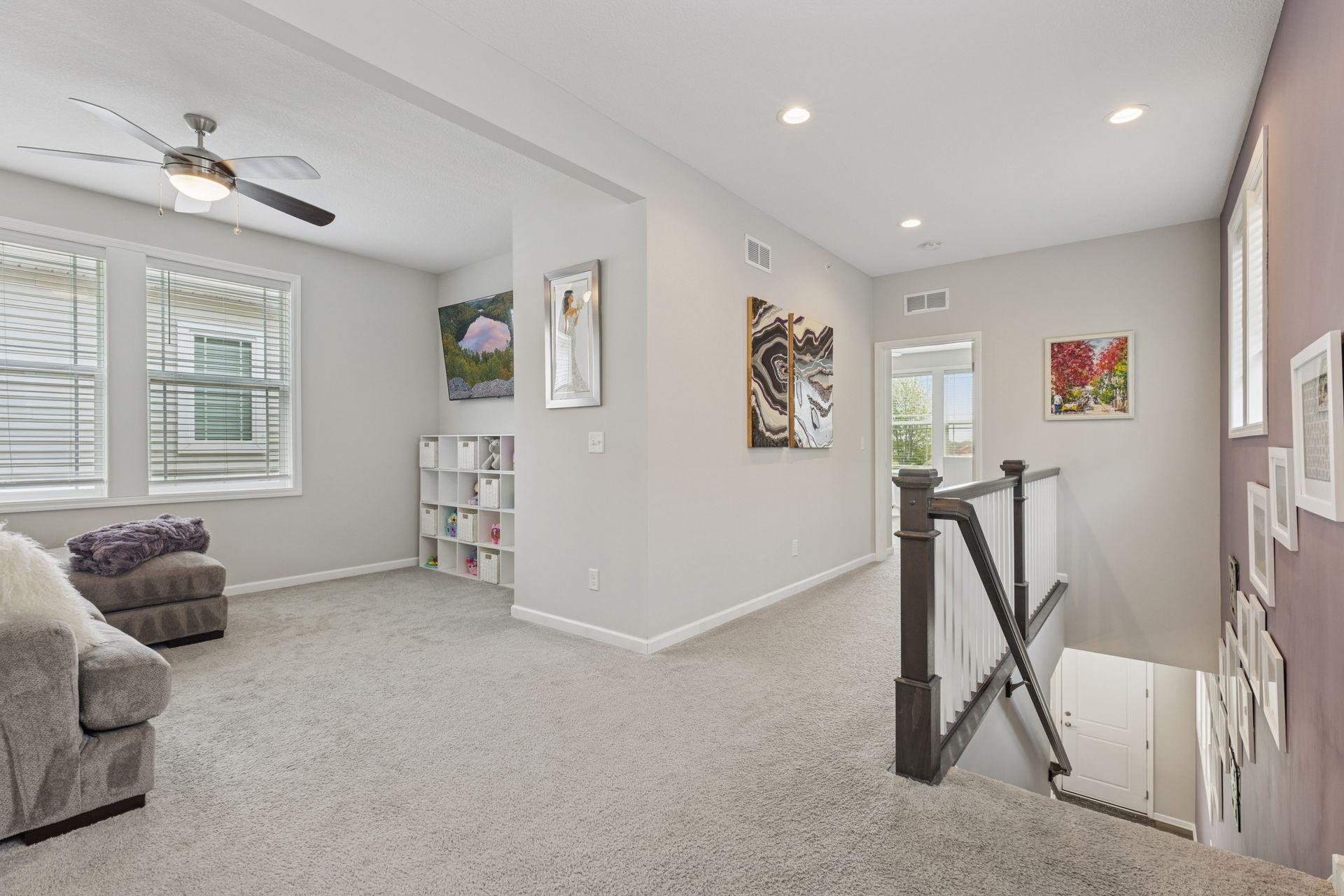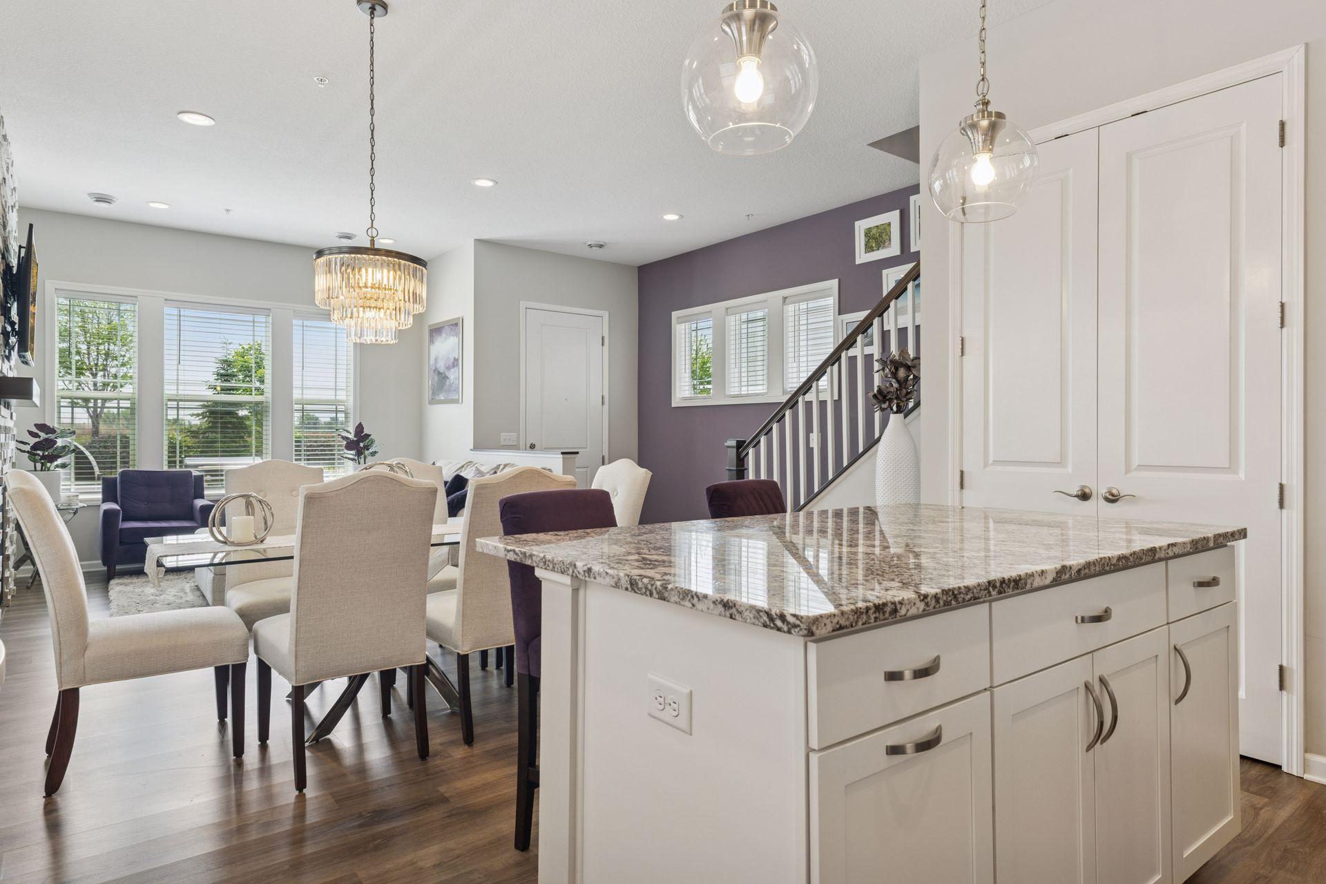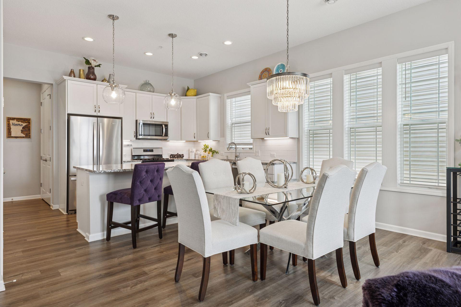 Welcome to 8094 Arrowwood Ln N, a meticulously crafted two-story home that blends modern elegance, comfort, and thoughtful design. Nestled in a prime location near The Shoppes at Arbor Lakes, Central Park, and scenic walking paths, this home offers unparalleled convenience. Step into an inviting open-living space, where a floor-to-ceiling stacked stone gas fireplace anchors the room, complemented by high knockdown ceilings and a wall of windows that flood the home with natural light. The kitchen shines with granite countertops, under-cabinet lighting, stainless steel appliances, a large pantry, and a center island with ample seating—perfect for entertaining. Adjacent to the kitchen, the dining area is beautifully illuminated by an upgraded chandelier, adding an elegant focal point to mealtime gatherings. Upstairs, a spacious family/media room provides endless possibilities for relaxation and play. The luxurious primary suite boasts a walk-in closet and a spa-like ensuite with double vanities and a separate soaking tub & shower. Two additional bedrooms, a full bathroom with double vanities, and a convenient upper-level laundry room complete this second level. Additional highlights include a main-floor powder room, sprinkler system, and an insulated two-car garage with ample shelving. Outside, enjoy a front patio area and an underground fenced yard for your pets. A $142 monthly association fee covers lawn care, snow removal, trash service, and shared amenities. Truly a must see and great opportunity!