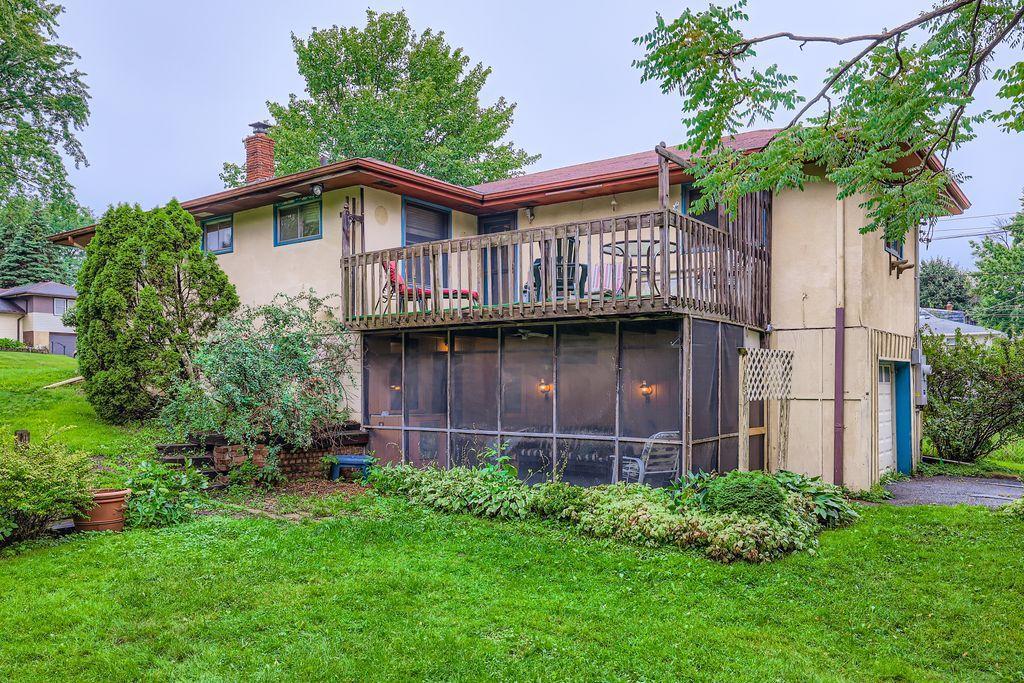 This home’s pleasing open floor plan concept is an unusual modern feature on a home of this generation, with the beamed ceiling in the dining room adding lots of personality. Solid oak plank flooring beneath select carpeted rooms offer alternatives to flooring options. Enjoy the solitude of your own private park like setting (on double-lot) with perennial gardens and mature trees surrounding you from all vista views, from your deck off the dining room, or from the screened in porch on walkout level below. Coved ceiling in living room (no popcorn here) and decorative textured interior plaster walls, along with the stucco exterior siding, assure a lifelong maintenance free, pleasing aesthetic. The quality of “Anderson Replacement Windows “ throughout select living areas allow for easy operation, refreshing cross ventilation, and sun drenched rooms. This is especially pleasing during cold winter months while seated in front of the two sided wood burning, brick faced fireplace in the solid knotty pine paneled den/family room, adjacent and visible from the kitchen and dining areas. Enjoy the convenience of easy access to two airports, 35E, 494, Hwy.52, and downtown St.Paul within minutes of your front door, along with abundant shopping and dining options on famed Robert Street in West St. Paul, located just a stone’s throw away.