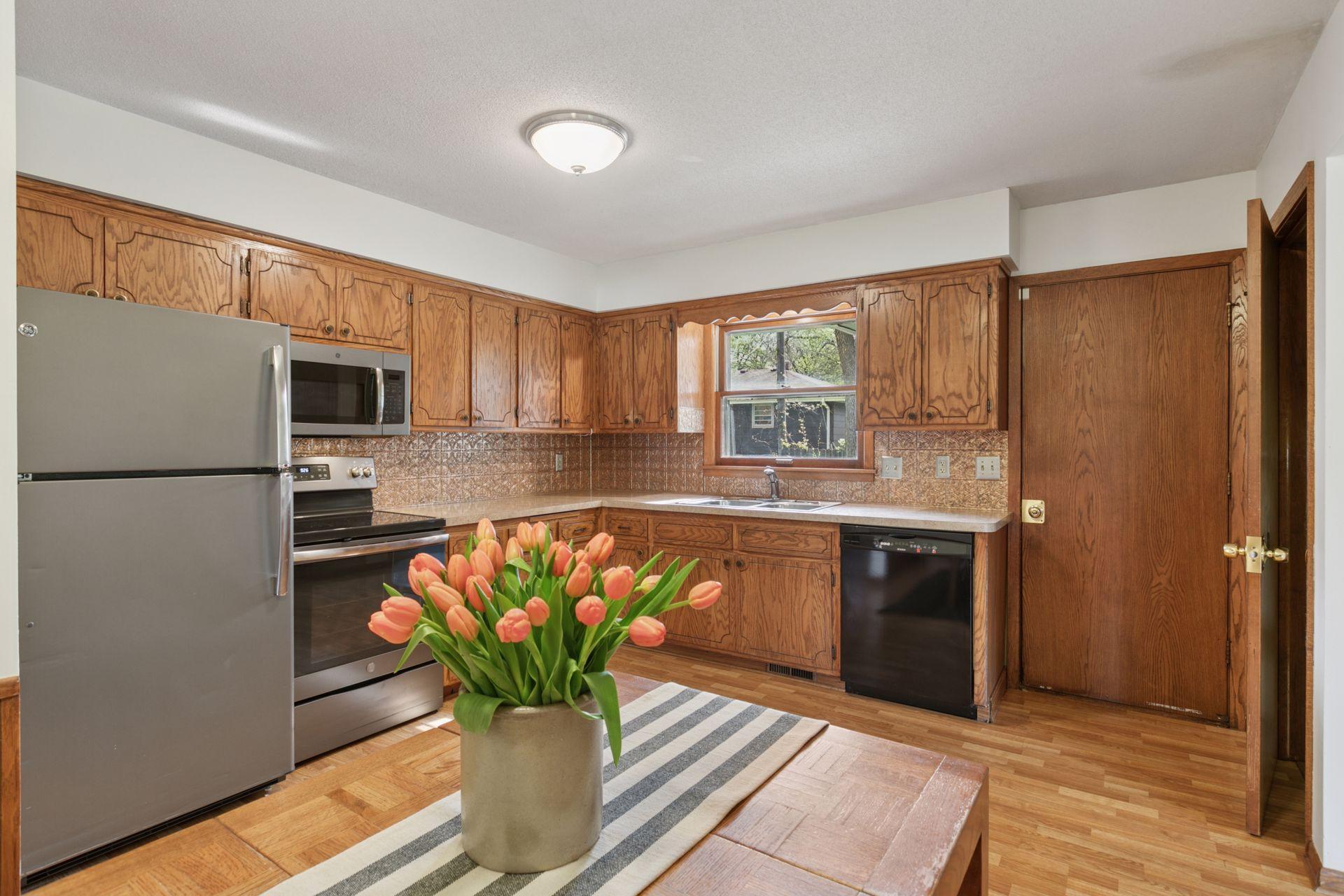 Welcome to this inviting Fridley home in the Spring Lake Park School District. The main level features a large and inviting living room, an eat-in kitchen, three bedrooms, and a full bath. The lower level offers an open plan with fireplace, a fourth bedroom with an egress window, and a ¾ bath. Enjoy the expansive backyard, perfect for outdoor activities, and the convenience of a two-car attached garage. Situated near shopping, dining, and with easy access to major highways, this home combines comfort with accessibility. Fridley boasts amenities like the 127-acre Springbrook Nature Center, and numerous parks.