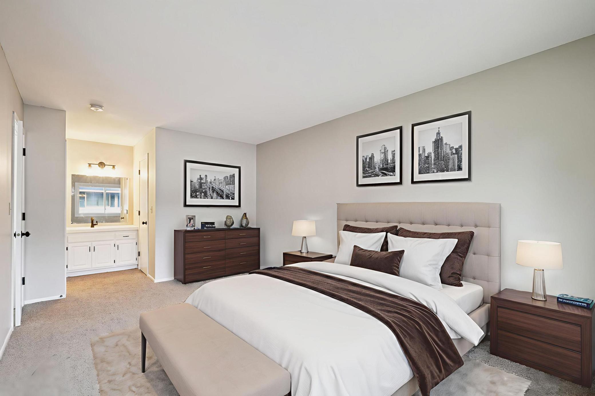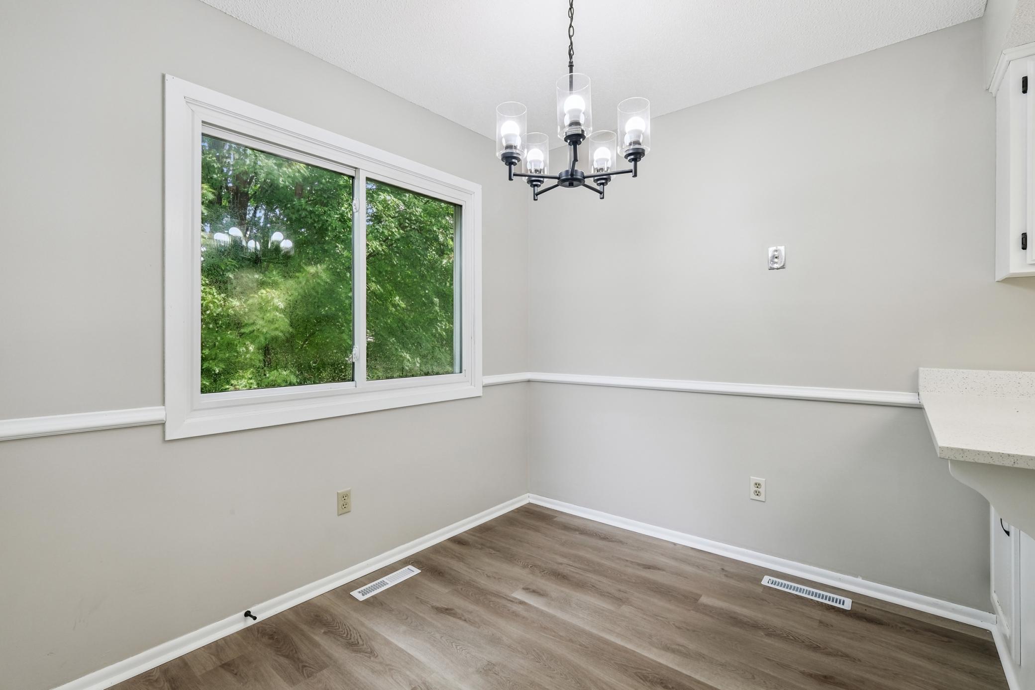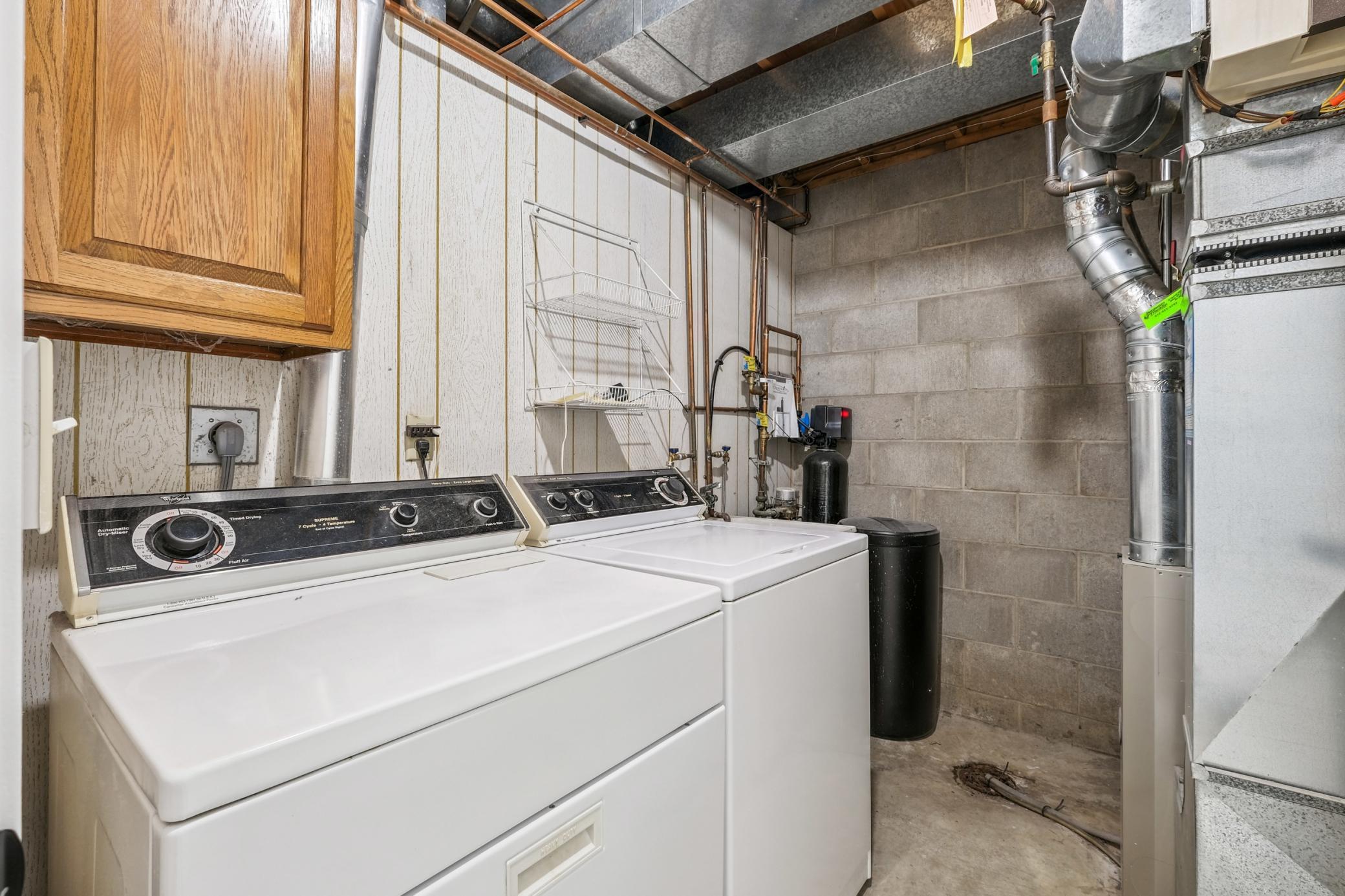 Beautifully undated and move-in ready! Enjoy fresh paint, new LVP flooring, plush carpet, and all new lighting throughout. The stunning kitchen features crisp white cabinetry, granite countertops, and brandnew stainless steel appliances. The main level offers two spacious bedrooms, including a primary suite with a walk-in closet, powder room and a convenient walk-through bath. Both bathrooms showcase elegant marble sinks and counters. Downstairs, the walk-out lower level is perfect for cozy gatherings with a large family room and fireplace. Additional highlights include replaced windows (2014), an owned water softener, and included washer and dryer. Conveniently located near parks, schools and shopping, this home is ready for you to move in and enjoy!
