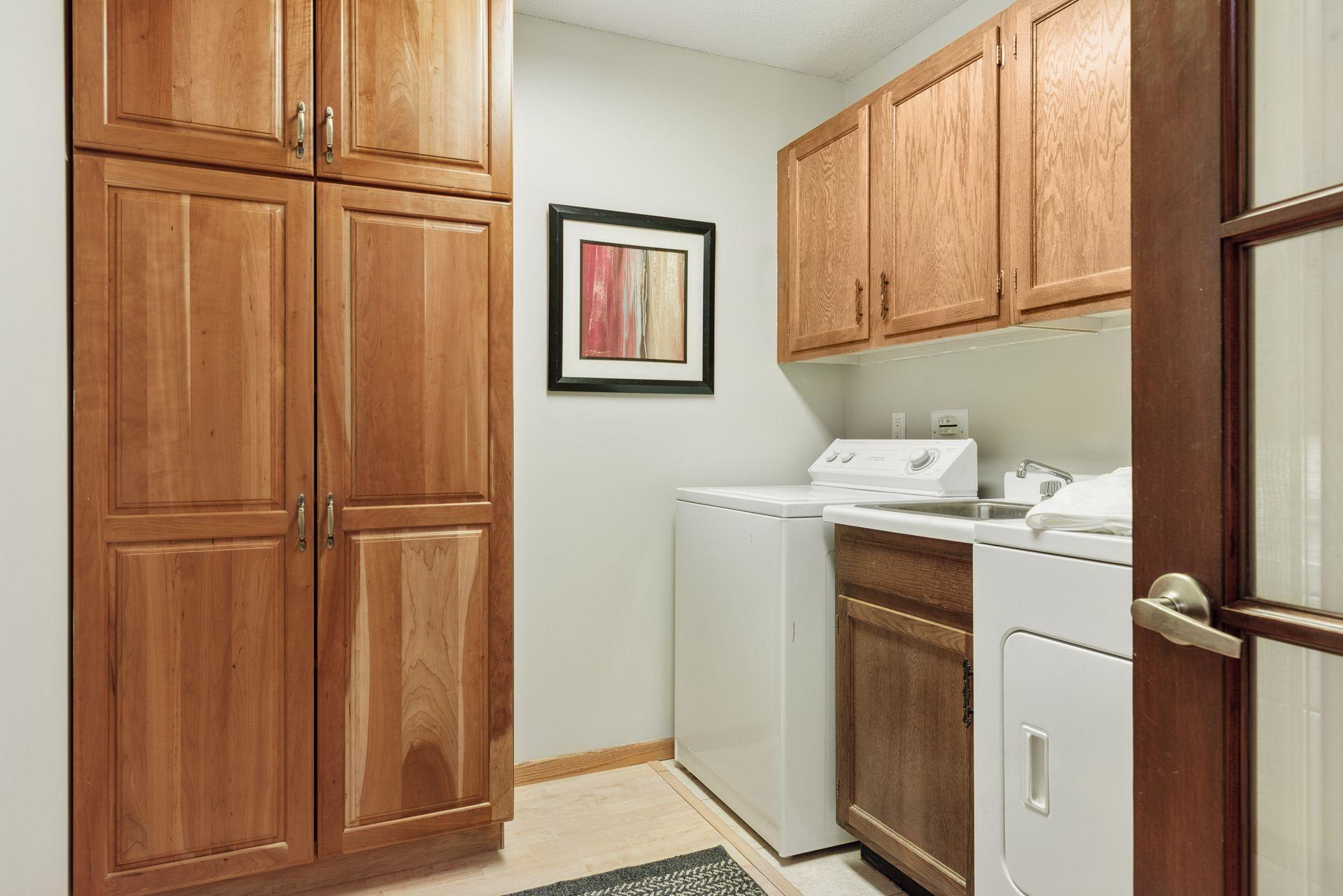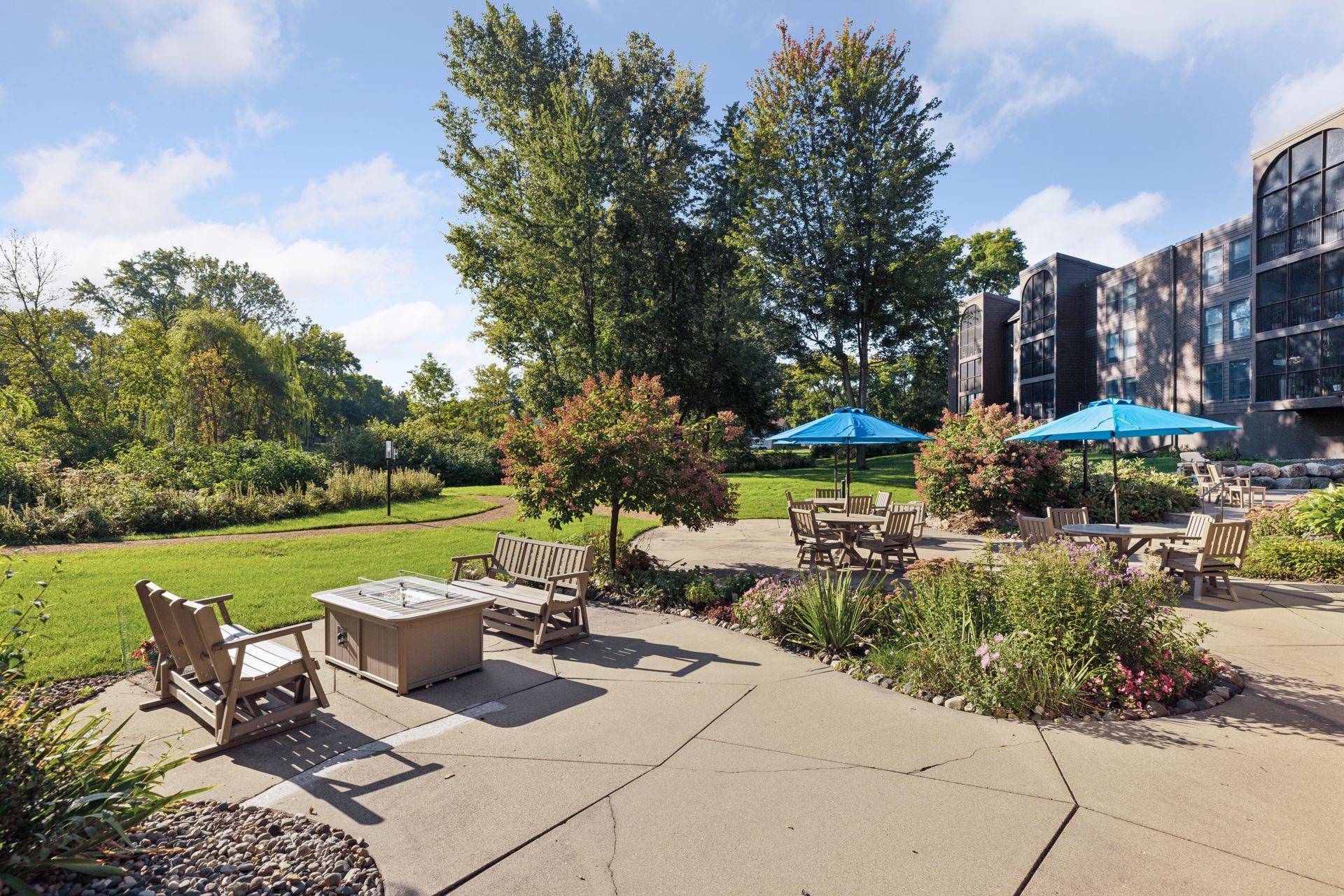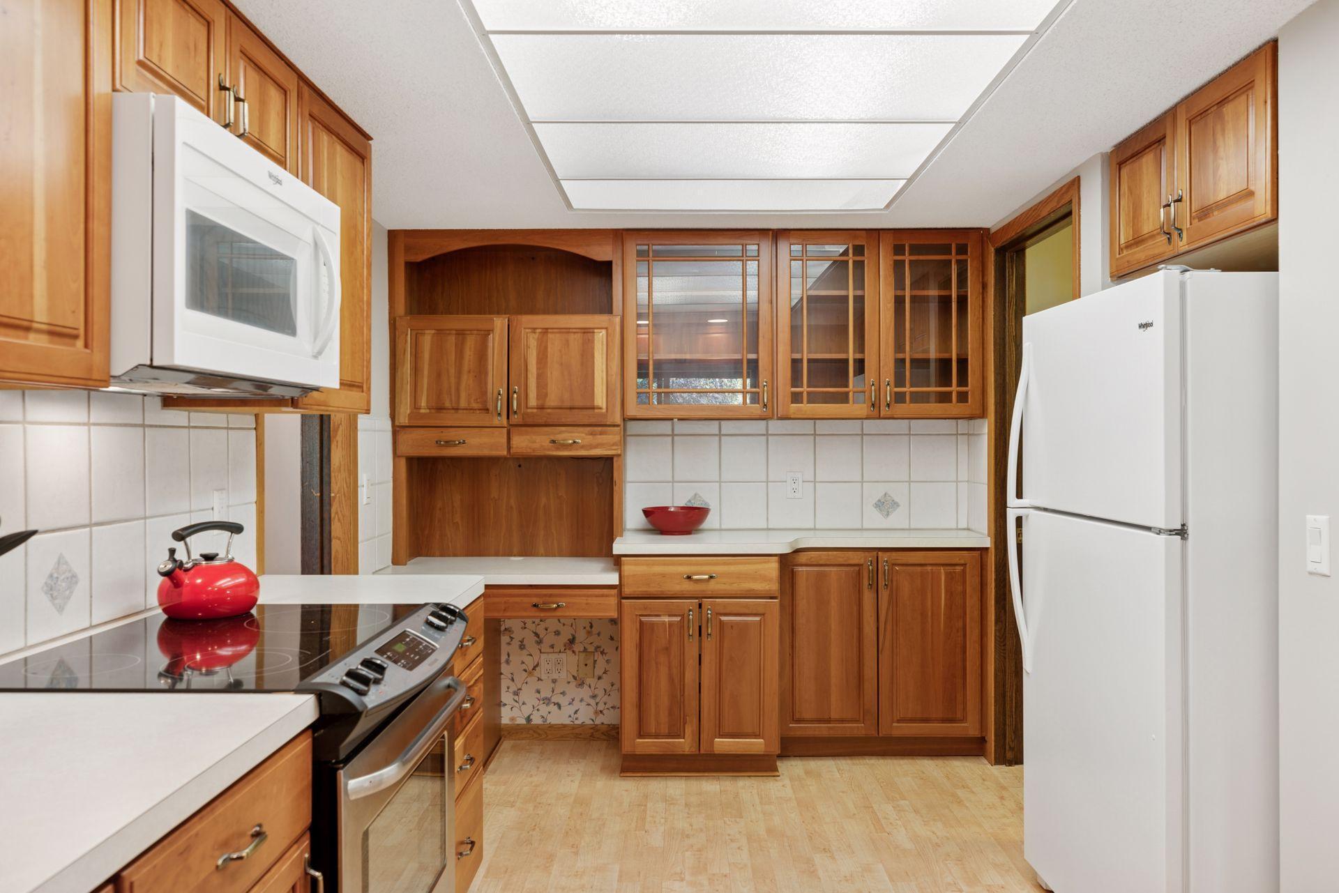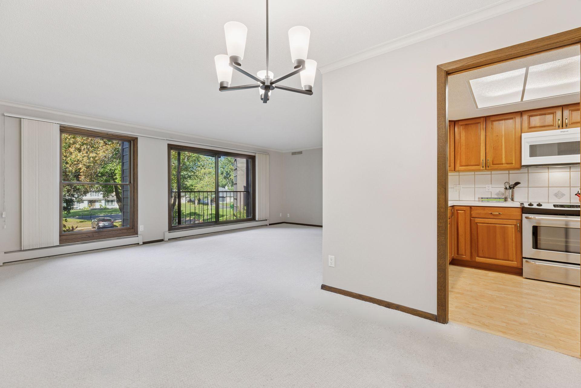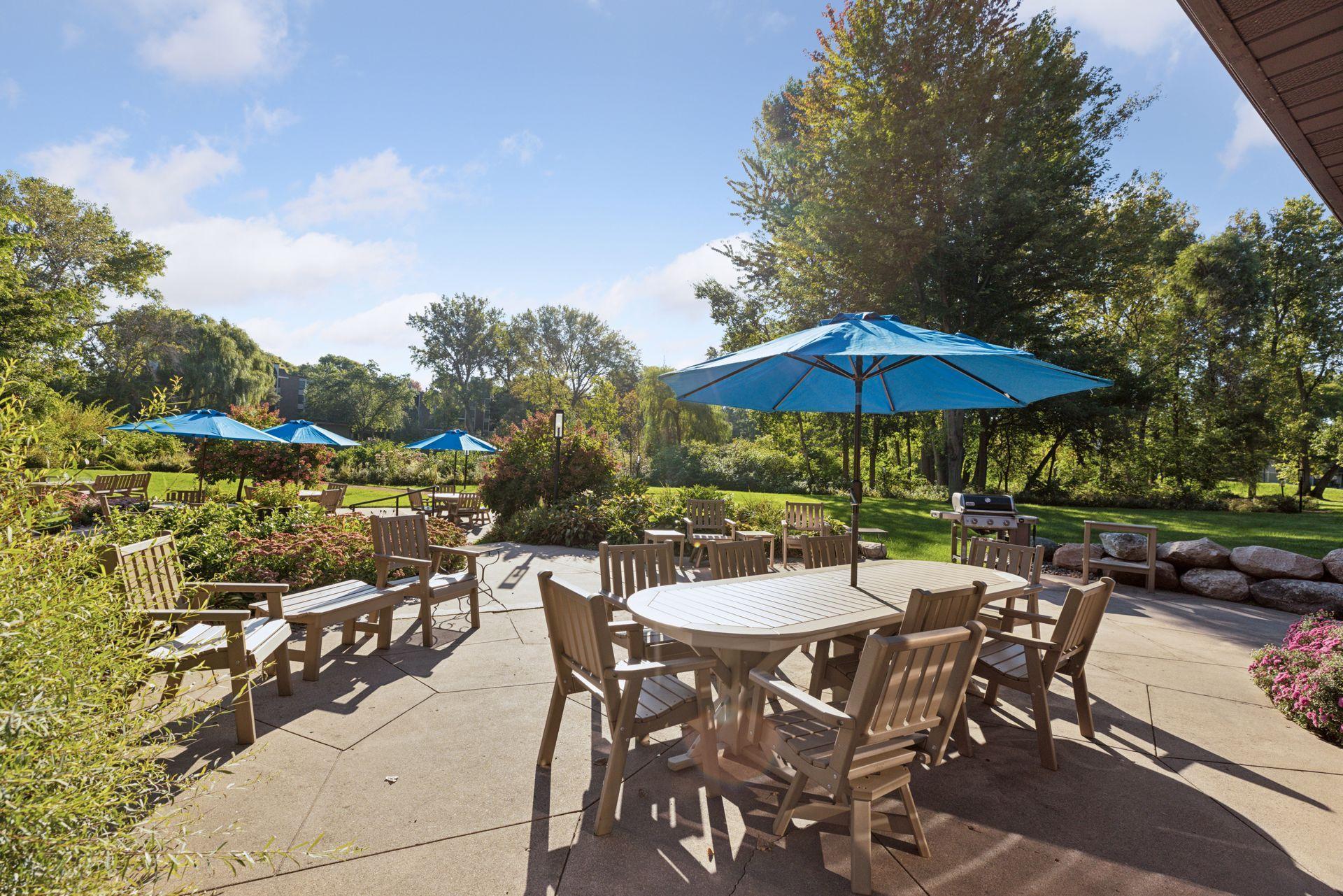 Welcome to Girard Park West! Perfectly located in a quiet tucked away neighborhood of single-family homes with beautifully kept grounds featuring multiple water features, ponds, patios, and walking paths! Clean, freshly painted, and move-in-ready, this light filled condo has a nicely sized kitchen with upgraded cabinetry including a built-in buffet and a desk, formal dining space and expansive living room with sliding glass door out to the 3-season porch, perfect for relaxing, dining, and card games. 2 bedrooms and 2 bathrooms are down the hall including a large primary suite with walk-in closet and private 3/4 bath. In-unit laundry room with a sink has additional cabinetry for storage. Underground, heated parking + dedicated storage unit. Unmatched amenities including an indoor and outdoor pool, hot tub, sauna, multiple patios with seating, firepits and grills, a workshop, guest suite, community room and more! Dues cover cable, internet, and all utilities with the exception of electric. Move in and enjoy!