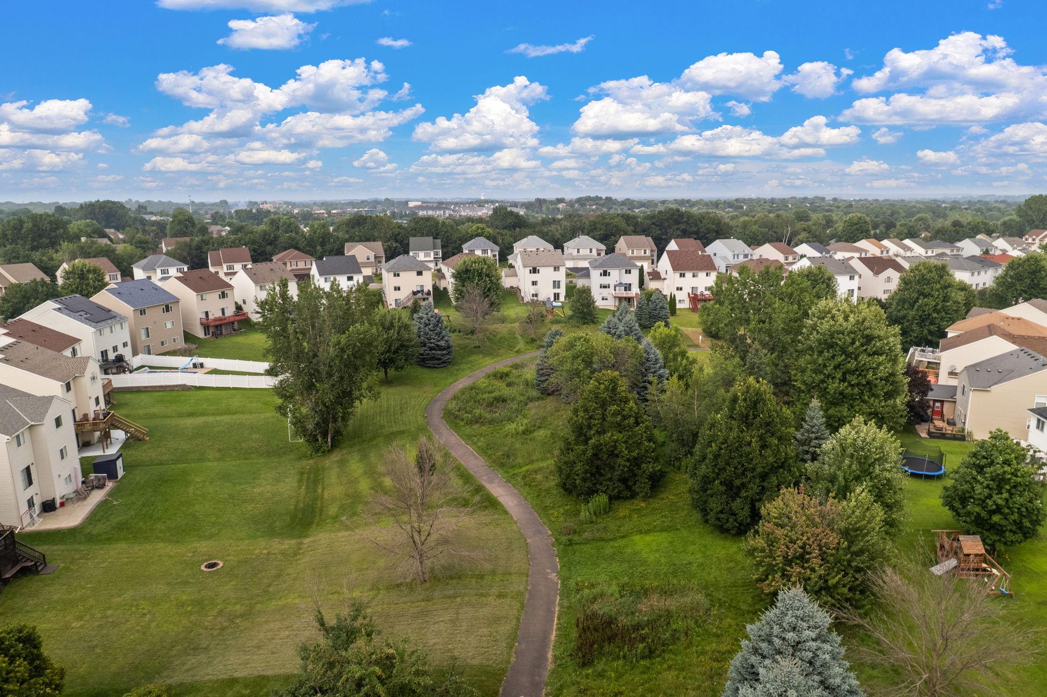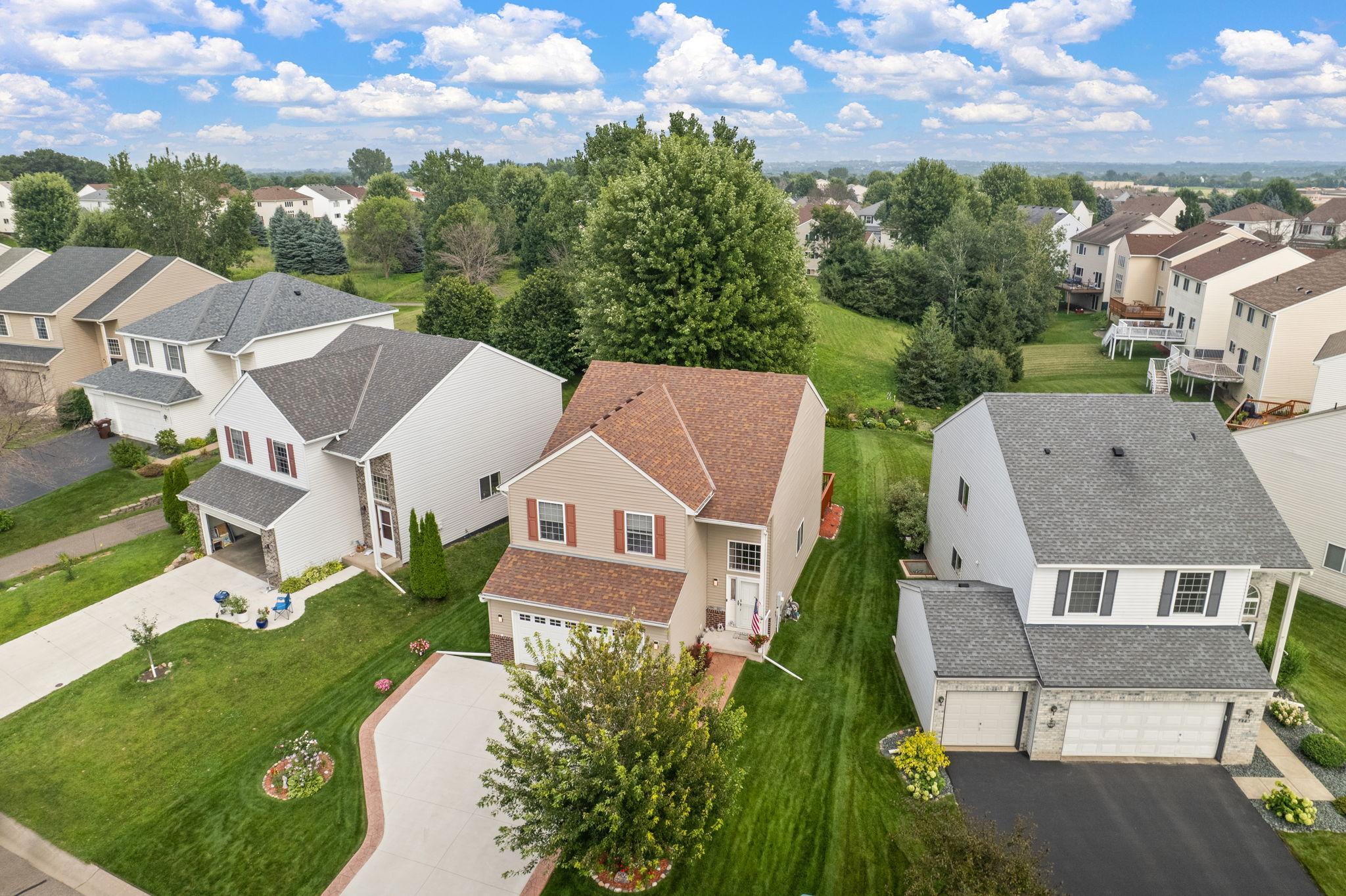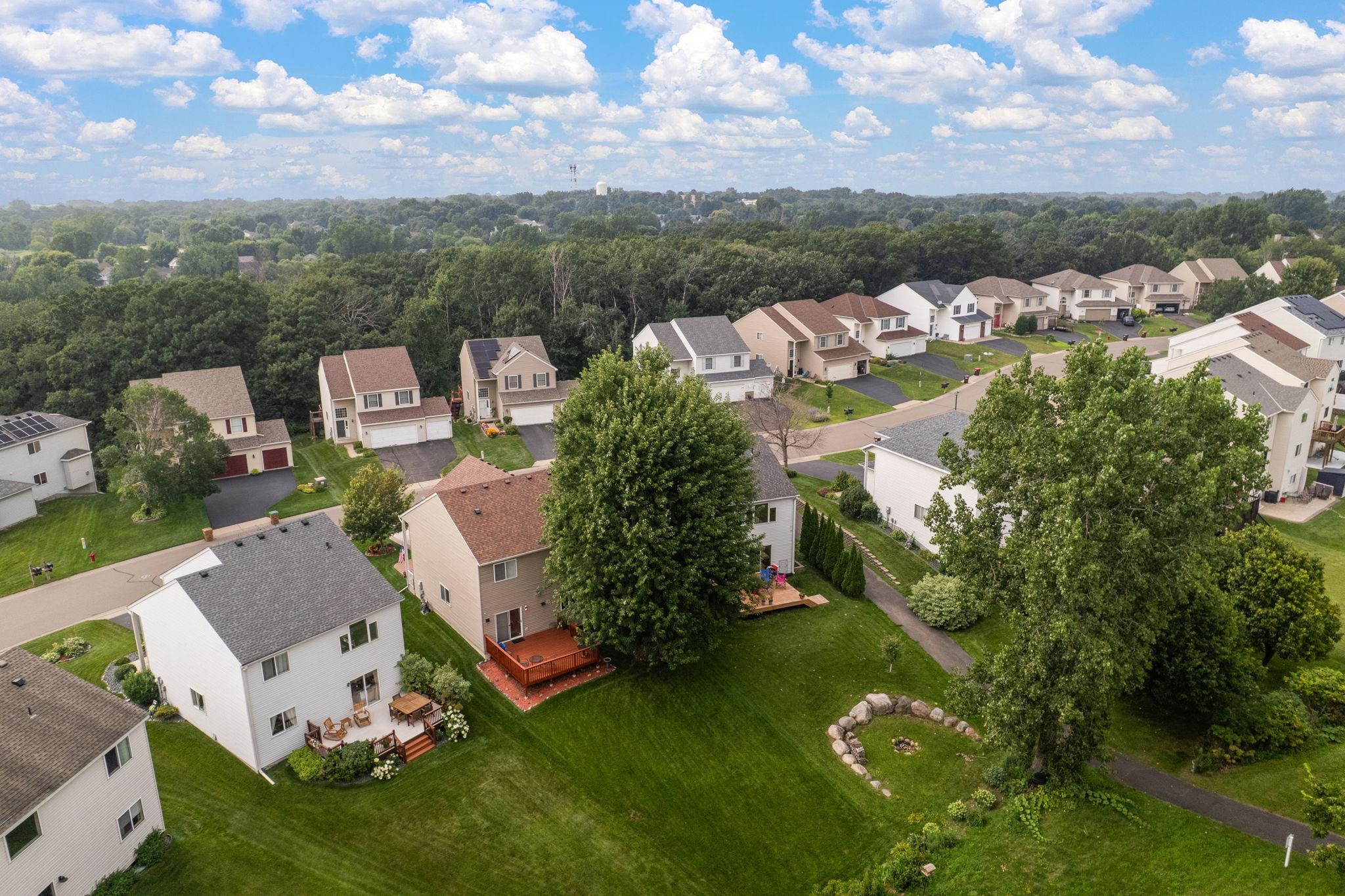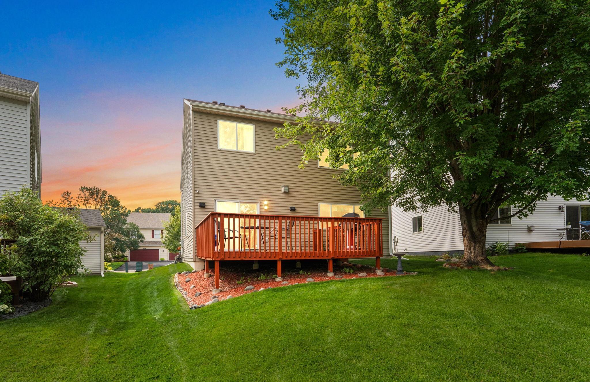 Upgraded Two-Story Home Backing to Nature in Prime Woodbury Location. Welcome to your private retreat in one of Woodbury’s most tranquil neighborhoods. Backing to protected green space and steps from a scenic walking path, this spacious two-story home offers over 2,800 sq ft of thoughtfully designed living space on a premium lot with year-round views and wildlife. The inviting main level features a brilliantly open design, yet cozy layout filled with natural light, vaulted ceilings, and serene backyard views. A flexible front room offers options for a home office, playroom, or reading nook. The kitchen is finished with solid quartz counters and flows seamlessly to the dining and living areas. Step out onto the deck to enjoy your peaceful backyard oasis—perfect for morning coffee or sunset views. Upstairs, you’ll find three generous bedrooms and a well-lit open loft, including a large primary suite with a private bath and walk-in closet. The fully finished lower level adds a second living area amazing fireplace, mood lighting, a wet bar, and a 4th bedroom and bath. Be thrilled with a modern fireplace and ambient space-age lighting—ideal for movie nights or entertaining. Smart home upgrades include smartphone-accessible: thermostat (variable-speed furnace & 5-stage A/C), MyQ garage opener, Govee exterior lights, water heater, front & garage entry locks, Ring doorbell, Xfinity-compatible security cameras & base station, over 25 smart switches/dimmers, and smoke/CO2 detectors. Add a smart hub for even more control. Enjoy the best of Minnesota’s seasons in this peaceful setting just minutes from top-rated schools, parks, shopping, and trails. A rare find combining comfort, tech, and nature—don’t miss it!