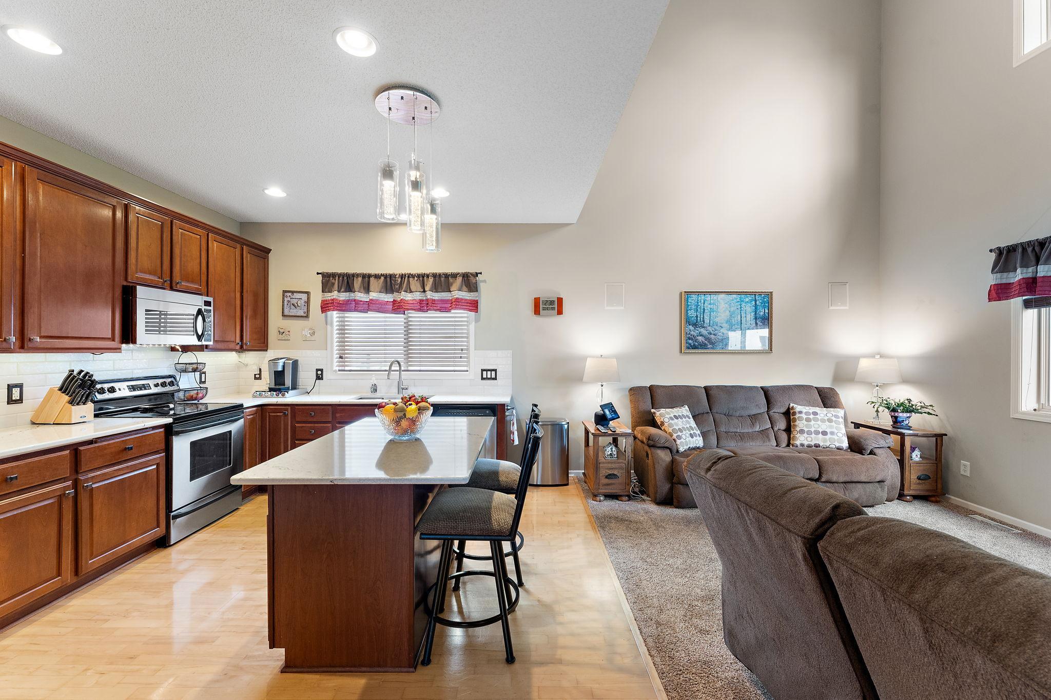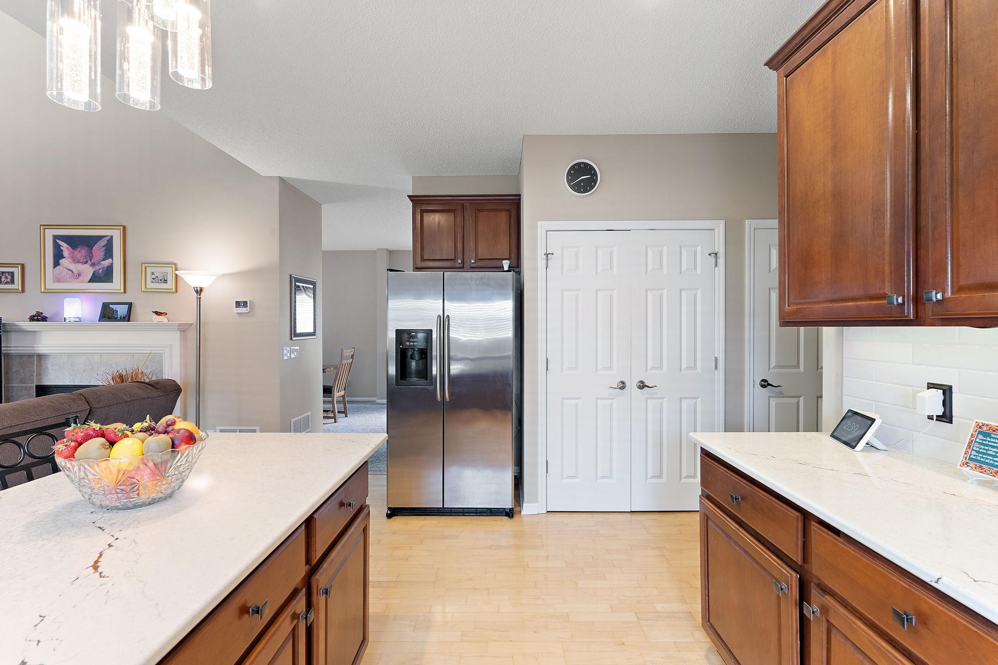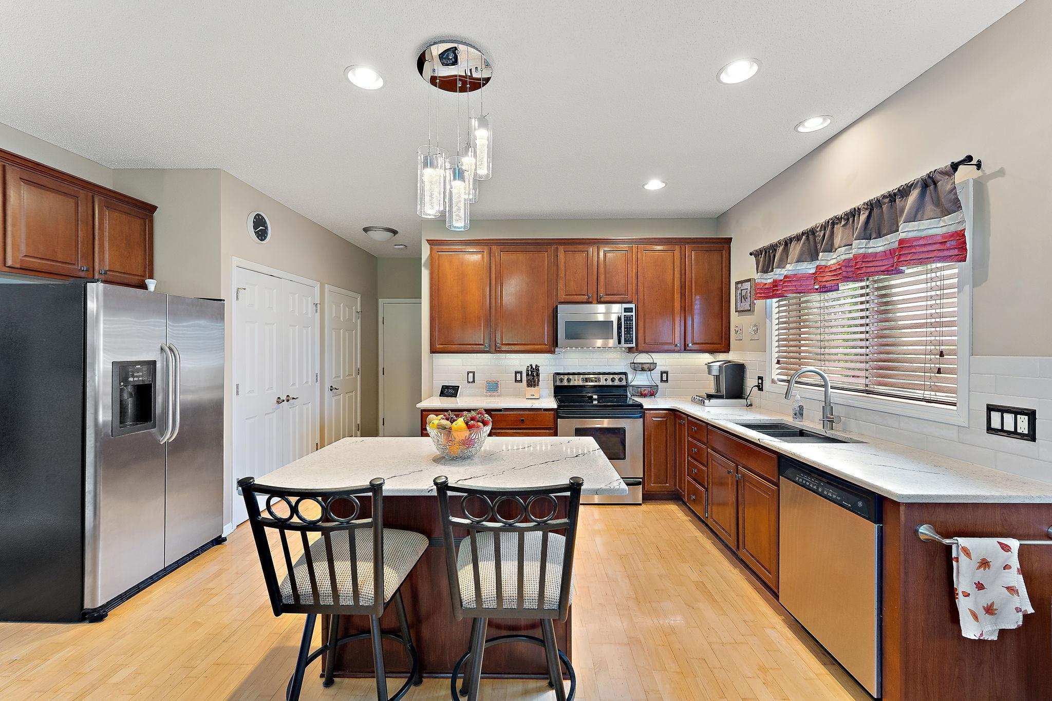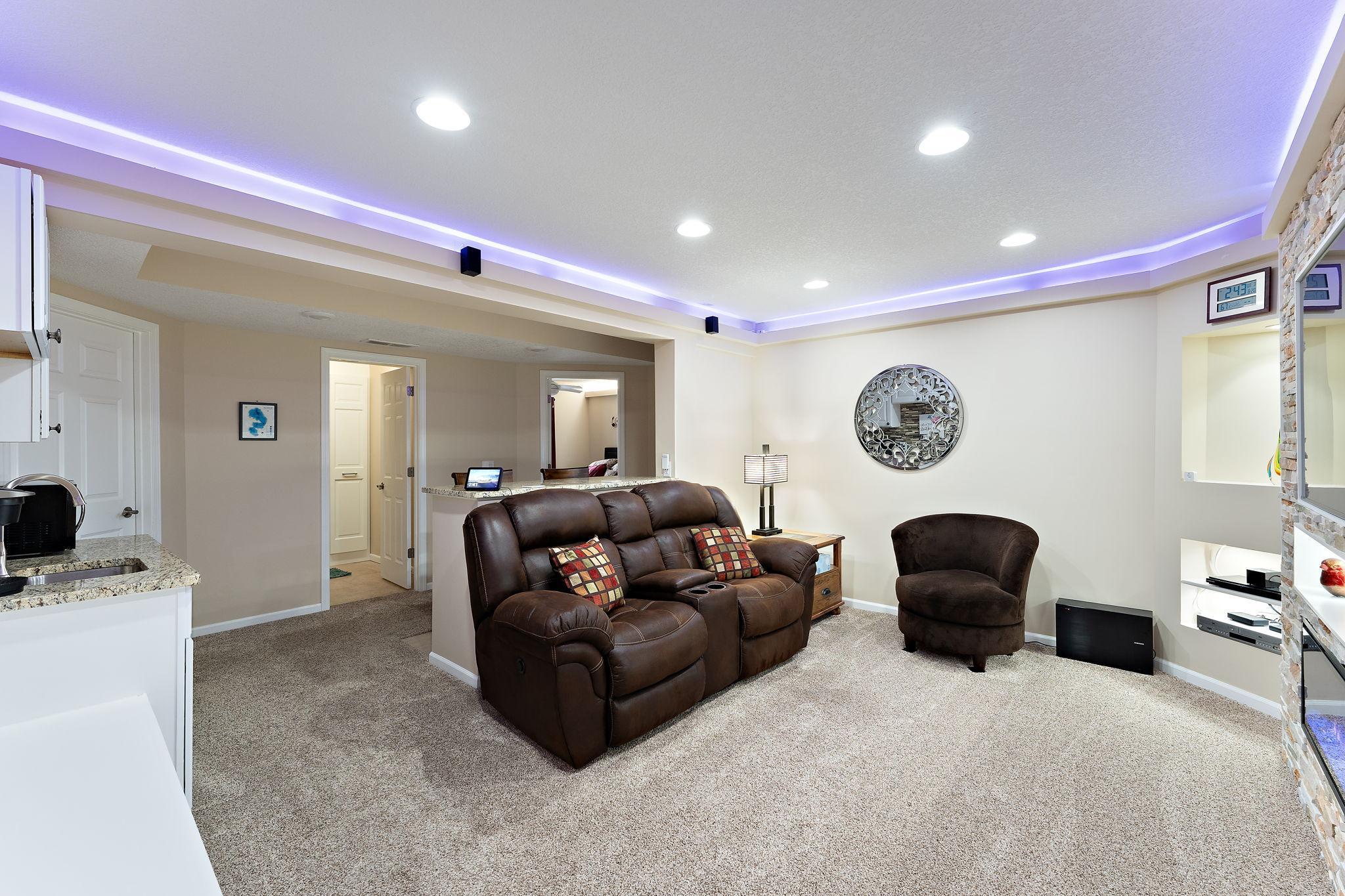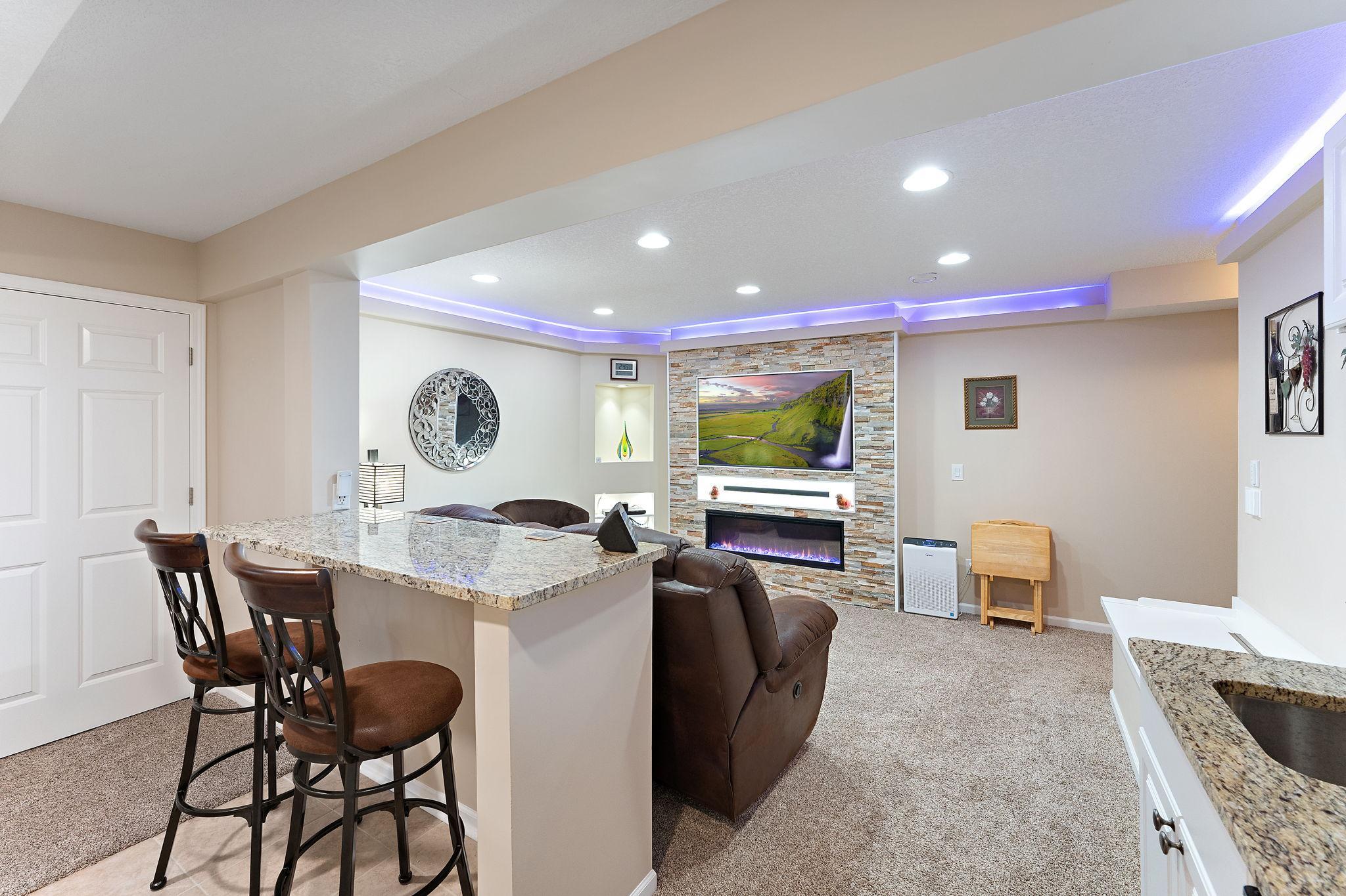 Upgraded Two-Story Home Backing to Nature in Prime Woodbury Location. Welcome to your private retreat in one of Woodbury’s most tranquil neighborhoods. Backing to protected green space and steps from a scenic walking path, this spacious two-story home offers over 2,800 sq ft of thoughtfully designed living space on a premium lot with year-round views and wildlife. The inviting main level features a brilliantly open design, yet cozy layout filled with natural light, vaulted ceilings, and serene backyard views. A flexible front room offers options for a home office, playroom, or reading nook. The kitchen is finished with solid quartz counters and flows seamlessly to the dining and living areas. Step out onto the deck to enjoy your peaceful backyard oasis—perfect for morning coffee or sunset views. Upstairs, you’ll find three generous bedrooms and a well-lit open loft, including a large primary suite with a private bath and walk-in closet. The fully finished lower level adds a second living area amazing fireplace, mood lighting, a wet bar, and a 4th bedroom and bath. Be thrilled with a modern fireplace and ambient space-age lighting—ideal for movie nights or entertaining. Smart home upgrades include smartphone-accessible: thermostat (variable-speed furnace & 5-stage A/C), MyQ garage opener, Govee exterior lights, water heater, front & garage entry locks, Ring doorbell, Xfinity-compatible security cameras & base station, over 25 smart switches/dimmers, and smoke/CO2 detectors. Add a smart hub for even more control. Enjoy the best of Minnesota’s seasons in this peaceful setting just minutes from top-rated schools, parks, shopping, and trails. A rare find combining comfort, tech, and nature—don’t miss it!