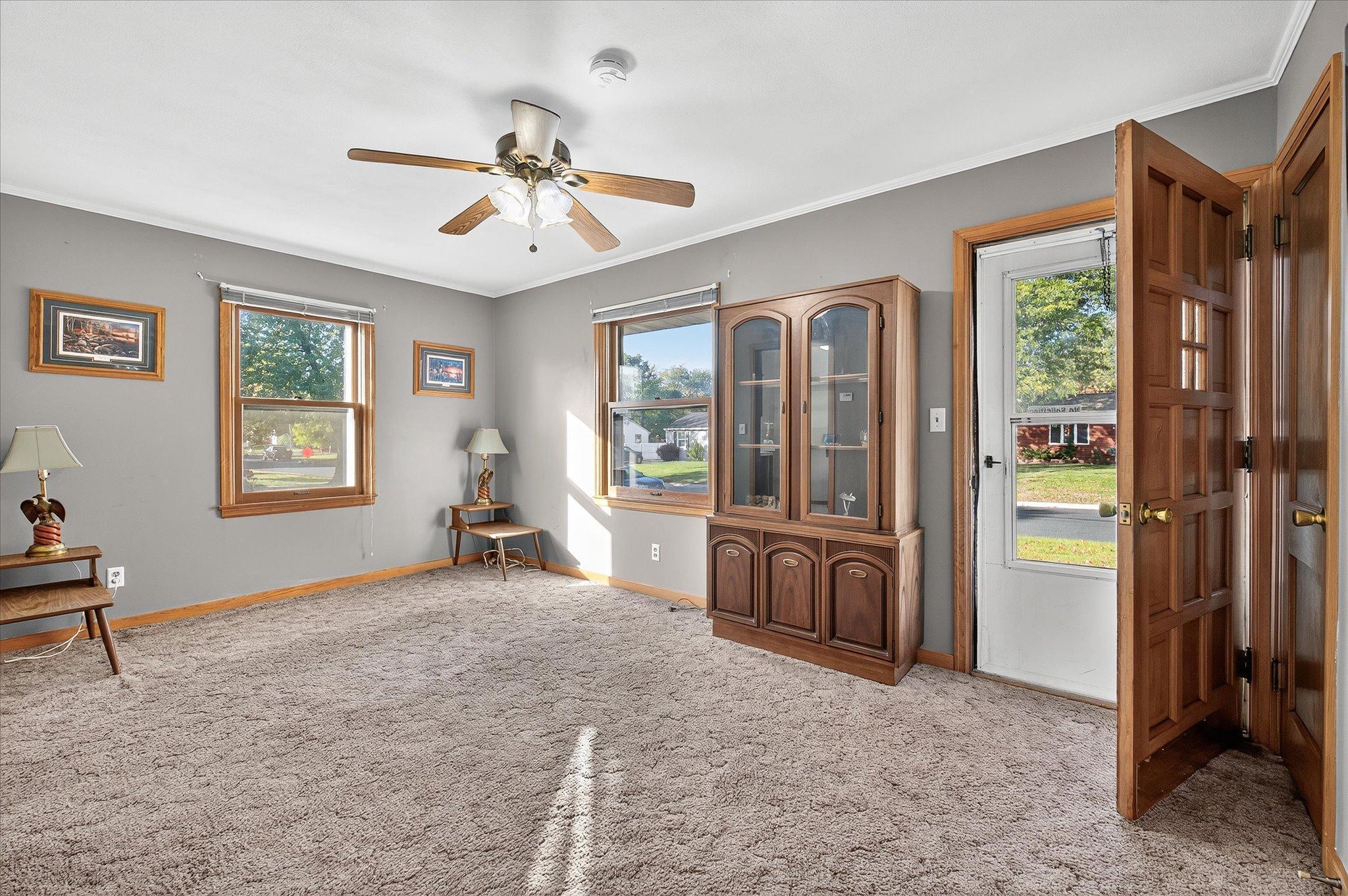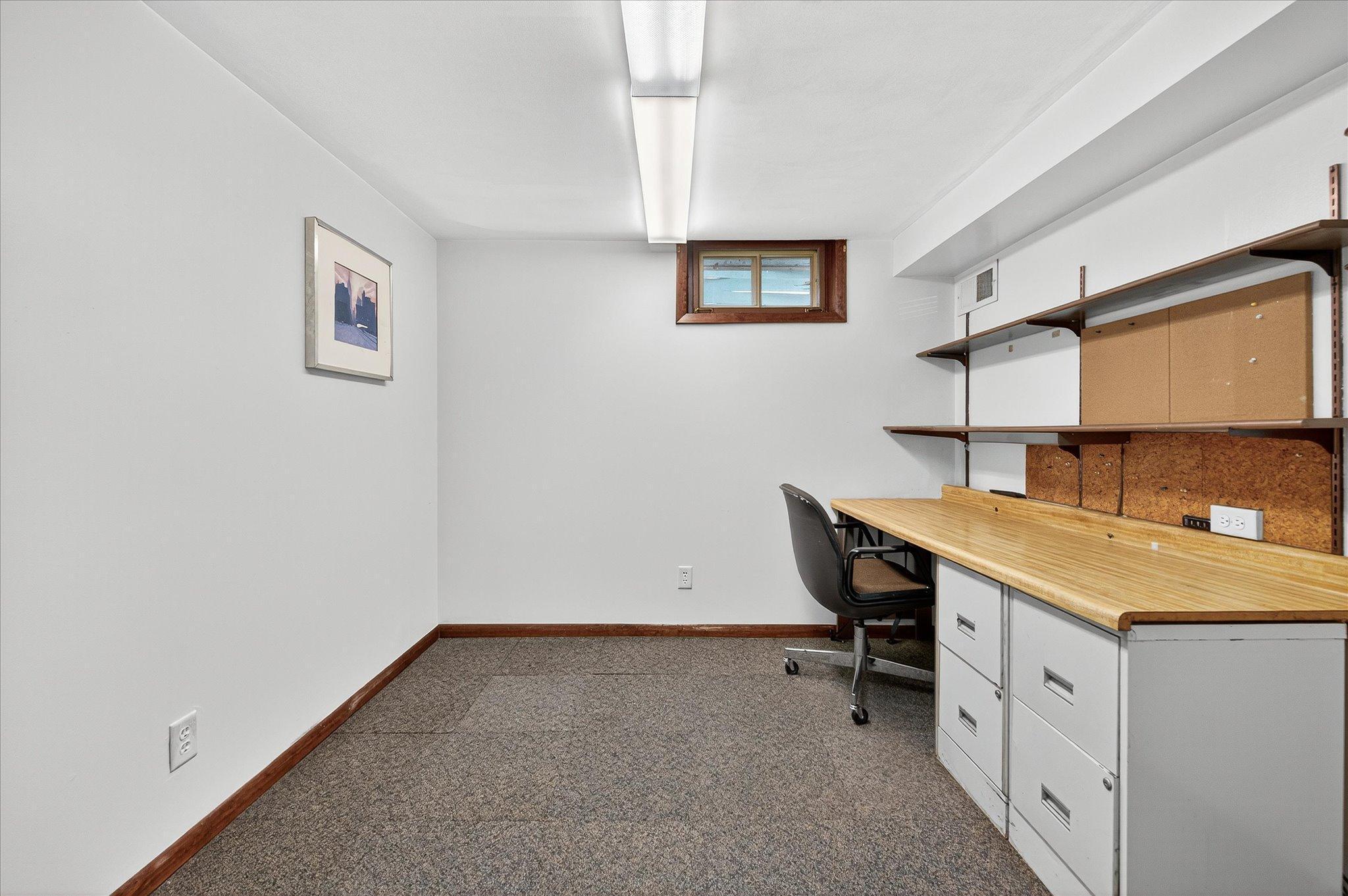 Charming 1950's Ranch with Modern Updates and Room to Grow. Step into this inviting single-level home that perfectly blends vintage character with thoughtful updates. Originally built in the 1950s, this well-maintained residence offers comfortable living with an eat-in kitchen, hardwood floors under the carpet, and plenty of natural light throughout. Enjoy peace of mind with updated windows and a newer furnace, adding efficiency and comfort year-round. The home currently features two main-level bedrooms and a lower-level office - with the potential to add an egress window and easily create a third bedroom. Outside, you'll love the covered patio just off the back door - perfect for outdoor dining or relaxing evenings. The flat, fully fenced backyard offers plenty of space for play, gardening, or pets. A detached two-car garage provides ample parking and storage. With its solid construction, desirable updates, and flexible layout, this home is full of potential and ready for your personal touch!