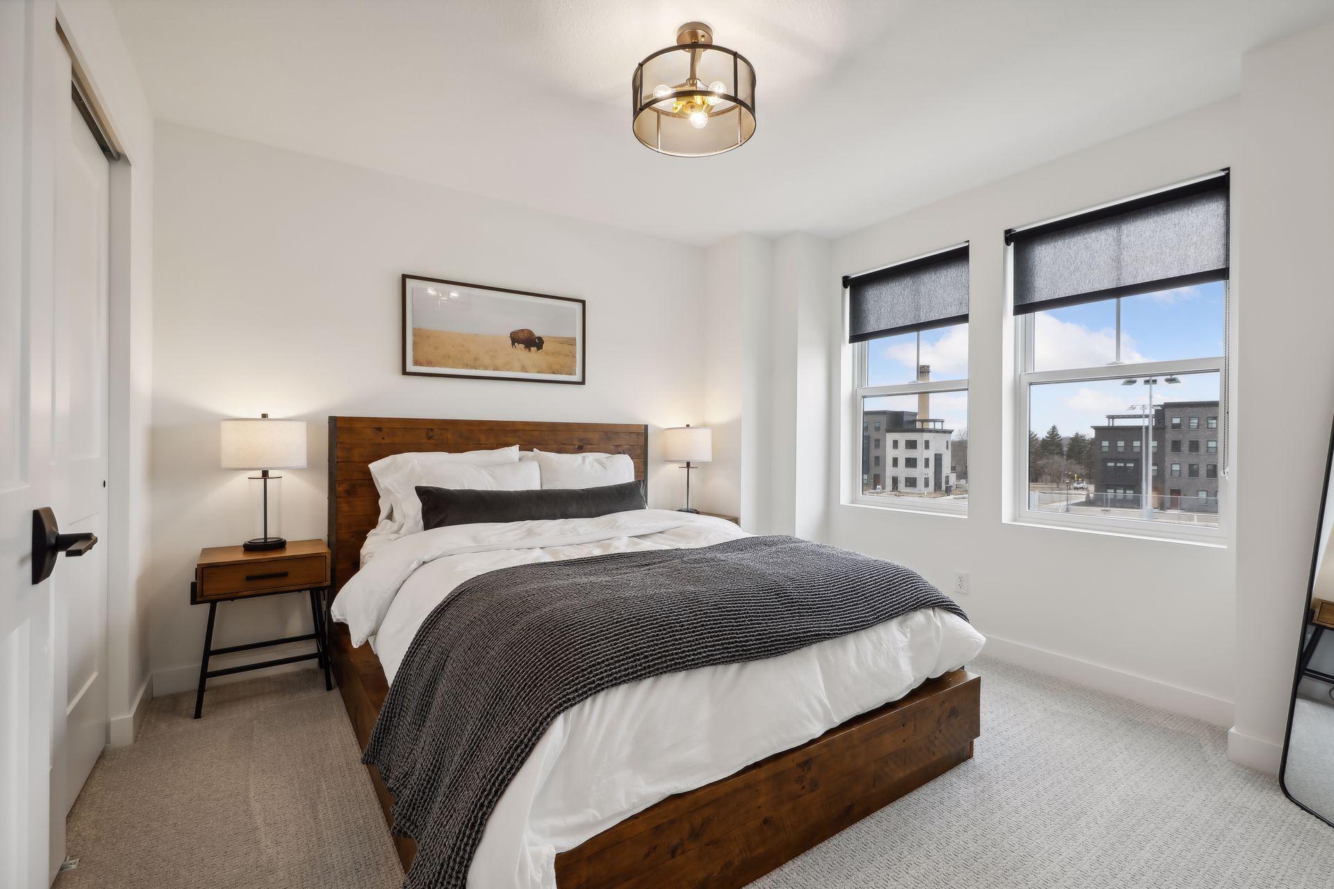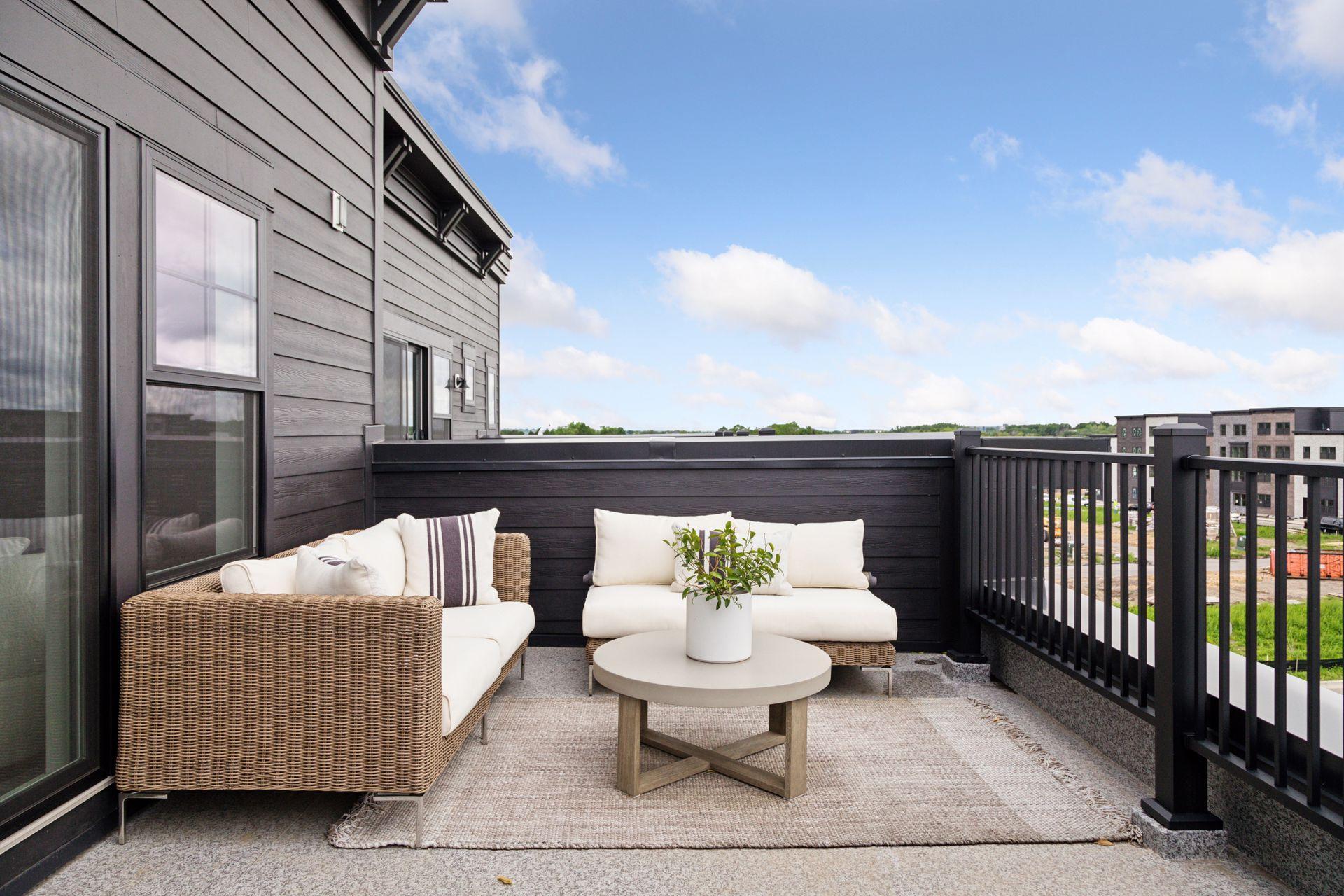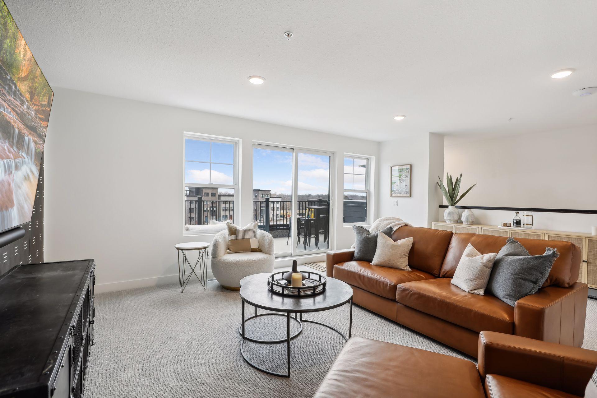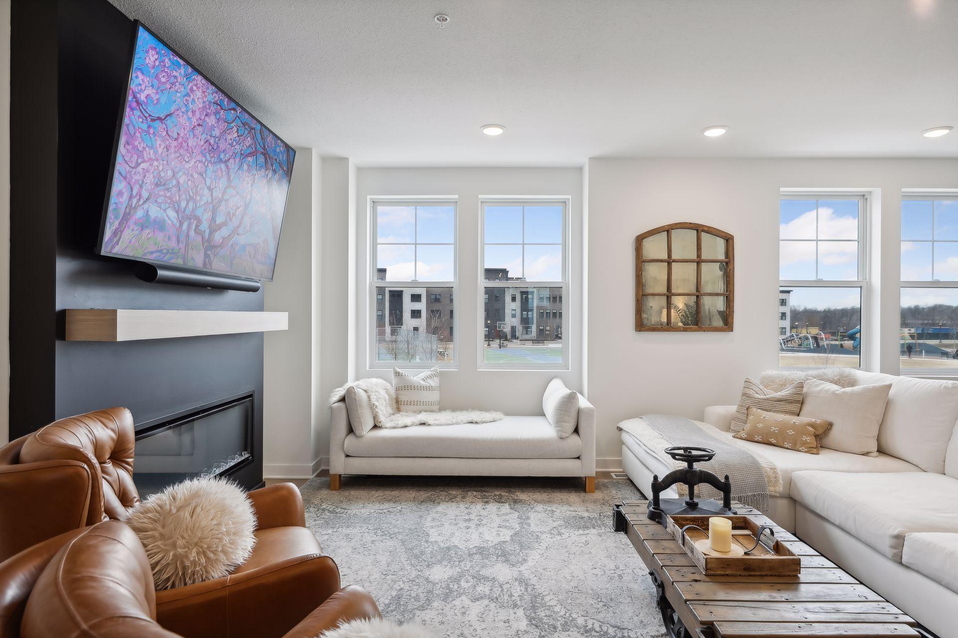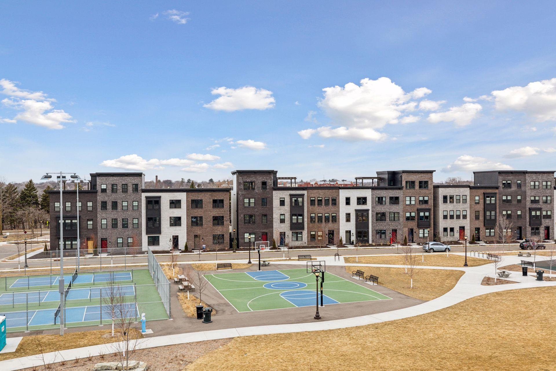 Welcome to Highland Bridge in Highland Park! A unique opportunity, this incredible Jayton floor plan is one of the largest floor plans offered here and is no longer available by the builder if you are seeking four bedrooms, five bathrooms, and a fourth level with a family room, rooftop deck and incredible views. Better than new, this rowhome is stunning top to bottom and is urban living at its finest. Walkable to just about everything you could ever desire including the flagship Lunds & Byerlys grocery store, Lifetime Fitness, Target, Starbucks, Walgreens, Highland Movie Theater, shops and a medley of restaurants. Just minutes to the Minneapolis/St. Paul International Airport, it’s perfect for frequent travelers and is close proximity to downtown St. Paul, Minneapolis and freeway access. This premium river front development is 55 acres of parks and recreation, 10 miles of walking and biking trails, dog park, skateboarding, pickle ball, basketball and futsal courts. Boasting over 3000 square feet, this lives like a house, without maintenance. The main level is open concept with a luxury chef’s kitchen with GE Café’ upgraded stainless appliances, custom exhaust hood, quartz countertops, massive center island for casual dining, generous amounts of cabinet space, an incredible pantry, informal dining, low-maintenance deck for grilling and a beautiful living room with electric fireplace and white oak hardwood floors throughout. The third level has a luxurious primary bedroom with a spa-like ¾ bath with dual sinks, walk-in tiled shower and an incredible walk-in closet with California Closet shelving. This floor is rounded off with two more over-sized bedrooms, a full bath with quartz countertop, and a convenient laundry closet. The fourth level features a family room, great for entertaining or escaping, fourth bedroom with full bath, and party deck with panoramic views of the Mississippi River Valley, heartwarming sunsets, and the Downtown Minneapolis skyline. The main floor has an executive office with built-in book case and ½ bath. The over-sized two-car garage has epoxy floors with electric vehicle charging. Over $360,000 in builder and post-closing upgrades. Low association fee. Quick closing possible. A fully furnished option is available. This property is sure to amaze! See 3D virtual tour for your own private showing today.