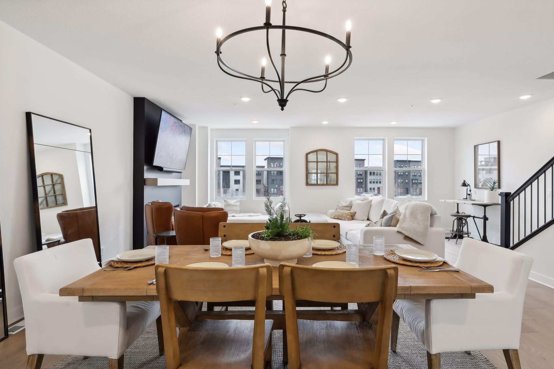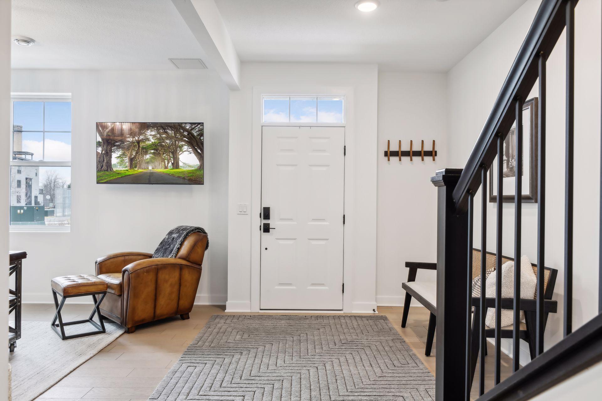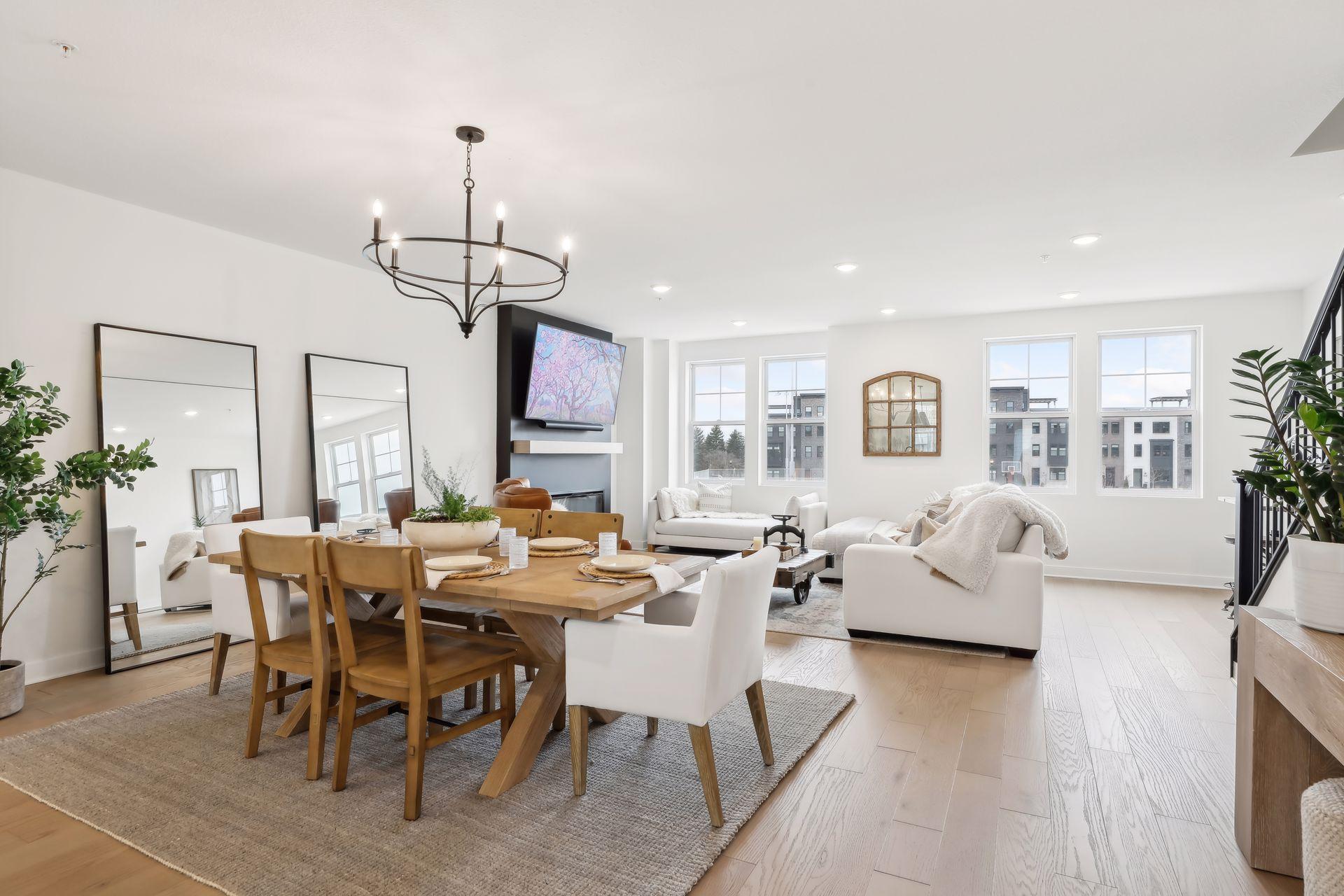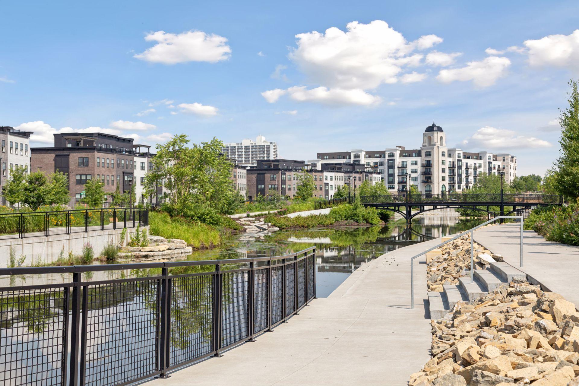 Welcome to Highland Bridge in Highland Park! A unique opportunity, this incredible Jayton floor plan is one of the largest floor plans offered here and is no longer available by the builder if you are seeking four bedrooms, five bathrooms, and a fourth level with a family room, rooftop deck and incredible views. Better than new, this rowhome is stunning top to bottom and is urban living at its finest. Walkable to just about everything you could ever desire including the flagship Lunds & Byerlys grocery store, Lifetime Fitness, Target, Starbucks, Walgreens, Highland Movie Theater, shops and a medley of restaurants. Just minutes to the Minneapolis/St. Paul International Airport, it’s perfect for frequent travelers and is close proximity to downtown St. Paul, Minneapolis and freeway access. This premium river front development is 55 acres of parks and recreation, 10 miles of walking and biking trails, dog park, skateboarding, pickle ball, basketball and futsal courts. Boasting over 3000 square feet, this lives like a house, without maintenance. The main level is open concept with a luxury chef’s kitchen with GE Café’ upgraded stainless appliances, custom exhaust hood, quartz countertops, massive center island for casual dining, generous amounts of cabinet space, an incredible pantry, informal dining, low-maintenance deck for grilling and a beautiful living room with electric fireplace and white oak hardwood floors throughout. The third level has a luxurious primary bedroom with a spa-like ¾ bath with dual sinks, walk-in tiled shower and an incredible walk-in closet with California Closet shelving. This floor is rounded off with two more over-sized bedrooms, a full bath with quartz countertop, and a convenient laundry closet. The fourth level features a family room, great for entertaining or escaping, fourth bedroom with full bath, and party deck with panoramic views of the Mississippi River Valley, heartwarming sunsets, and the Downtown Minneapolis skyline. The main floor has an executive office with built-in book case and ½ bath. The over-sized two-car garage has epoxy floors with electric vehicle charging. Over $360,000 in builder and post-closing upgrades. Low association fee. Quick closing possible. A fully furnished option is available. This property is sure to amaze! See 3D virtual tour for your own private showing today.