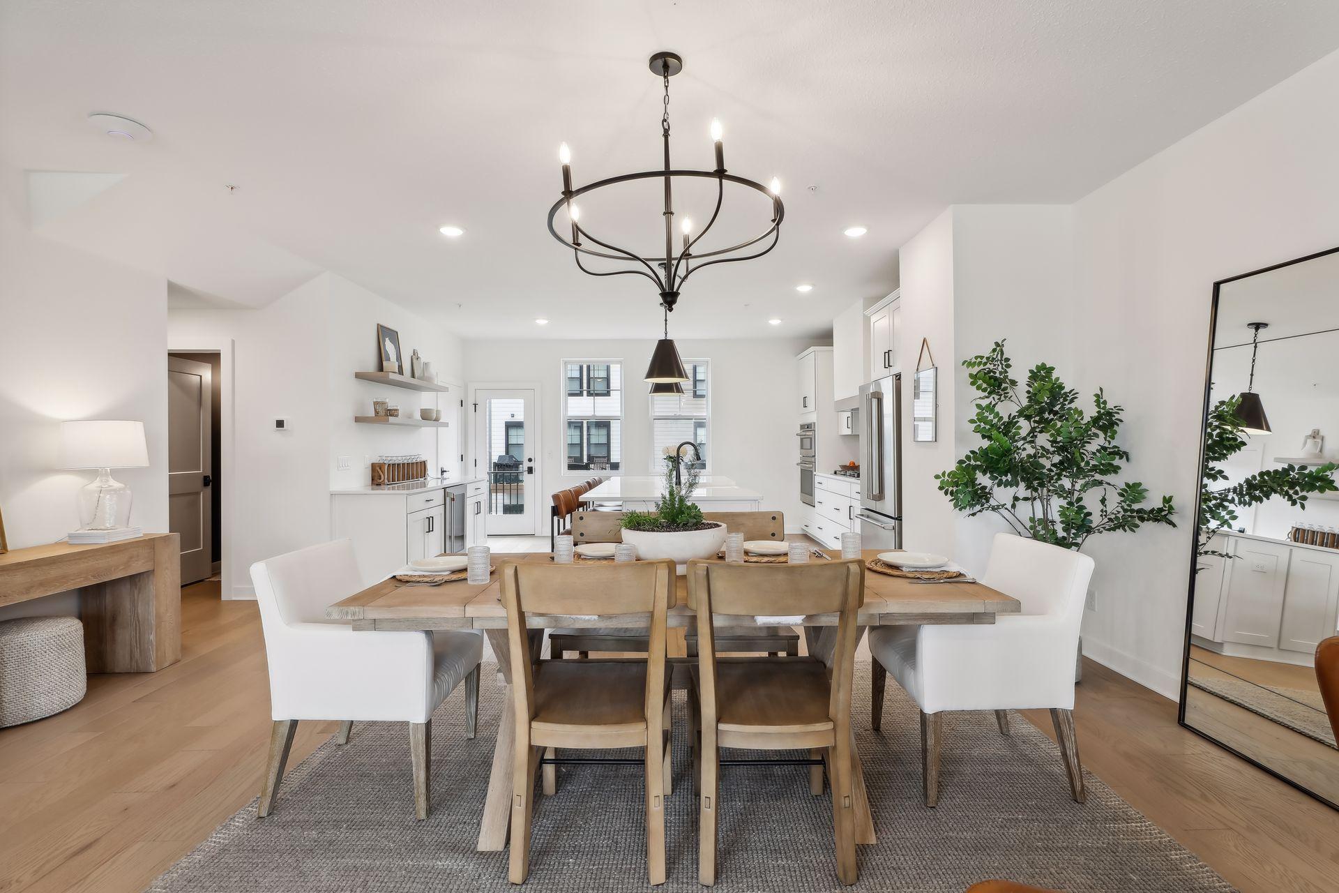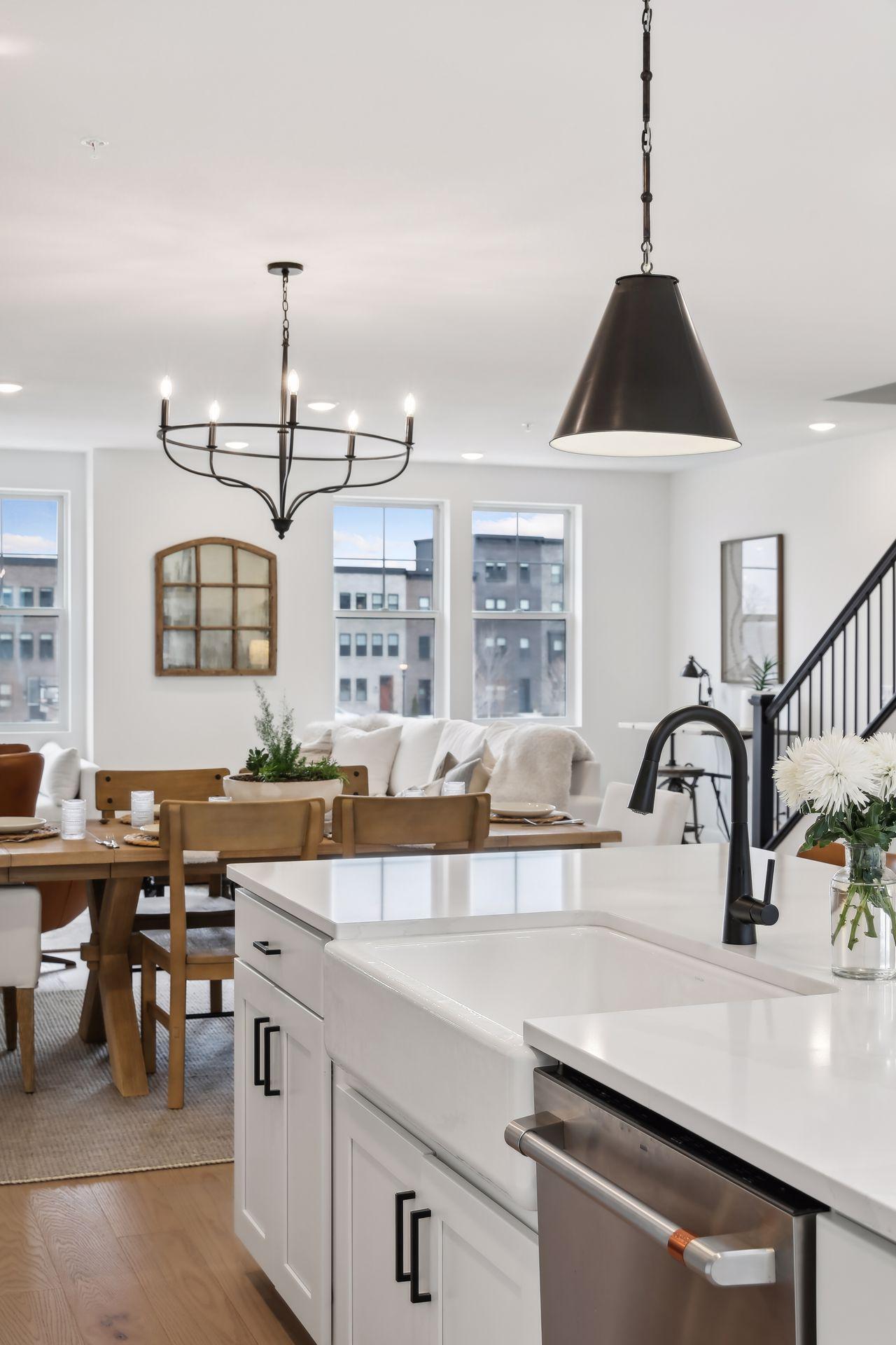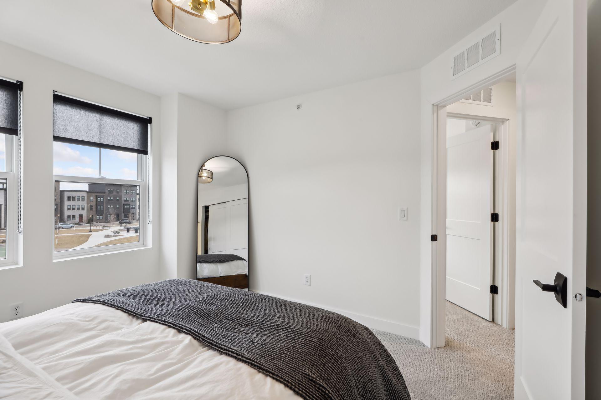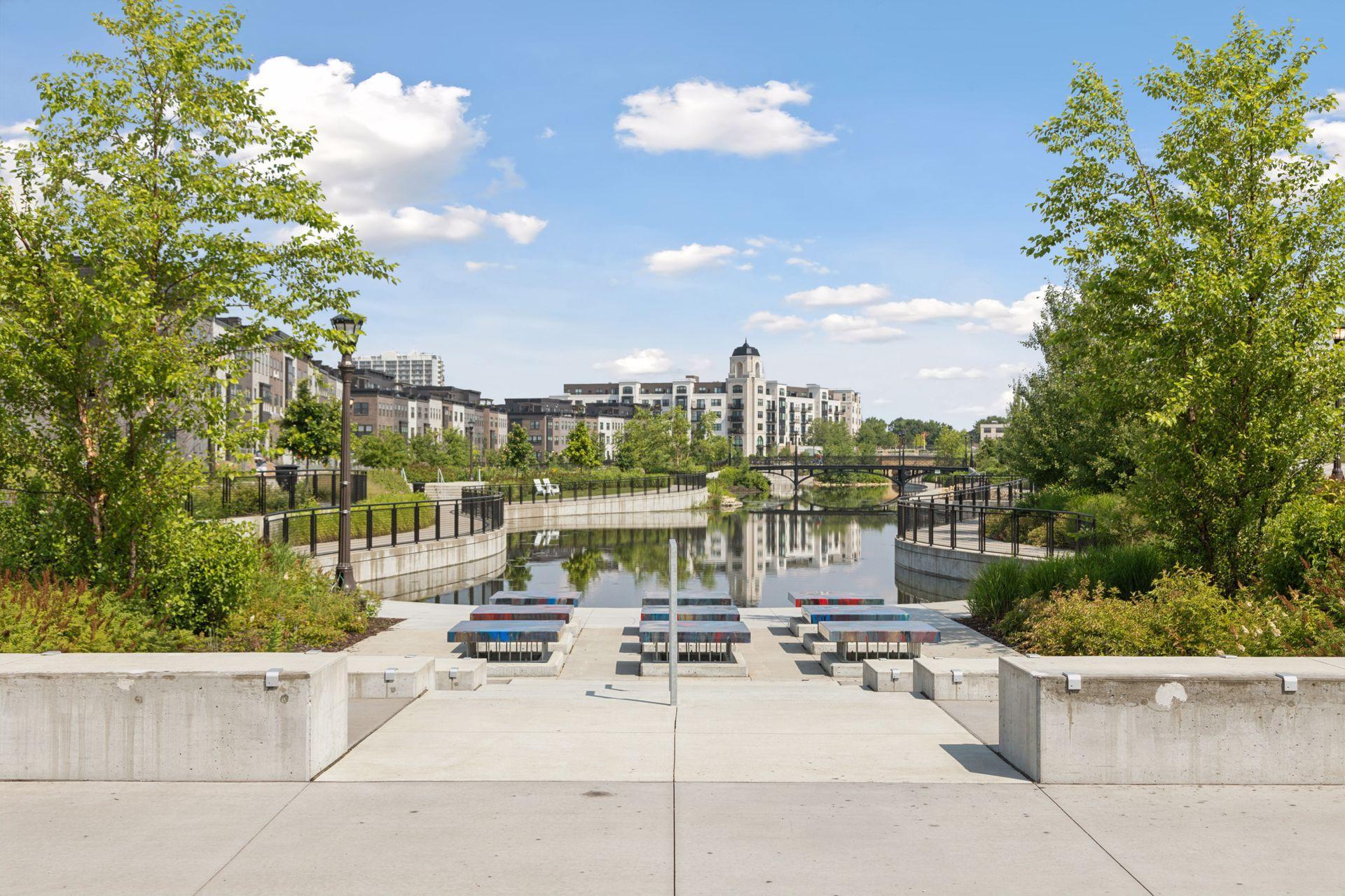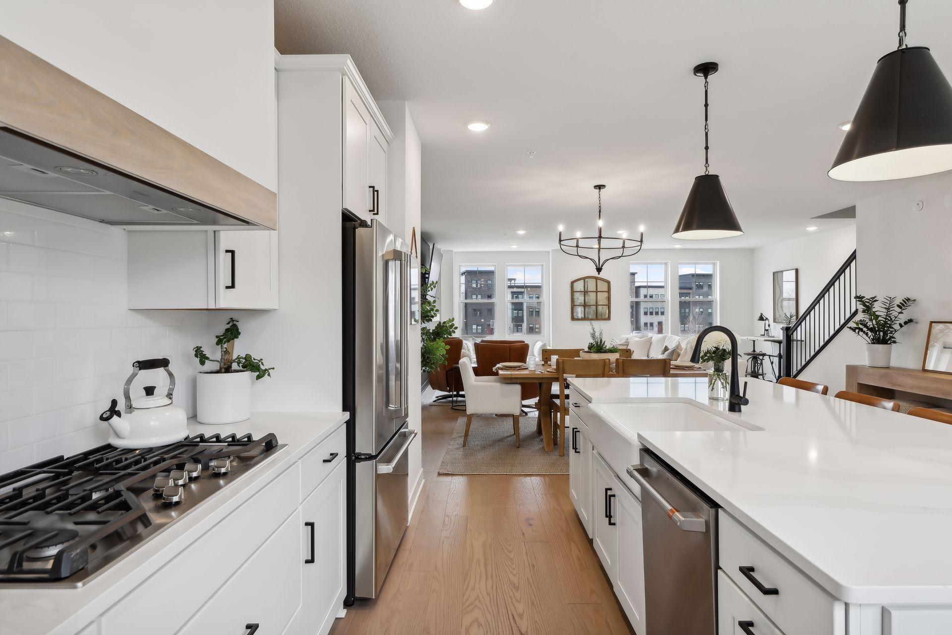 Welcome to Highland Bridge in Highland Park! A unique opportunity, this incredible Jayton floor plan is one of the largest floor plans offered here and is no longer available by the builder if you are seeking four bedrooms, five bathrooms, and a fourth level with a family room, rooftop deck and incredible views. Better than new, this rowhome is stunning top to bottom and is urban living at its finest. Walkable to just about everything you could ever desire including the flagship Lunds & Byerlys grocery store, Lifetime Fitness, Target, Starbucks, Walgreens, Highland Movie Theater, shops and a medley of restaurants. Just minutes to the Minneapolis/St. Paul International Airport, it’s perfect for frequent travelers and is close proximity to downtown St. Paul, Minneapolis and freeway access. This premium river front development is 55 acres of parks and recreation, 10 miles of walking and biking trails, dog park, skateboarding, pickle ball, basketball and futsal courts. Boasting over 3000 square feet, this lives like a house, without maintenance. The main level is open concept with a luxury chef’s kitchen with GE Café’ upgraded stainless appliances, custom exhaust hood, quartz countertops, massive center island for casual dining, generous amounts of cabinet space, an incredible pantry, informal dining, low-maintenance deck for grilling and a beautiful living room with electric fireplace and white oak hardwood floors throughout. The third level has a luxurious primary bedroom with a spa-like ¾ bath with dual sinks, walk-in tiled shower and an incredible walk-in closet with California Closet shelving. This floor is rounded off with two more over-sized bedrooms, a full bath with quartz countertop, and a convenient laundry closet. The fourth level features a family room, great for entertaining or escaping, fourth bedroom with full bath, and party deck with panoramic views of the Mississippi River Valley, heartwarming sunsets, and the Downtown Minneapolis skyline. The main floor has an executive office with built-in book case and ½ bath. The over-sized two-car garage has epoxy floors with electric vehicle charging. Over $360,000 in builder and post-closing upgrades. Low association fee. Quick closing possible. A fully furnished option is available. This property is sure to amaze! See 3D virtual tour for your own private showing today.