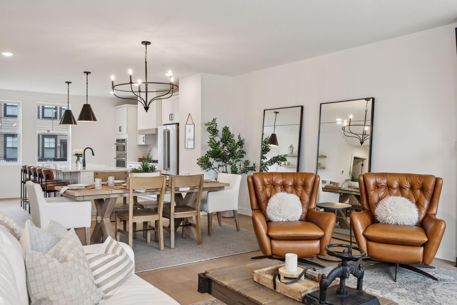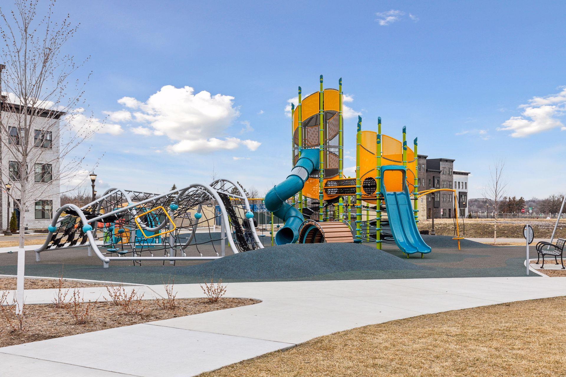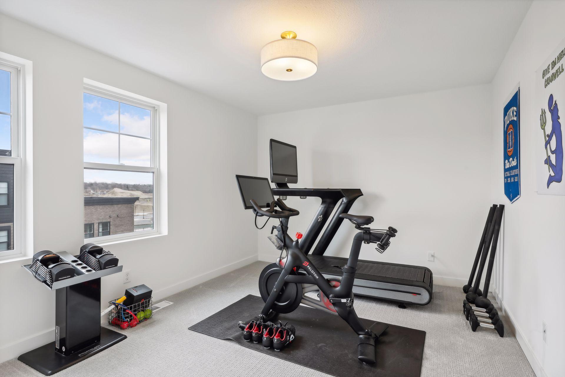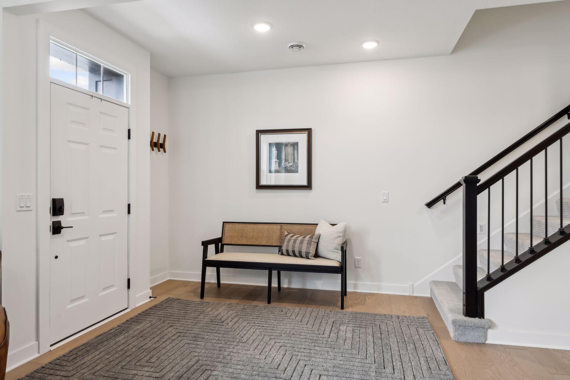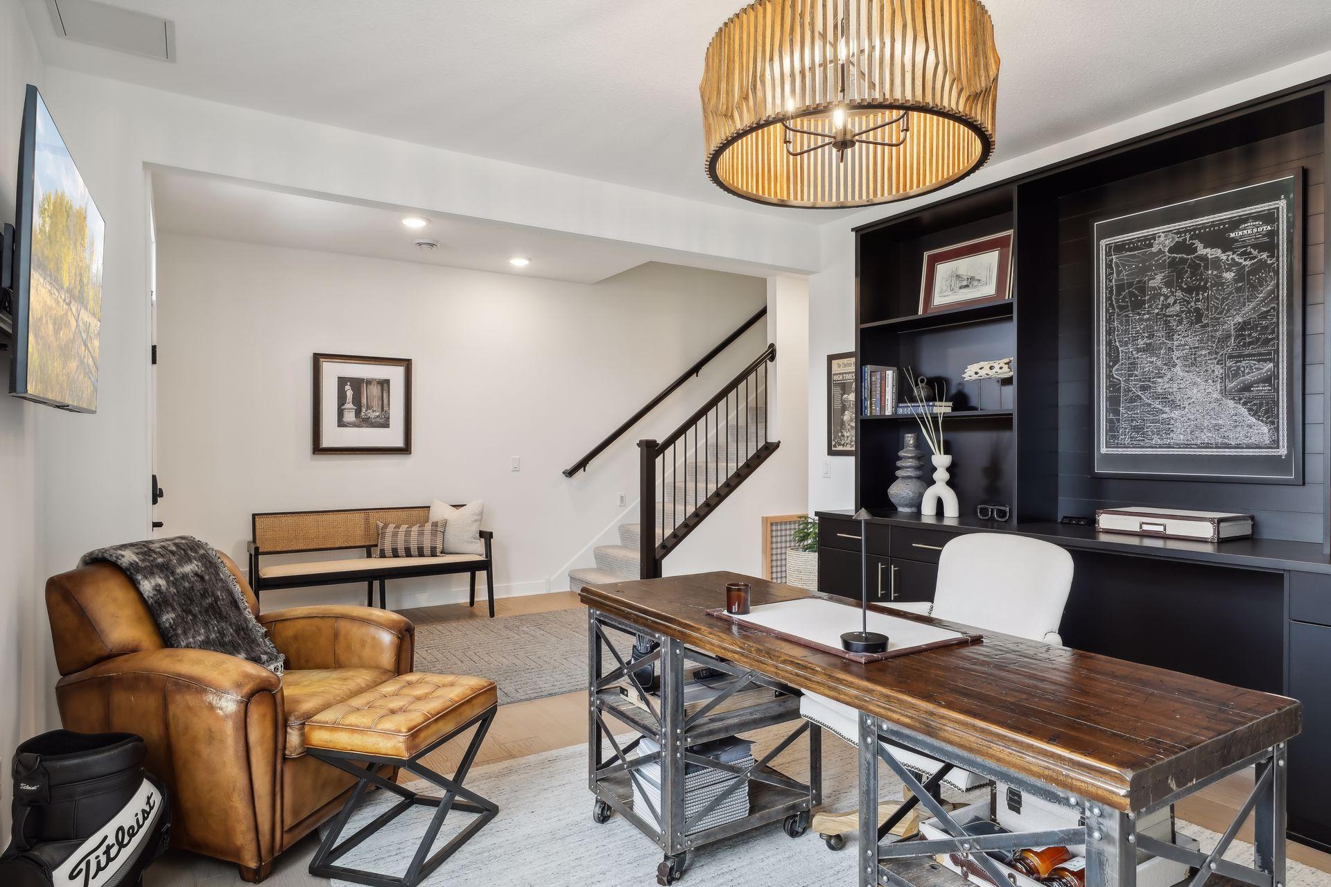 Welcome to Highland Bridge in Highland Park! A unique opportunity, this incredible Jayton floor plan is one of the largest floor plans offered here and is no longer available by the builder if you are seeking four bedrooms, five bathrooms, and a fourth level with a family room, rooftop deck and incredible views. Better than new, this rowhome is stunning top to bottom and is urban living at its finest. Walkable to just about everything you could ever desire including the flagship Lunds & Byerlys grocery store, Lifetime Fitness, Target, Starbucks, Walgreens, Highland Movie Theater, shops and a medley of restaurants. Just minutes to the Minneapolis/St. Paul International Airport, it’s perfect for frequent travelers and is close proximity to downtown St. Paul, Minneapolis and freeway access. This premium river front development is 55 acres of parks and recreation, 10 miles of walking and biking trails, dog park, skateboarding, pickle ball, basketball and futsal courts. Boasting over 3000 square feet, this lives like a house, without maintenance. The main level is open concept with a luxury chef’s kitchen with GE Café’ upgraded stainless appliances, custom exhaust hood, quartz countertops, massive center island for casual dining, generous amounts of cabinet space, an incredible pantry, informal dining, low-maintenance deck for grilling and a beautiful living room with electric fireplace and white oak hardwood floors throughout. The third level has a luxurious primary bedroom with a spa-like ¾ bath with dual sinks, walk-in tiled shower and an incredible walk-in closet with California Closet shelving. This floor is rounded off with two more over-sized bedrooms, a full bath with quartz countertop, and a convenient laundry closet. The fourth level features a family room, great for entertaining or escaping, fourth bedroom with full bath, and party deck with panoramic views of the Mississippi River Valley, heartwarming sunsets, and the Downtown Minneapolis skyline. The main floor has an executive office with built-in book case and ½ bath. The over-sized two-car garage has epoxy floors with electric vehicle charging. Over $360,000 in builder and post-closing upgrades. Low association fee. Quick closing possible. A fully furnished option is available. This property is sure to amaze! See 3D virtual tour for your own private showing today.