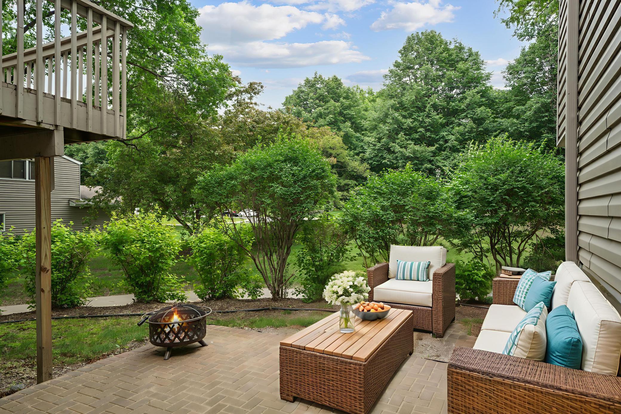 Welcome to this great home, located in the vibrant heart of Eden Prairie. Bring your decorating ideas to make this home everything you dreamed of. This corner unit townhouse, with the allure of an end unit, offers a harmonious blend of comfort and sophistication. Step inside to a spacious entry complemented by a generous closet, an open staircase that adds to the expansive feel. The townhome shines with a modernized kitchen, complete with sleek stainless steel appliances, convenient roll-out drawers, copper accents and room for a small table. The owner's suite featuring double closets and an en-suite with a jetted tub, while the upper level is completed with a 2nd bedroom and bath for your convenience. Spacious 3rd bedroom is located off the entry from the garage and offers double closets. The lower level presents endless possibilities with a flexible room that can effortlessly transition into a fourth bedroom, alongside a walk-out family room, 3/4 bath& laundry. Come relax on your serene deck or patio overlooking a beautifully landscaped, wooded yard and scenic trails. and two wood-burning fireplaces that create a warm, inviting atmosphere. Beyond the comforts of this lovely townhouse, you'll find a newer roof, siding, and windows, ensuring peace of mind and minimal upkeep. The prestigious Eden Prairie location places you in a community that takes pride in its amenities, including access to the Preserve Association with a sand-bottom pool, event spaces, and a party room. Time to embrace the blend of lifestyle and location in a home that's crafted for cherished memories and lasting comfort.