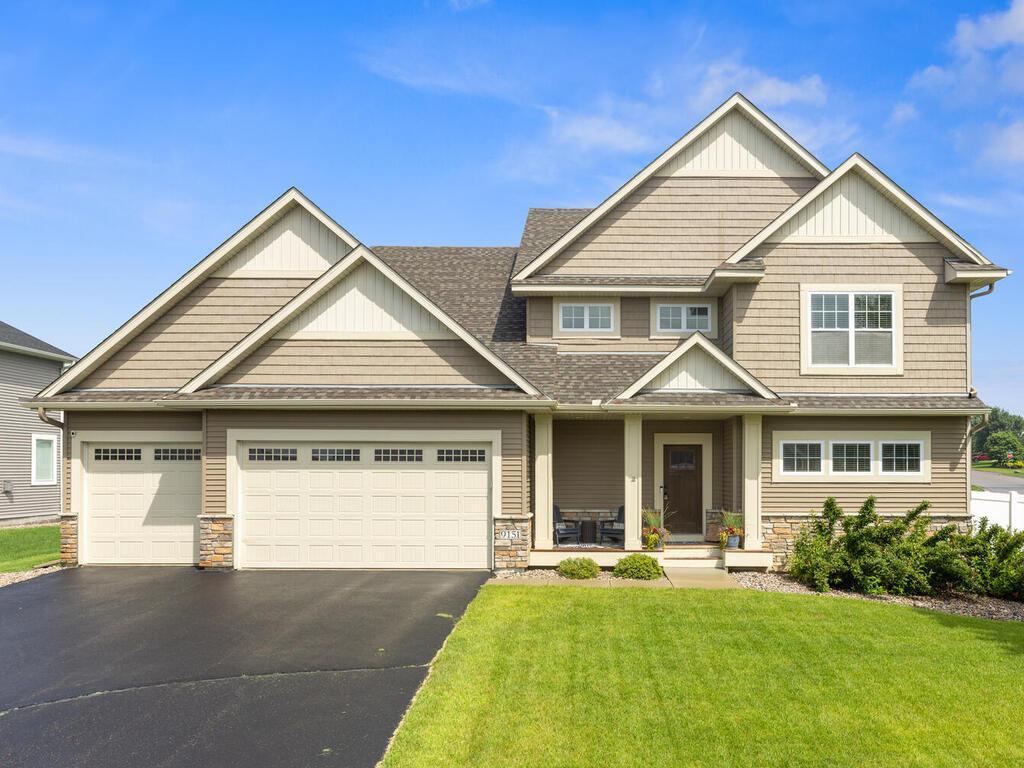 Welcome to this beautifully crafted Lakeville home offering modern luxury, amenities and main floor living. Home was featured in the Parade of Homes and was a Model Home featuring high-end finishes throughout. Enjoy cozy evenings by the gas fireplace with custom surrounds and take in the natural light from large Andersen windows. The main-floor owner’s suite delivers the ultimate retreat, featuring a custom tile walk-in shower, double vanity and large walk-in closet with natural light! The gourmet kitchen is a chef’s dream, featuring stainless steel appliances, Silestone countertops, and hardwood floors that flow into the open-concept living space. Additional highlights include: Main-floor laundry for added convenience, expansive finished lower level with a GIANT family room, guest suite, and ¾ bath. Upper level features three spacious bedrooms, Jack & Jill bath, private en-suite bath, and a versatile media loft. Home is located on a large corner lot, features a walk-out to a large stamped cement patio and fully fenced yard. House has a freshly painted interior and carpets have been professionally cleaned. Don’t miss your chance to own this exceptional home! Schedule an appointment today!