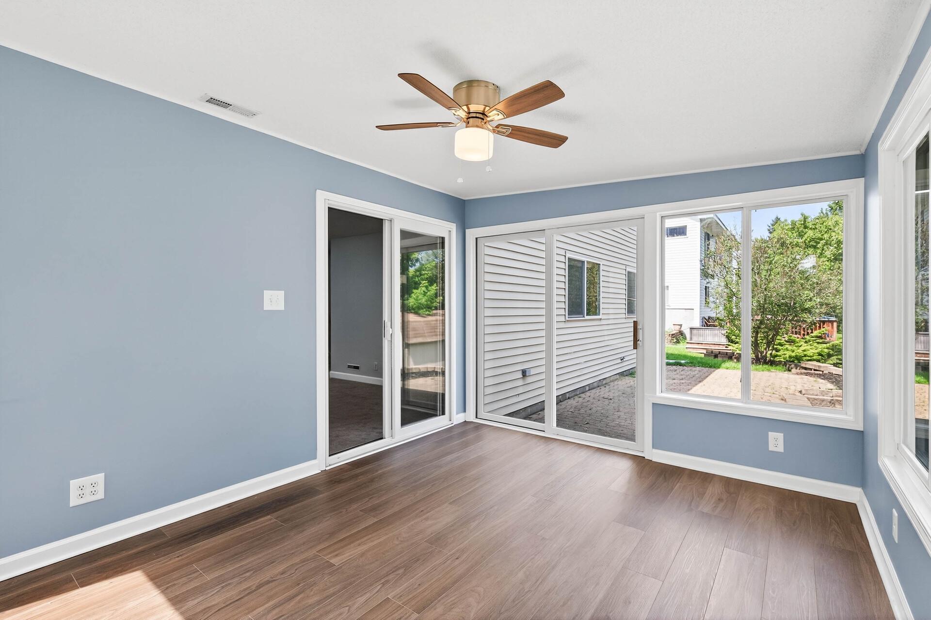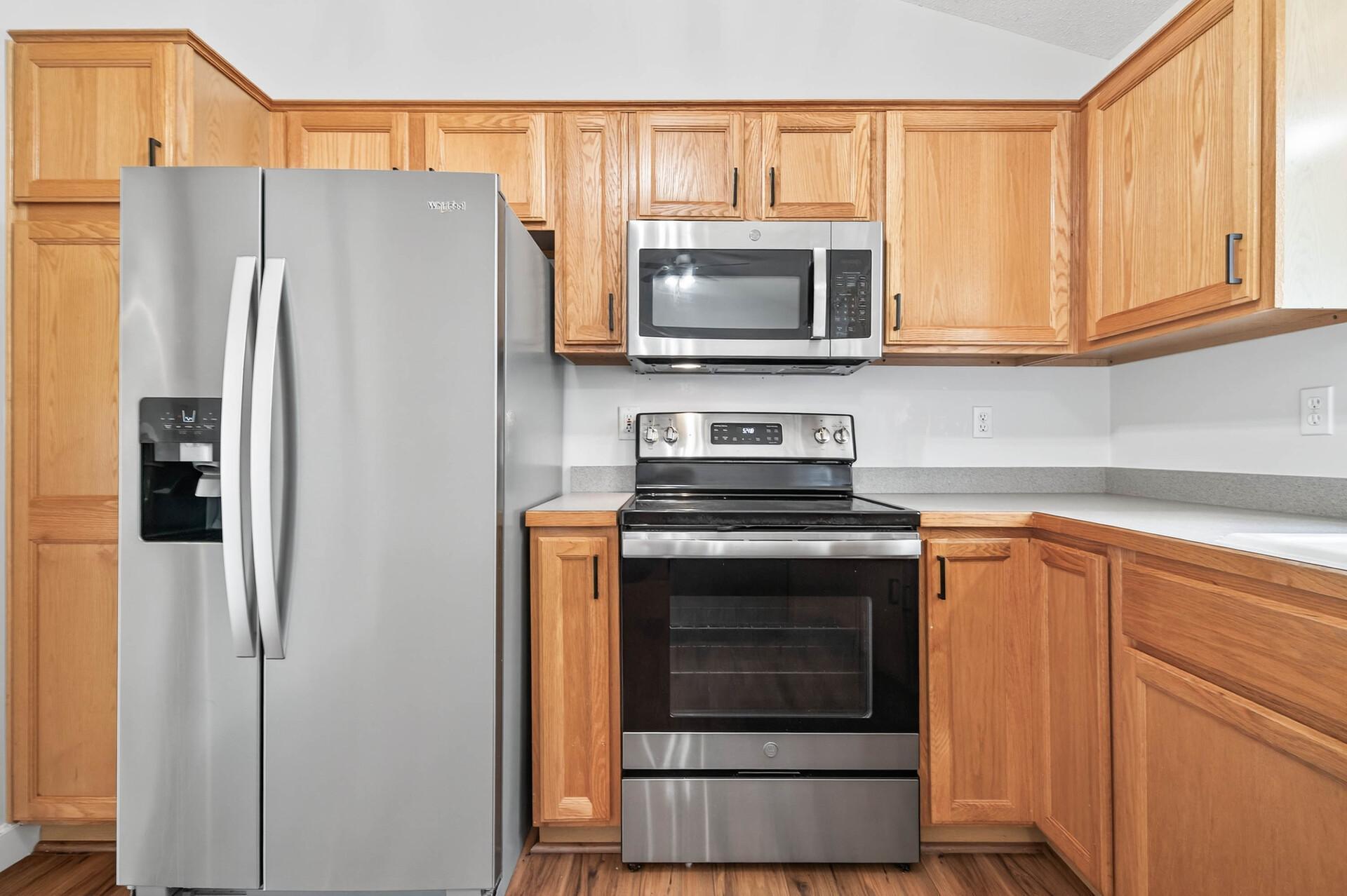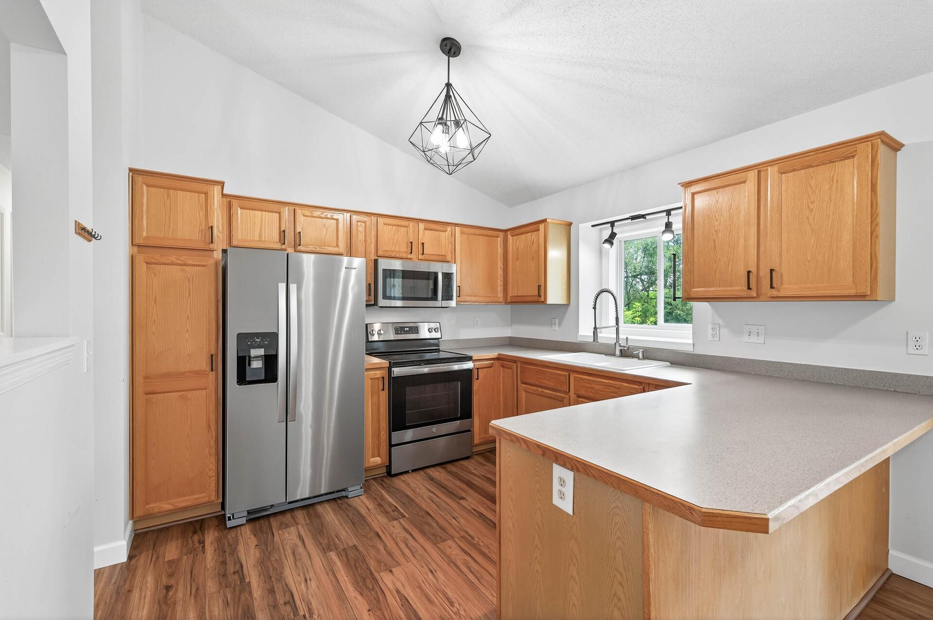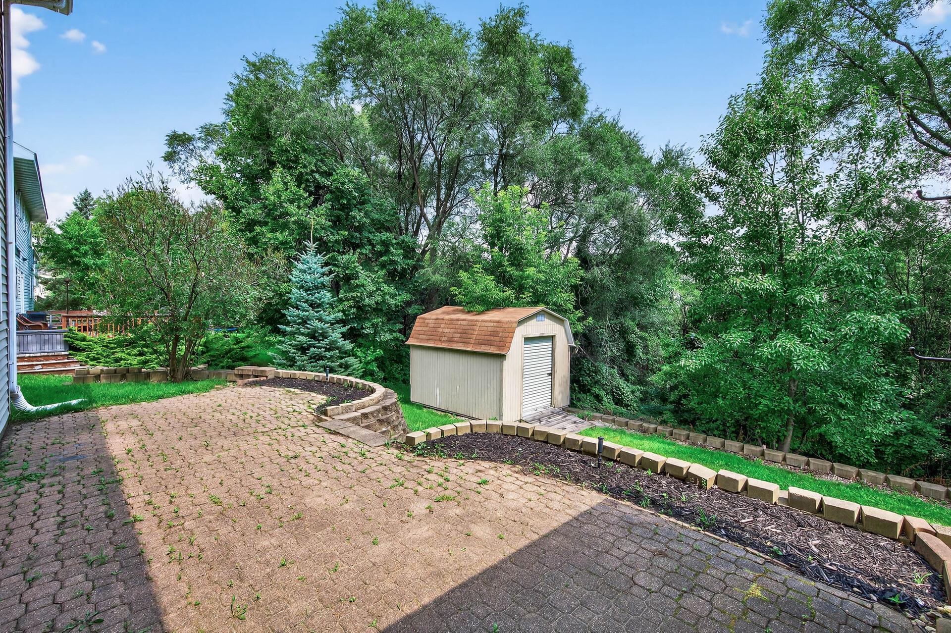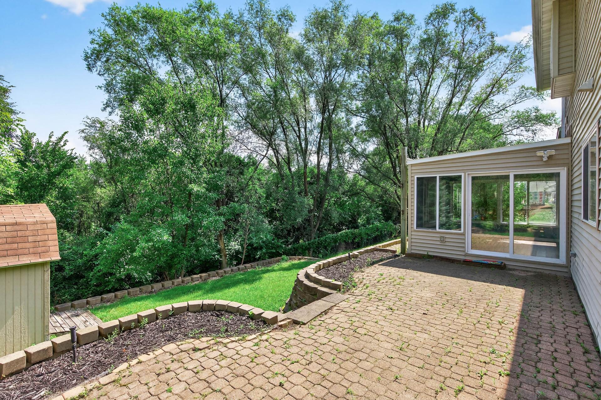 Welcome home to this stunning residence, featuring a spacious foyer with modern closet solutions and an open floor plan. Enjoy abundant natural light from large windows and soaring vaulted ceilings. The kitchen boasts newer appliances installed in 2021, complemented by newer floors added in 2022. Upper bedrooms feature expansive walk-in closets. A new roof was installed in July 2023. The spacious family room is perfect for relaxation. The lower level features a walkout to a three-season porch. Additional amenities include a paved patio, private backyard, large storage shed, and lawn irrigation sprinkler system.