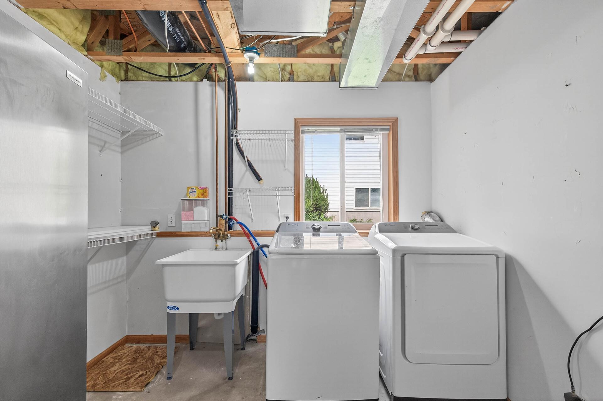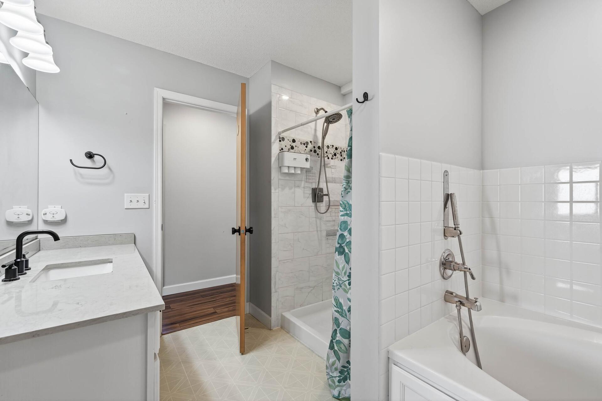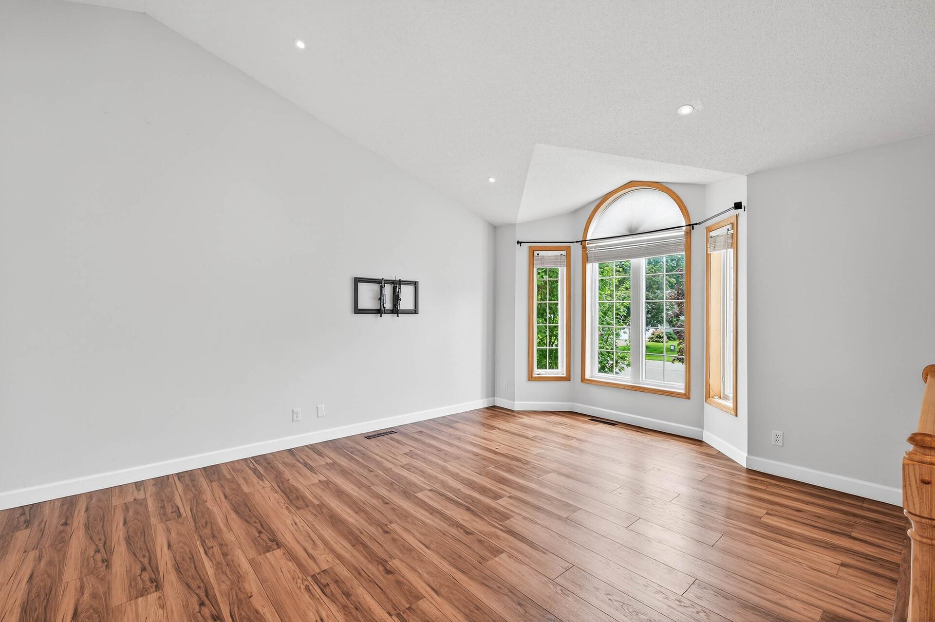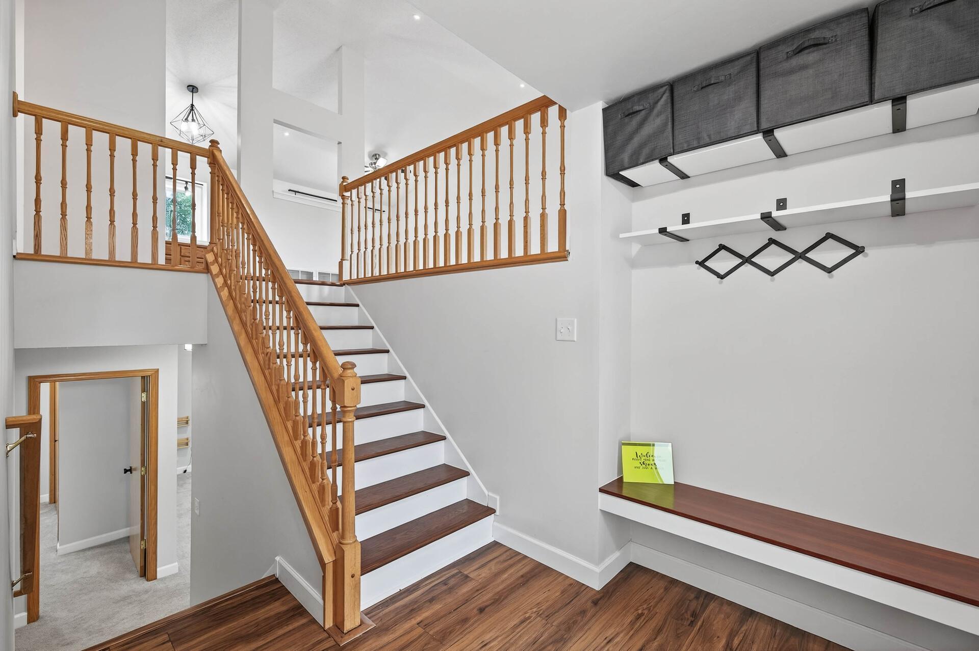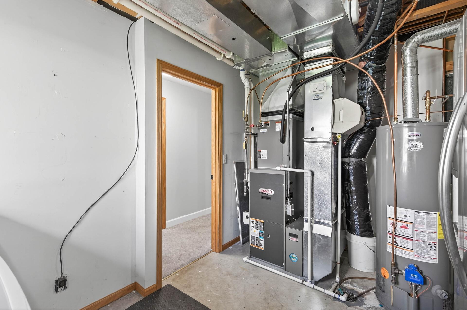 Welcome home to this stunning residence, featuring a spacious foyer with modern closet solutions and an open floor plan. Enjoy abundant natural light from large windows and soaring vaulted ceilings. The kitchen boasts newer appliances installed in 2021, complemented by newer floors added in 2022. Upper bedrooms feature expansive walk-in closets. A new roof was installed in July 2023. The spacious family room is perfect for relaxation. The lower level features a walkout to a three-season porch. Additional amenities include a paved patio, private backyard, large storage shed, and lawn irrigation sprinkler system.