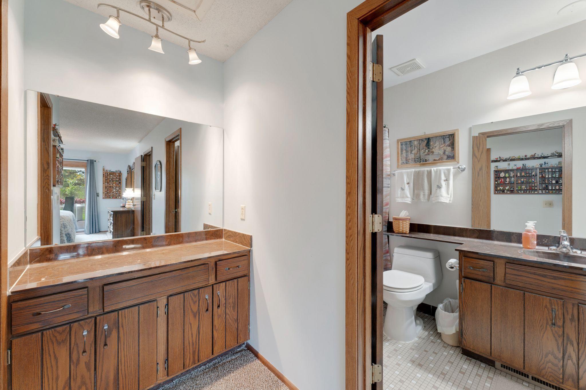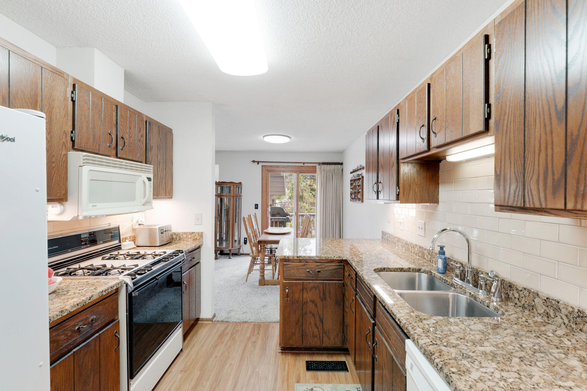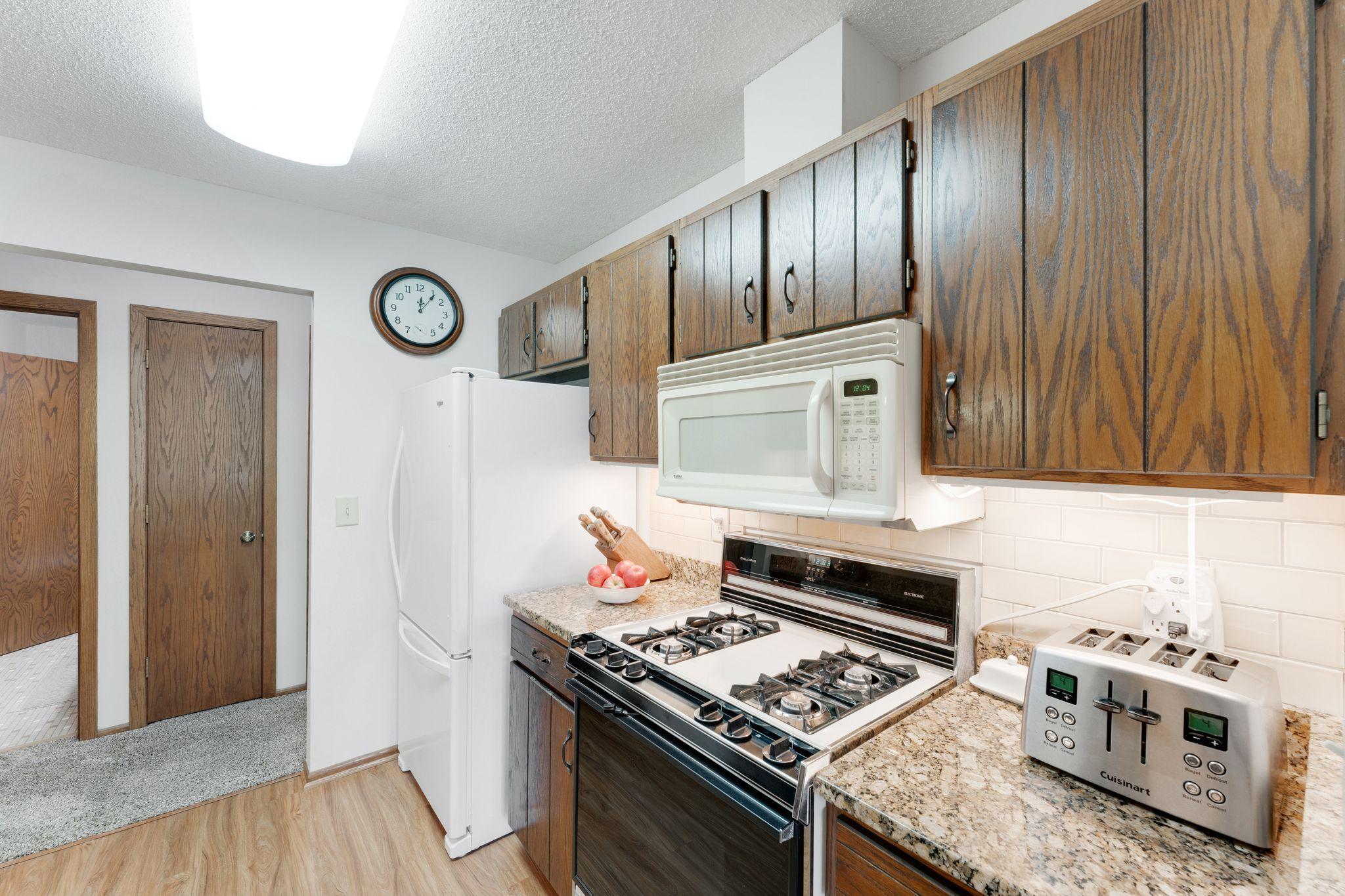 Step into easy living in this 3-bedroom, 2-bath Eden Prairie townhome where entertaining comes naturally. The updated galley kitchen boasts natural wood cabinetry, newer laminate flooring, and solid surface counters, and a dining room filled with natural light and sliding doors that open to a patio—perfect for grilling or quiet evening on the private deck. 2 spacious bedrooms await you on this level. The primary bedroom has a walk in closet, private vanity area and private entrance to the main bath. The lower level features a family room complete with gas fireplace, a lower level bedroom and 3/4 bath that is ready for family or guests. The large laundry, 2-car garage and extra storage add everyday convenience. Set in a quiet, tree-filled community with manicured grounds, this home keeps you close to parks, trails, schools, and shopping. With Hwy 212 and I-494 nearby, your commute is effortless, and your weekends are free to enjoy everything Eden Prairie has to offer. Please note, rentals are allowed, however currently maximum rental percentage level has been reached.