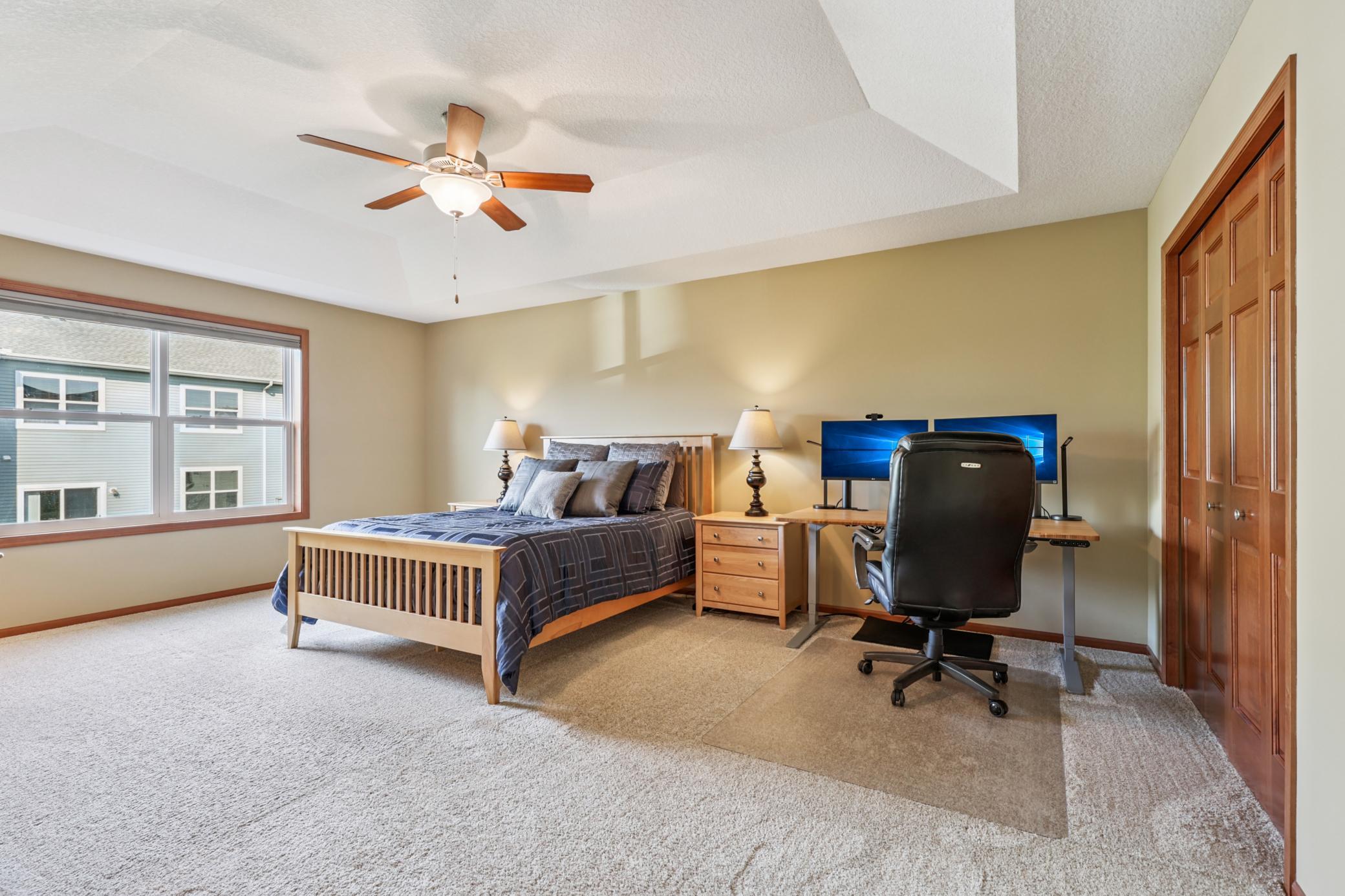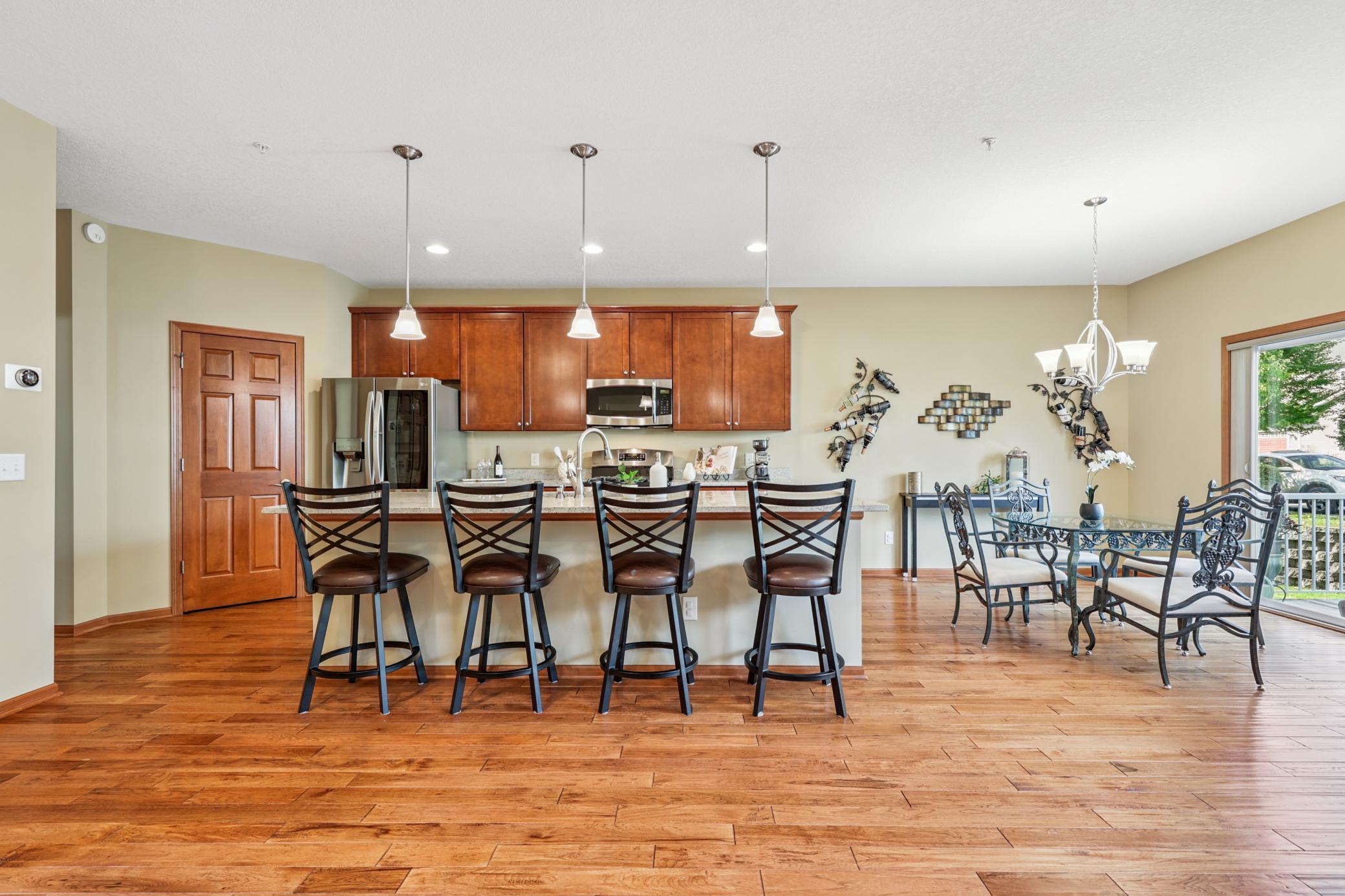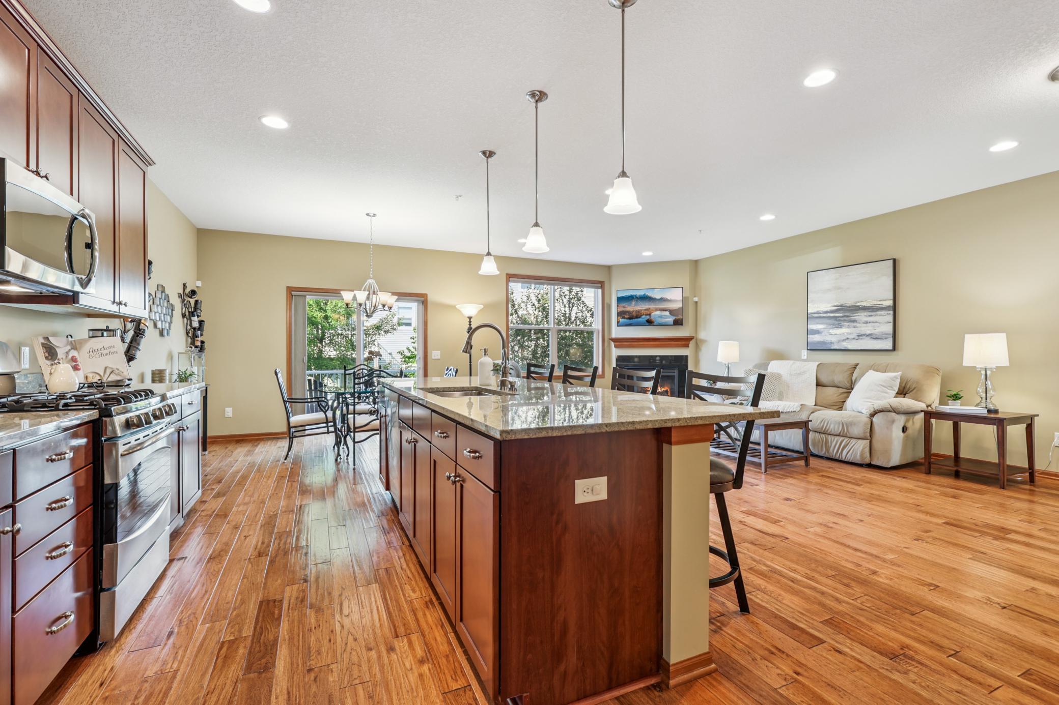 Introducing 9534 Roosevelt Drive in Chanhassen. Tucked away on a serene, tree-lined street, this exceptional townhome offers a rare blend of sophistication, comfort, and convenience. Surrounded by lush greenspace and mature trees, it provides a private retreat just moments from the heart of downtown Chanhassen. Step inside and experience a home that has been meticulously cared for and beautifully updated. The open-concept main level is designed for effortless entertaining, featuring rich solid hickory floors, custom cabinetry, a large walk-in pantry and gleaming granite countertops. A upgraded refrigerator, washer, dryer and fresh designer paint elevate the move-in-ready appeal. Upstairs, you’ll discover a thoughtfully designed layout with three bedrooms on one level and a versatile loft—perfect for a home office, playroom, or cozy reading nook. The expansive primary suite feels like a true sanctuary, offering an en-suite bathroom with dual sinks and a custom walk-in closet with high- end built ins. Each bedroom is generously proportioned, and updated plush carpet adds a touch of luxury underfoot. The lower level, filled with natural light through egress windows, is a blank canvas awaiting your vision—whether a stylish media room, fitness space, or additional living space. Beyond your front door, enjoy access to the neighborhood pool, park, and playground—creating the perfect setting for relaxation and family fun. Ideally located with quick access to Hwy 212, this prime area ensures you are close to dining, shopping, bike trails and all the charm of downtown Chanhassen—while still enjoying the peace and privacy of a quiet neighborhood setting.