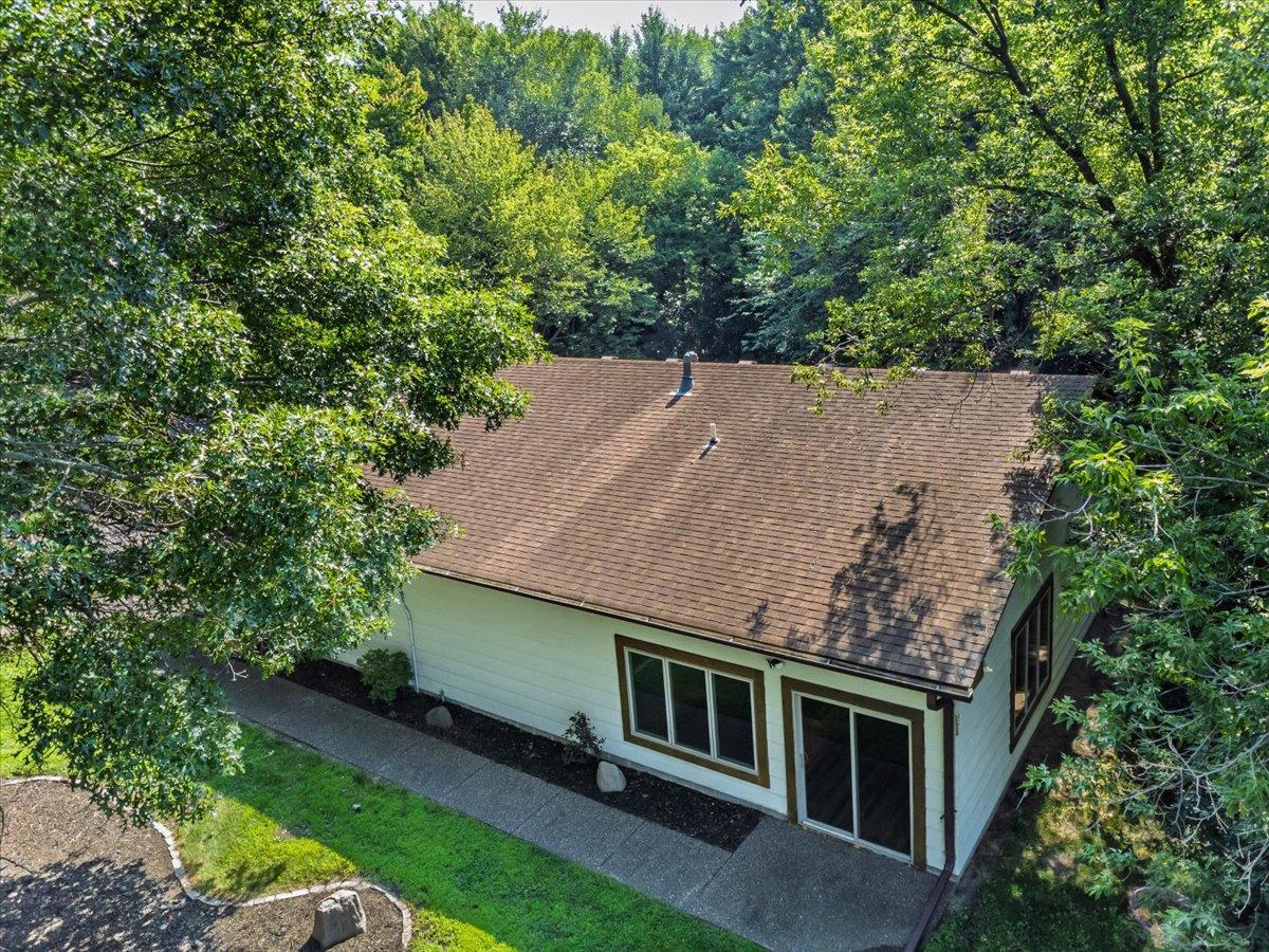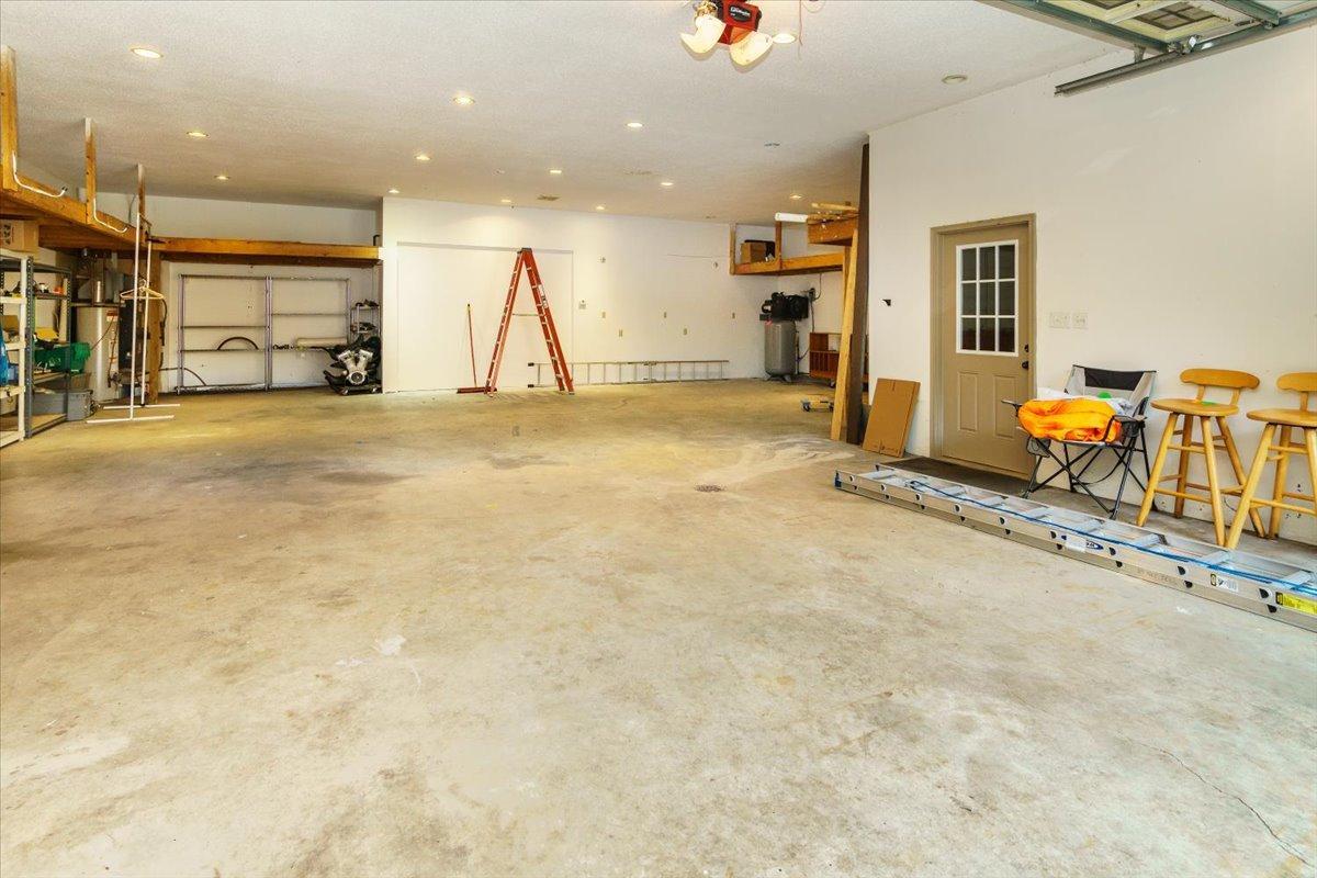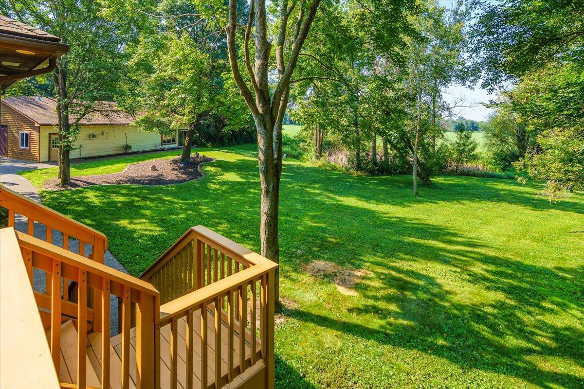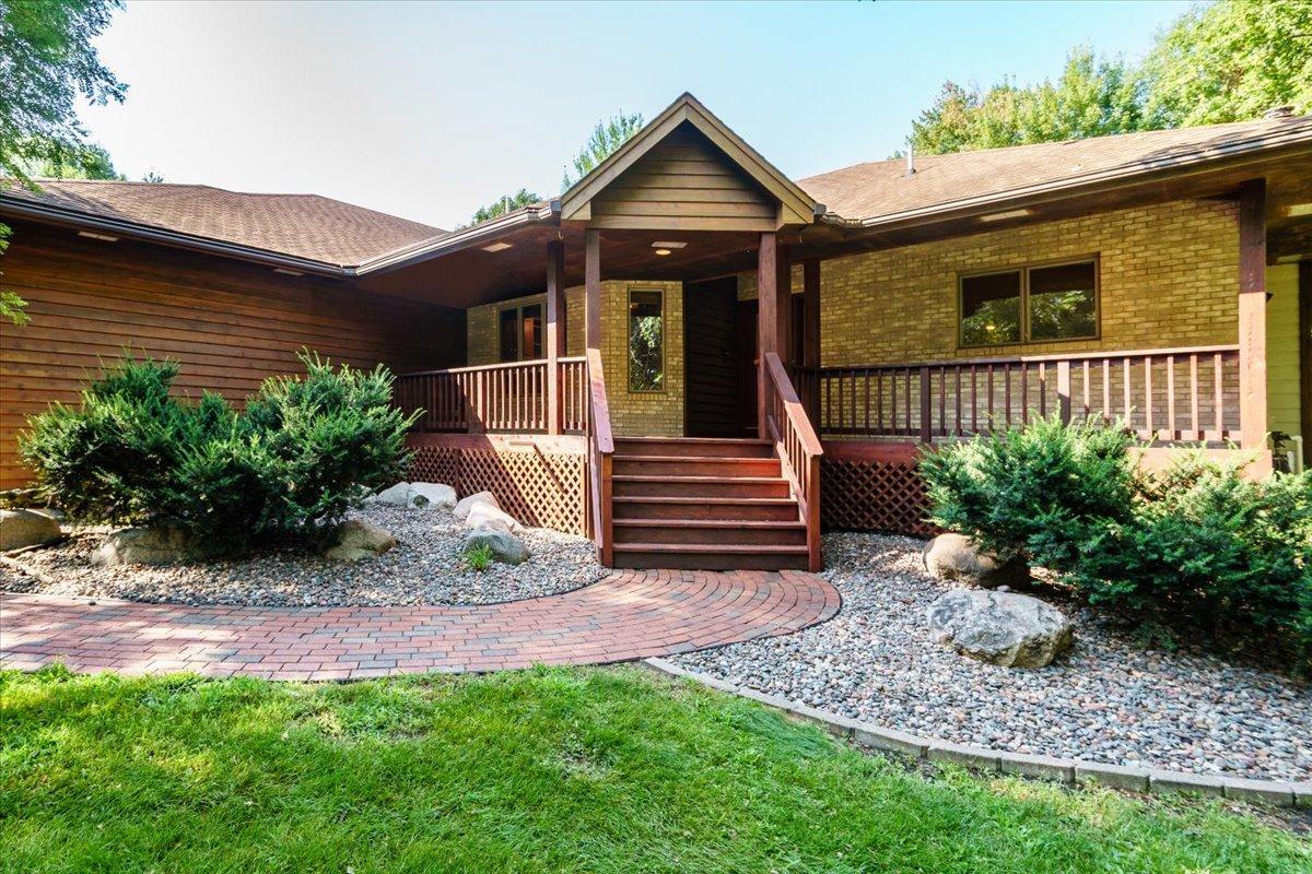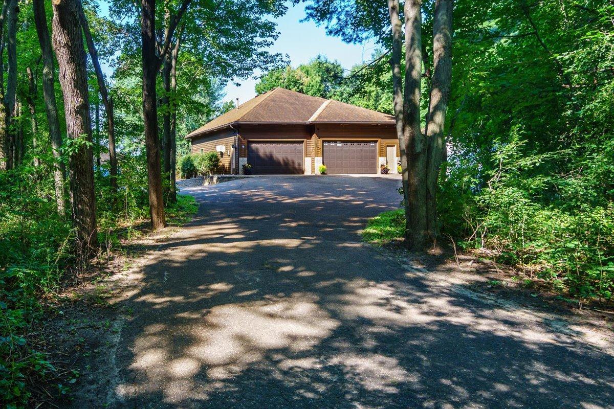 Wow! What an opportunity! Home, shops and land all wrapped up in one! The rambler has a main floor with a primary bedroom with awesome views of nature and the pond. Large closet and bath attached. It is an open concept great room, with fireplace, and windows galore. 4 season porch that walk outs to the huge deck and an office with built ins round this floor off. Lower level has 2 more bedrooms, with walk in closets, full bath with whirlpool. The main amusement room has a wood burning fireplace. This level is a walkout. Also are 2 laundry rooms one up, one down, central vac, ceiling fans, tons of storage and hardwood floors. Now for the outside, attached 7 car garage, that is heated, with tall ceilings and has a handicap lift into the home. The lower garage has 4 parking spaces, an office with fireplace and attached party room with a wet bar, hot tub, sauna & fireplace. This garage is heated and has water. Brand new septic system has been installed. All of this on 3 acres of land with a pond.