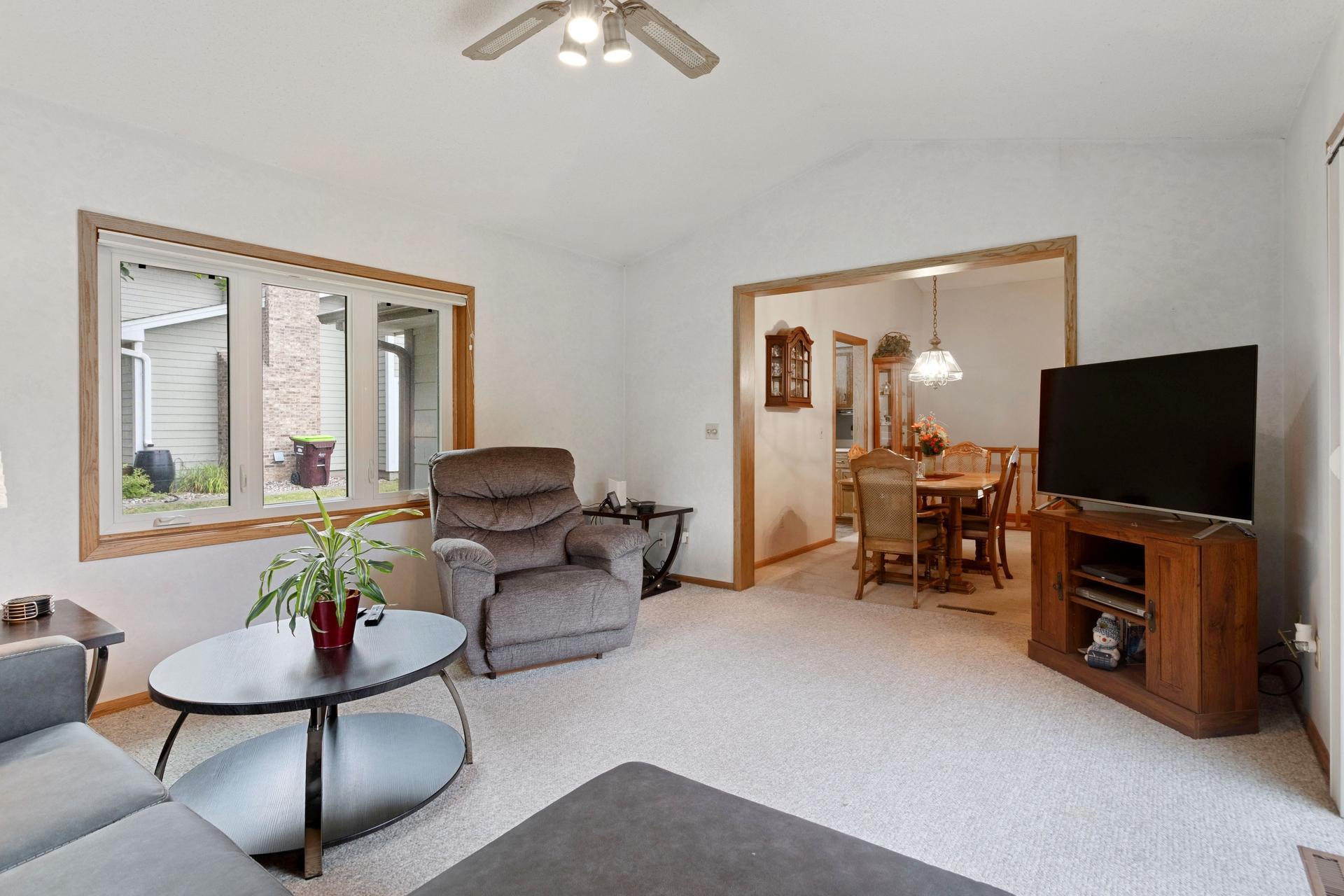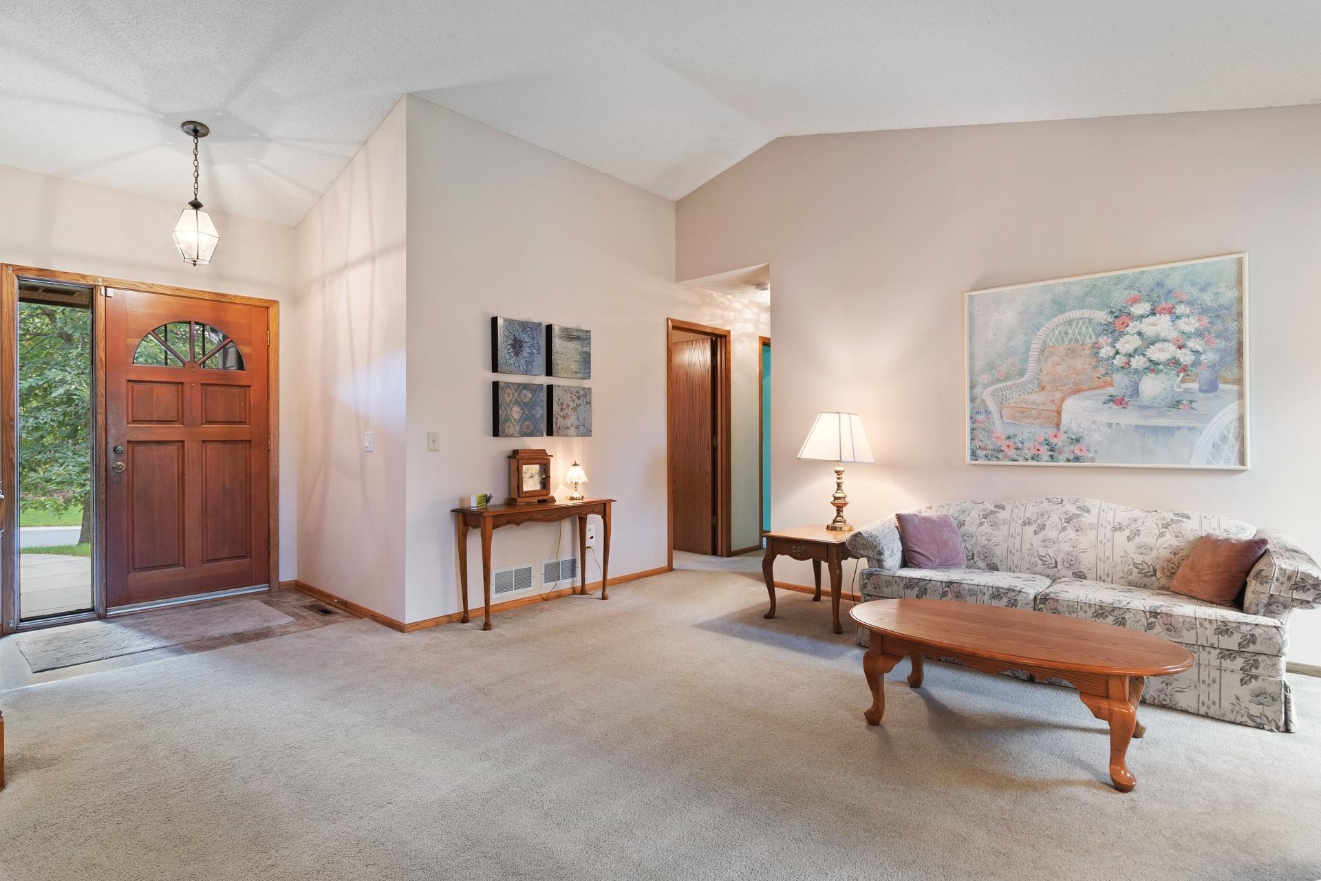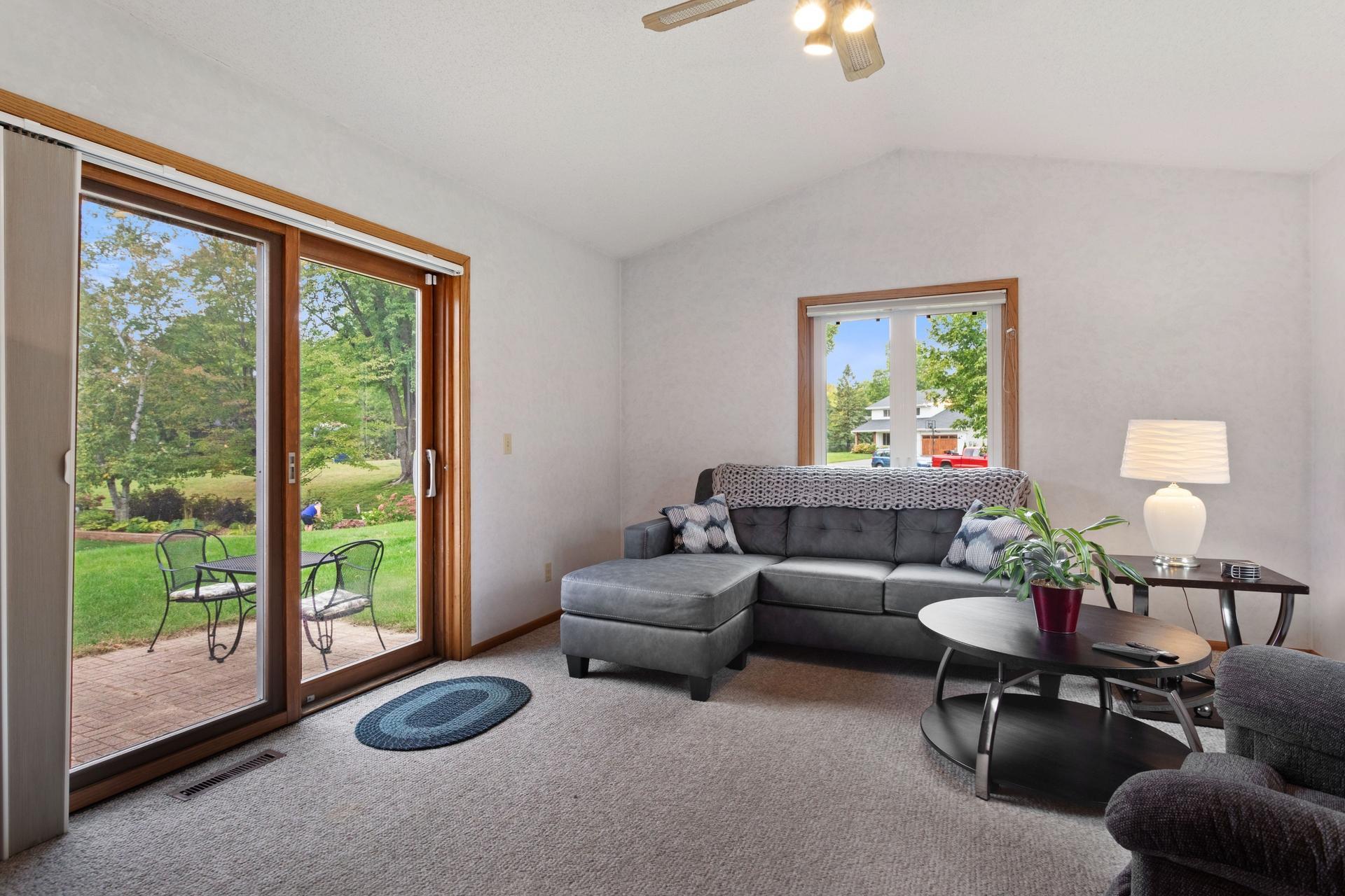Quality built one-level, lovingly cared for by original owner. Popular Eagan community; close to parks, schools, trails and fabulous shopping and dining amenities. Easy commuting access to both downtown areas. Enjoy lovely landscape views from spacious patio with convenient sun cover. Three bedrooms on one level with 4th, large lower level bedroom. Private primary suite with 3/4 bath and walk-in closet. Fabulous vaulted family surrounded by private yard. Bright, spacious eat-in kitchen with pantry, mudroom and natural woodwork. Recently updated mechanicals and appliances. New roof in 2020. Ready to make your home! !