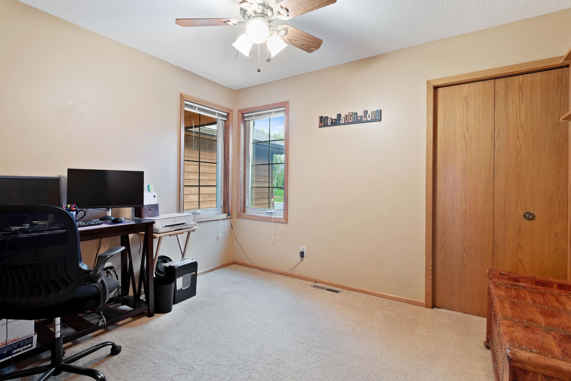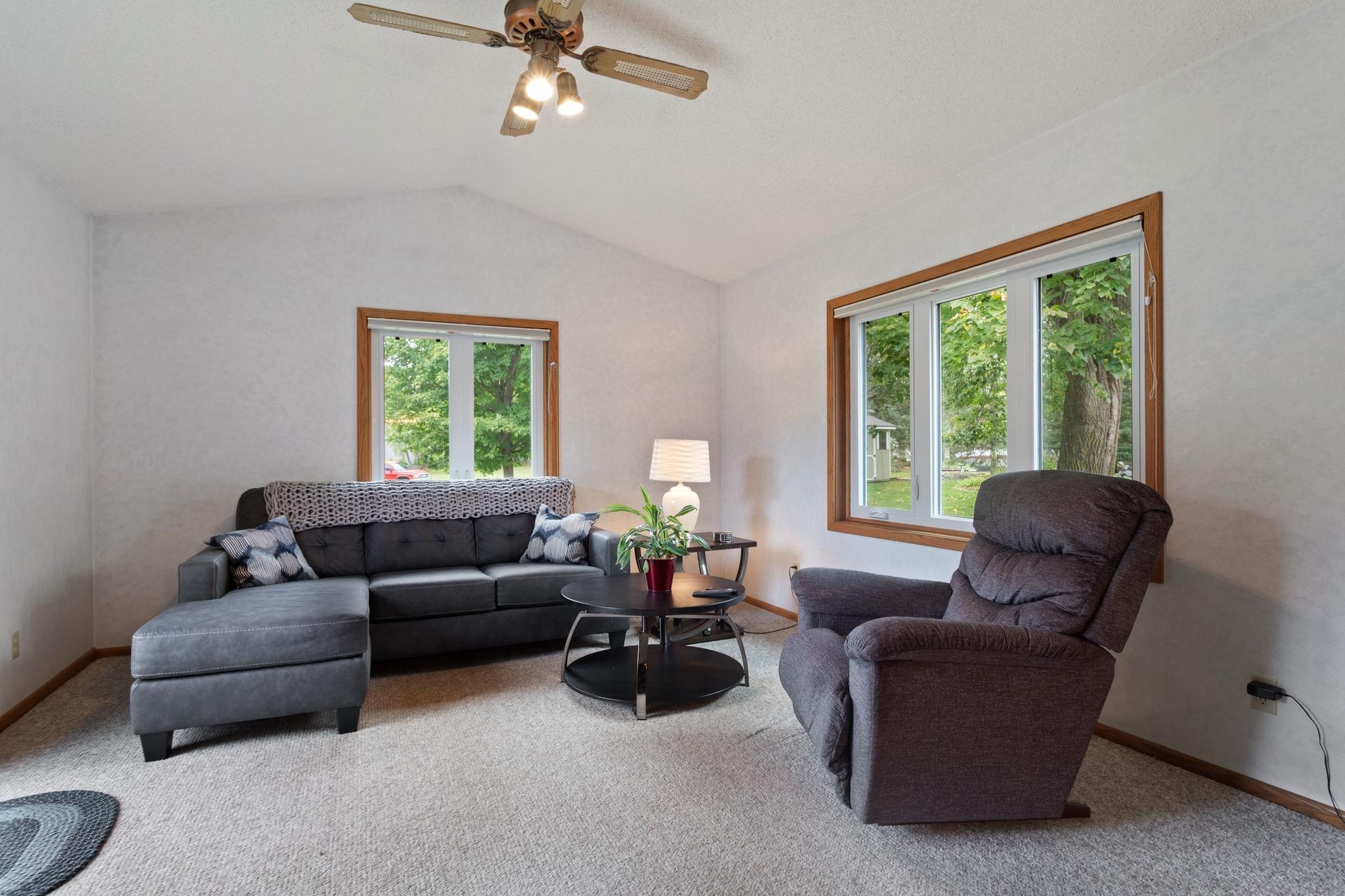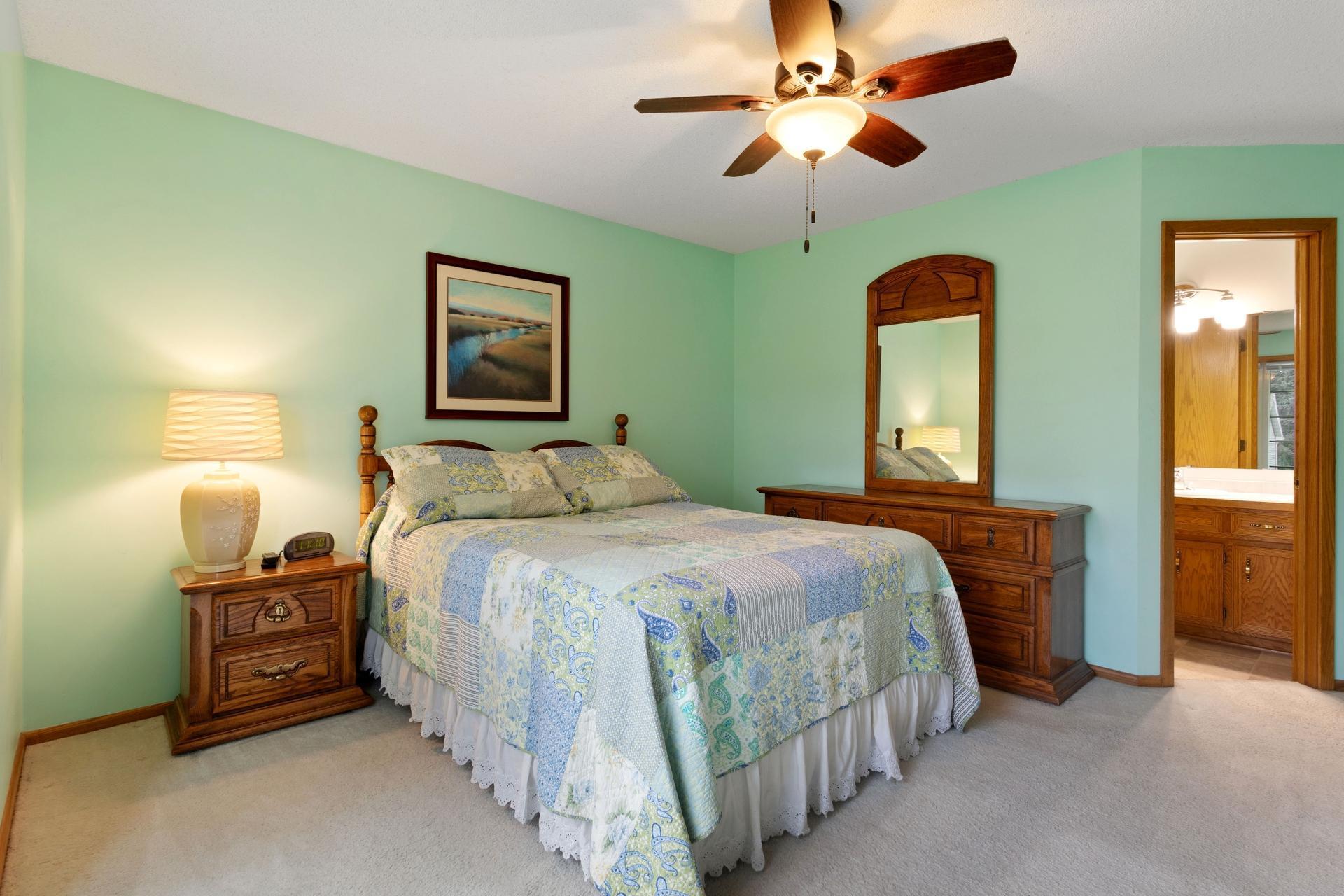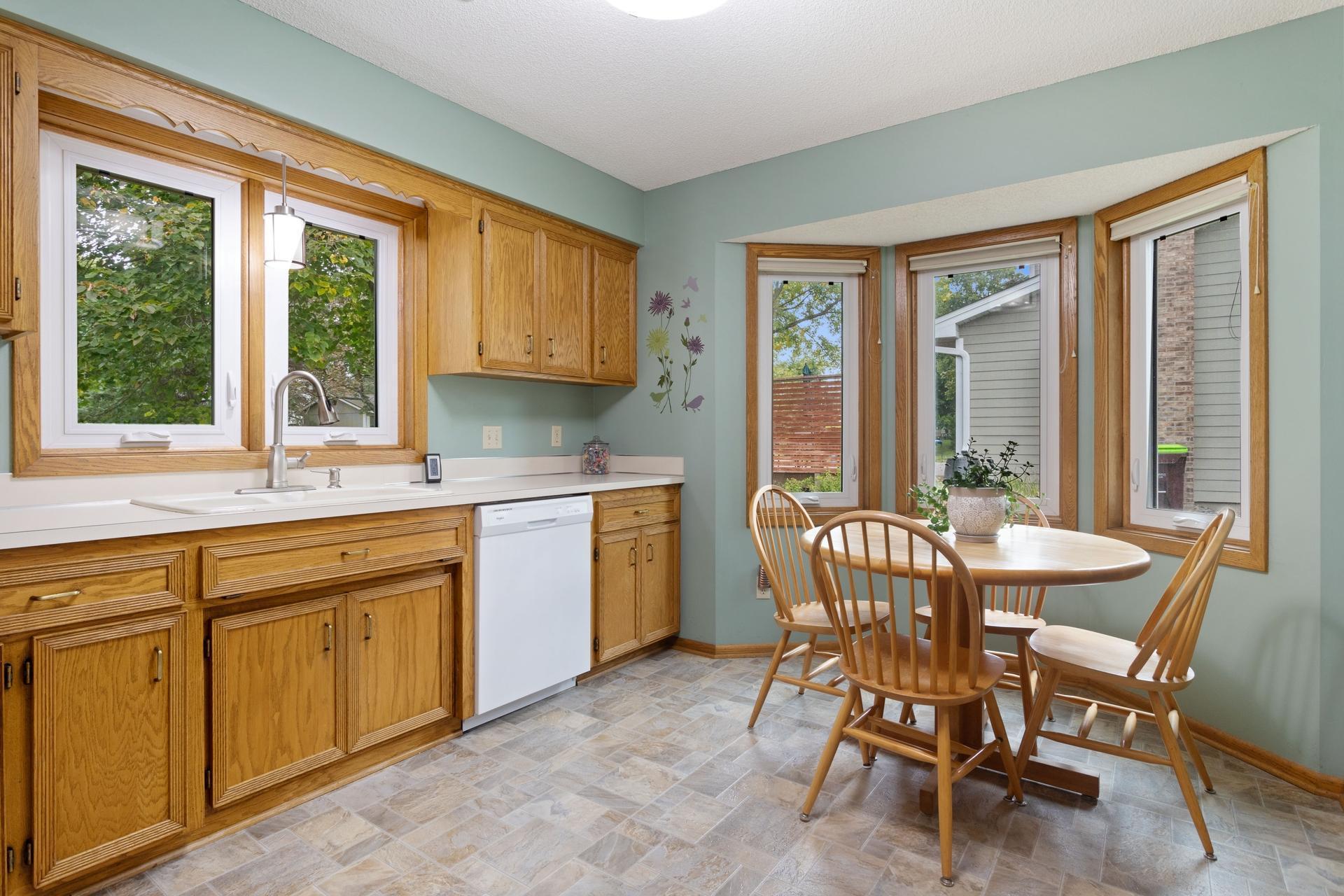 Quality built one-level, lovingly cared for by original owner. Popular Eagan community; close to parks, schools, trails and fabulous shopping and dining amenities. Easy commuting access to both downtown areas. Enjoy lovely landscape views from spacious patio with convenient sun cover. Three bedrooms on one level with 4th, large lower level bedroom. Private primary suite with 3/4 bath and walk-in closet. Fabulous vaulted family surrounded by private yard. Bright, spacious eat-in kitchen with pantry, mudroom and natural woodwork. Recently updated mechanicals and appliances. New roof in 2020. Ready to make your home! !